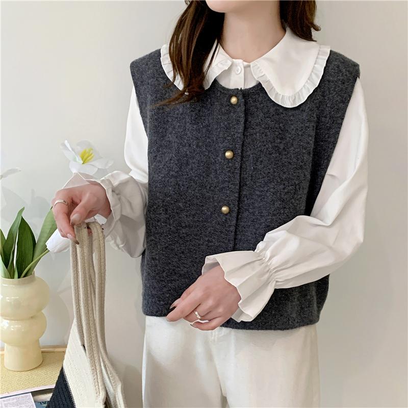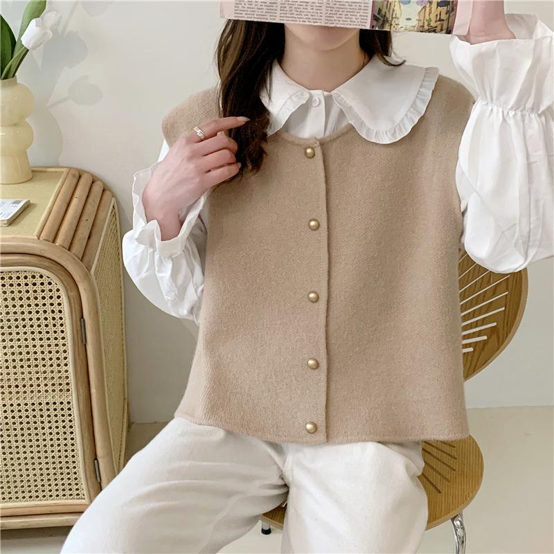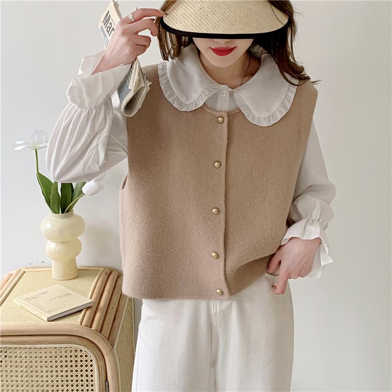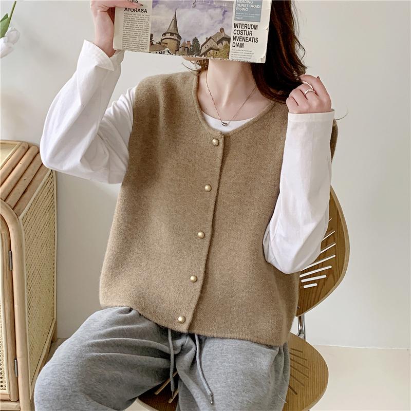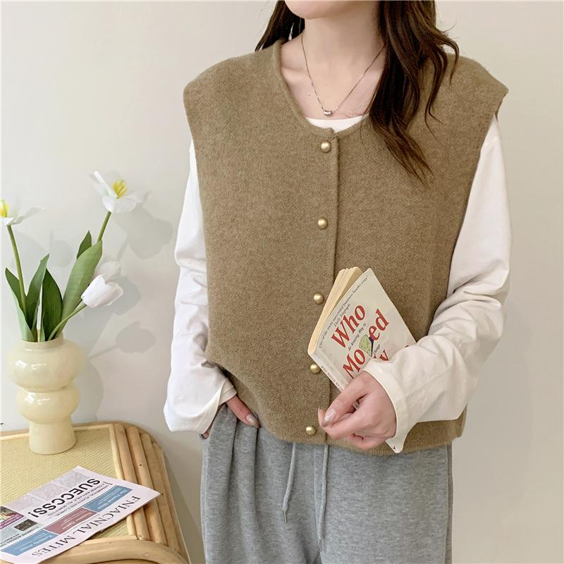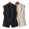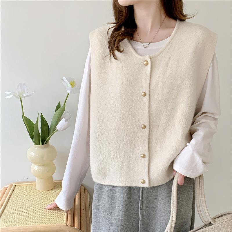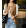 Primavera 2025 Nueva Ropa Exterior Chaleco de Estilo Suave Cuello Redondo Chaleco de Botonadura Sencilla Chaqueta Adelgazante Cintura Ropa Exterior Cárdigan para Mujer