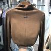 Camiseta Básica Derong para Mujer Otoño e Invierno 2023 Nueva Media Cuello Alto Ropa para Mujer con Forro Polar Camiseta de Manga Larga Interior a la Moda Venta al por Mayor