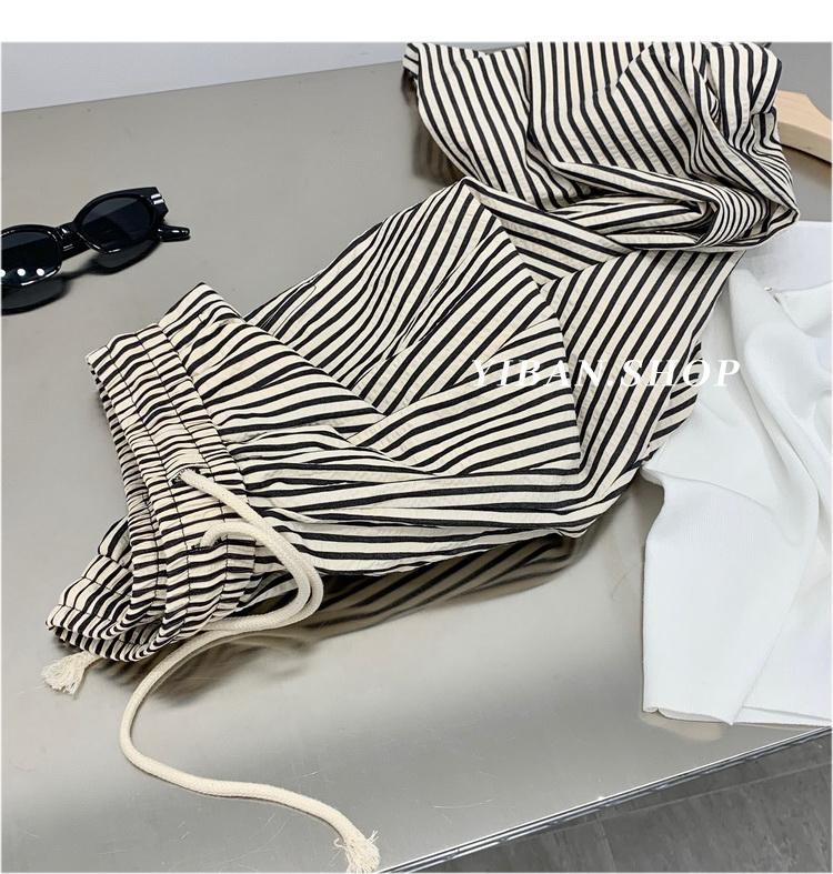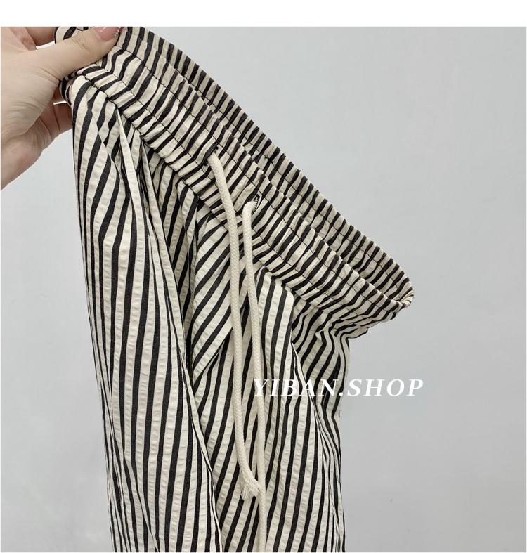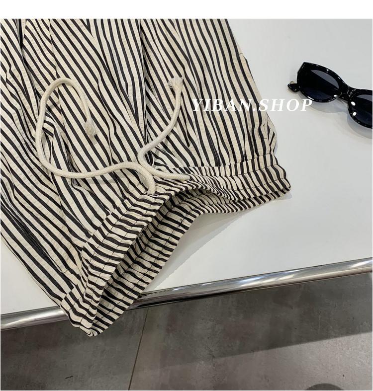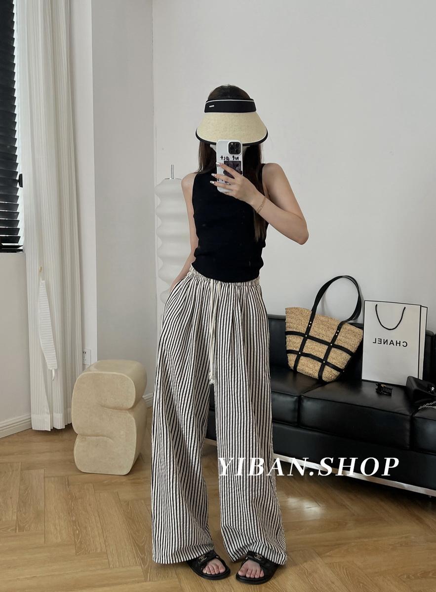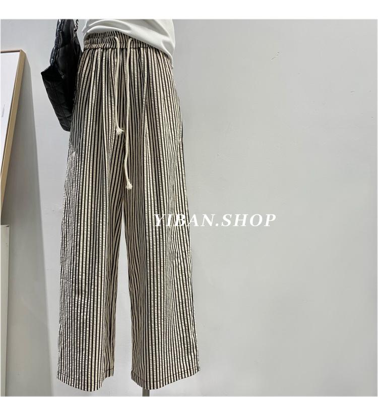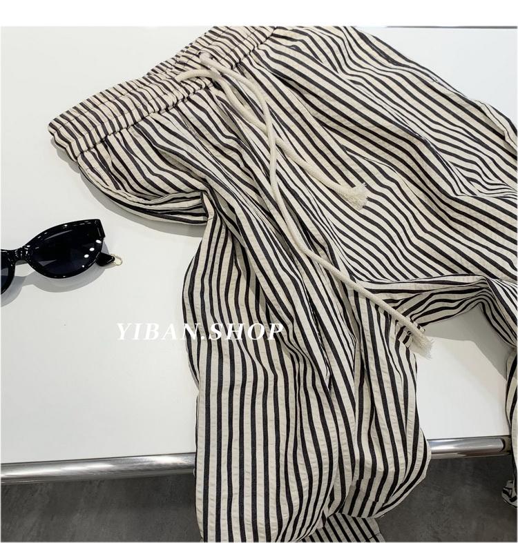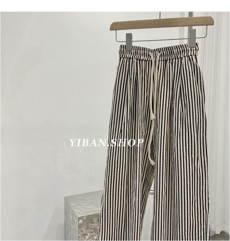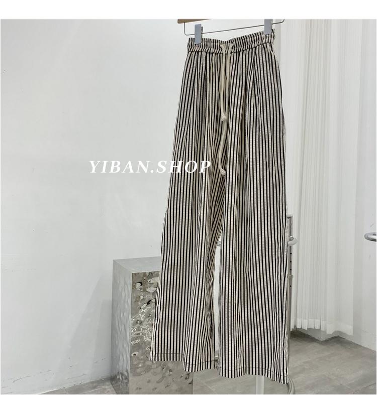 Pantalones Casuales a Rayas Estilo Coreano para Mujer Verano 2024 Sentido del Diseño Sueltos Adelgazantes Rectos Pantalones de Pierna Ancha