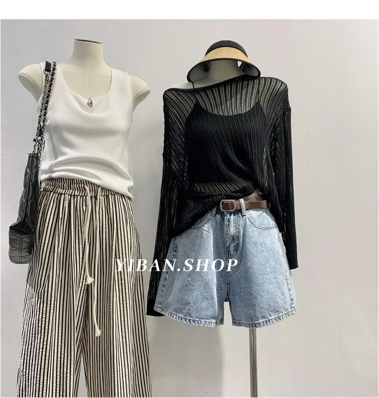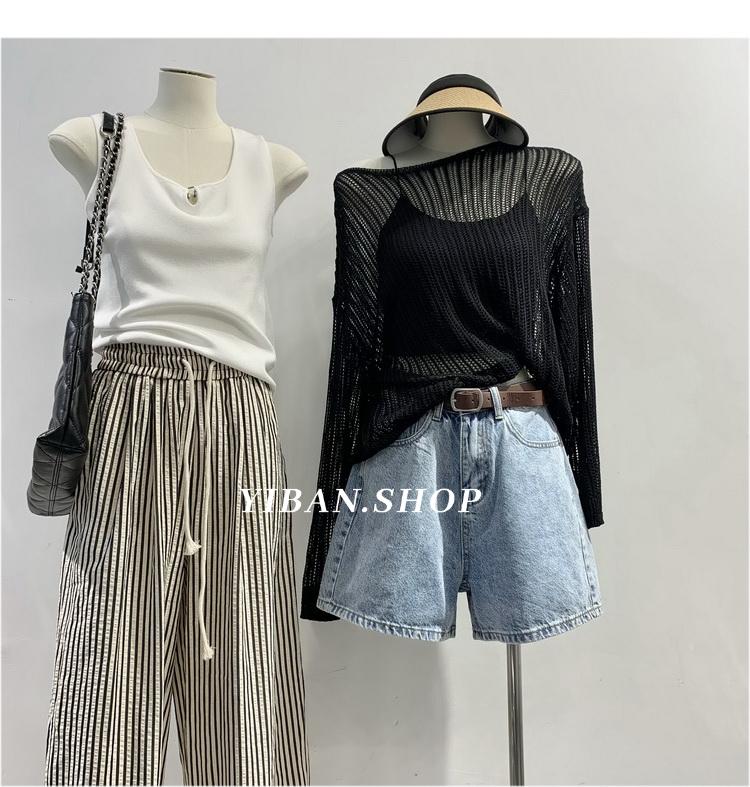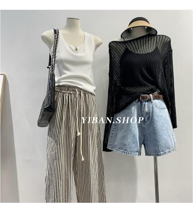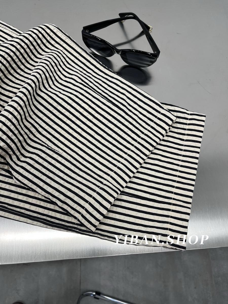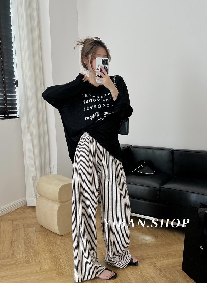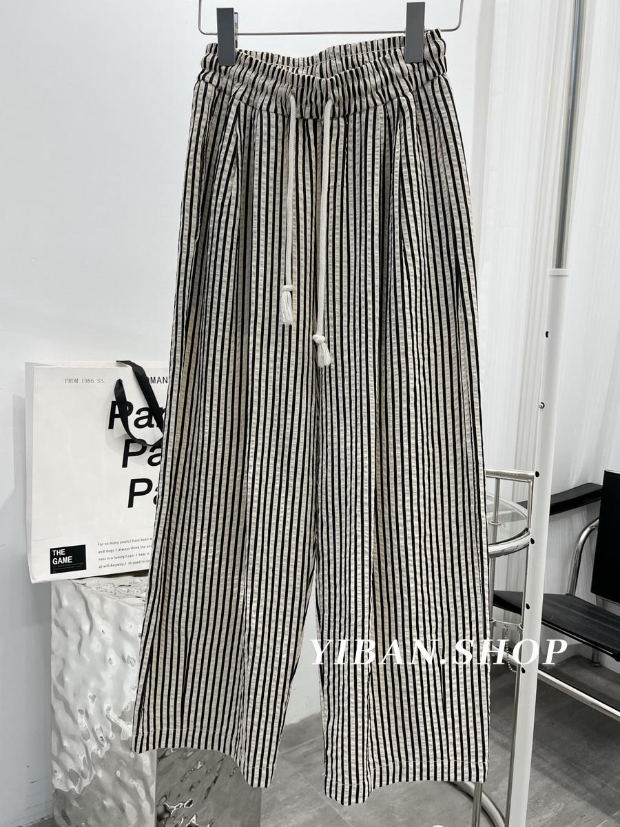 Pantalones Casuales a Rayas Estilo Coreano para Mujer Verano 2024 Sentido del Diseño Sueltos Adelgazantes Rectos Pantalones de Pierna Ancha