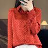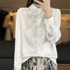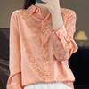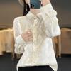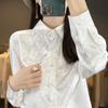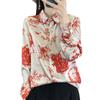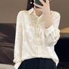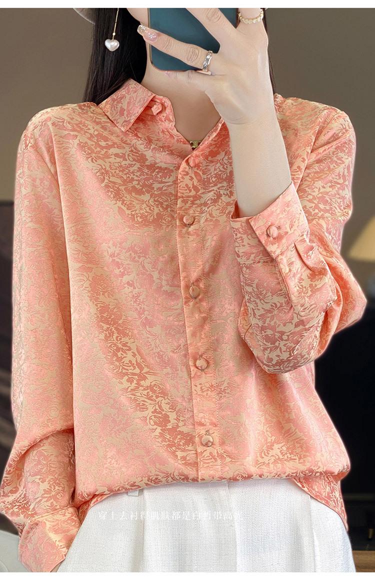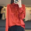 Camisa de manga larga ajustada con cuello POLO y hebilla de color sólido con estampado de seda para mujer primavera y verano 2024