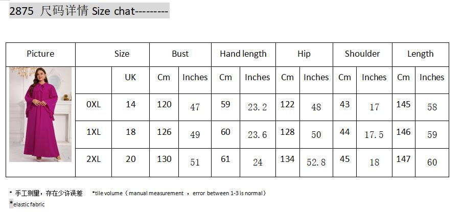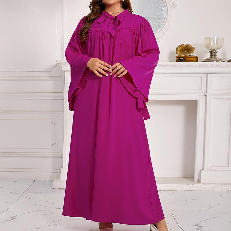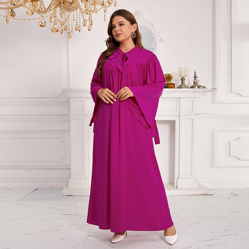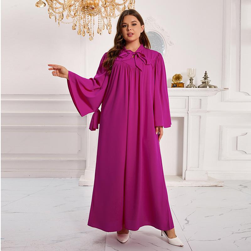 Suministro Transfronterizo Musulmán Medio Oriente Talla Grande Falda Larga para Mujer Mangas Campana Lazo Precio Especial