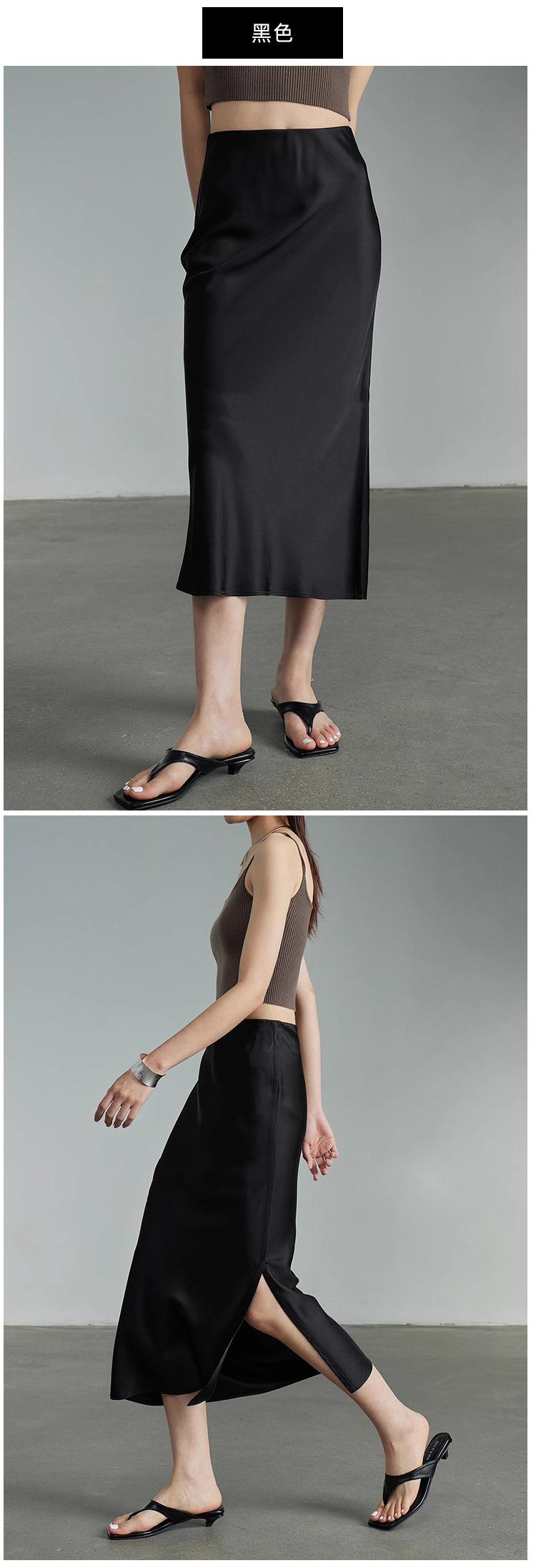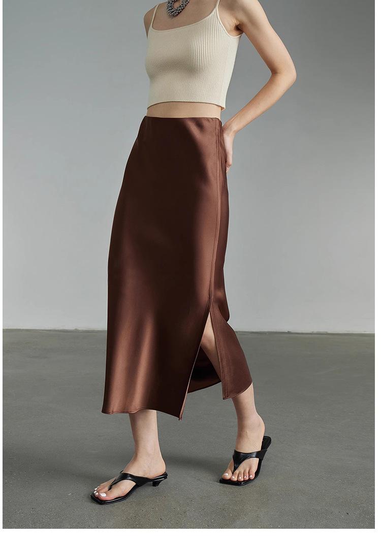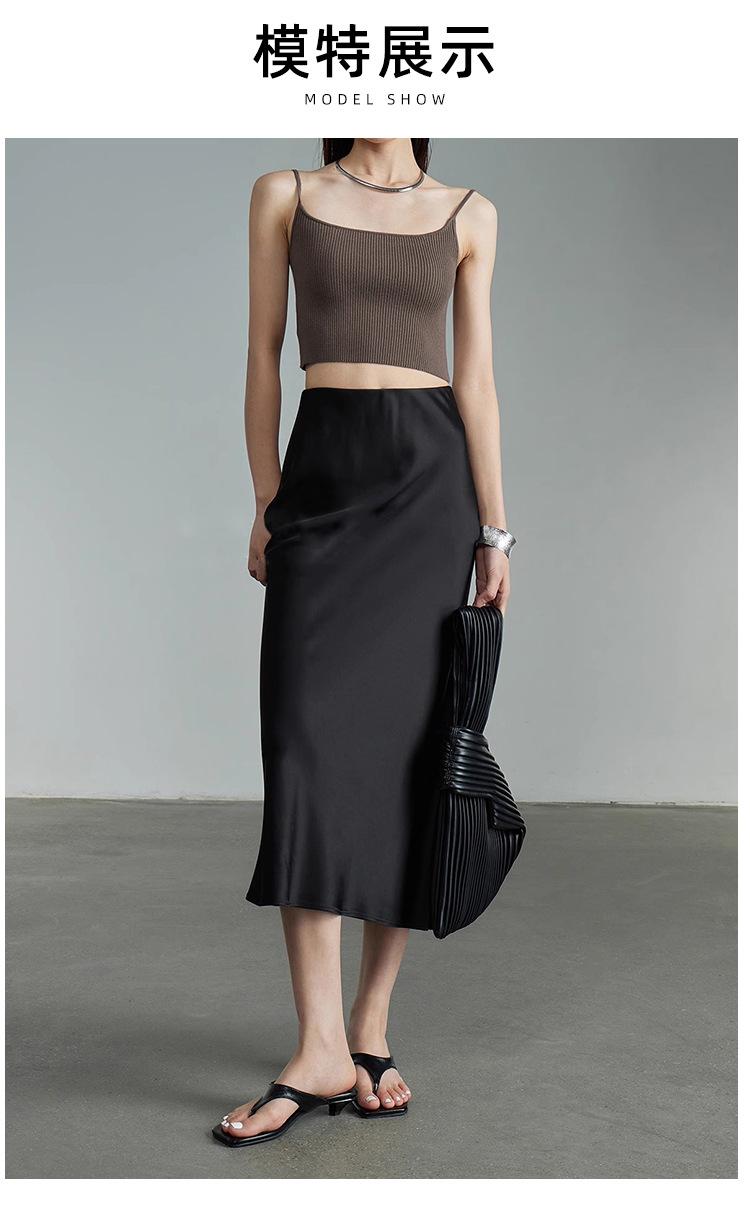 Verano 2024 Falda Slim Midi Importada de Ácido Triacético para Mujer, Falda Fresca de Seda de Doble Cara