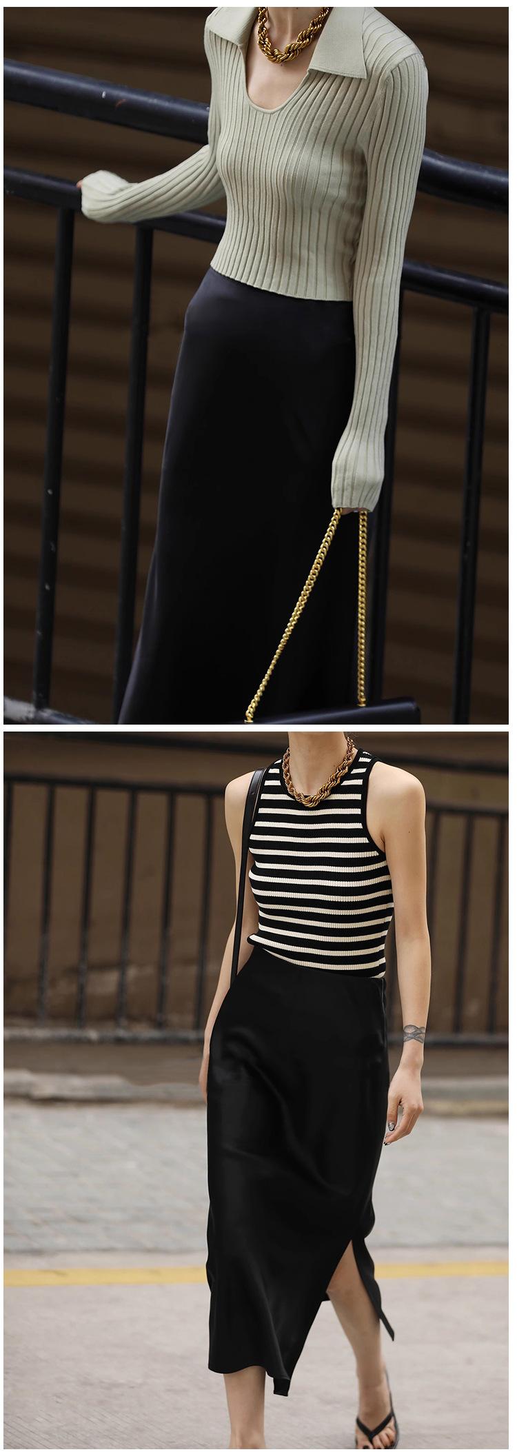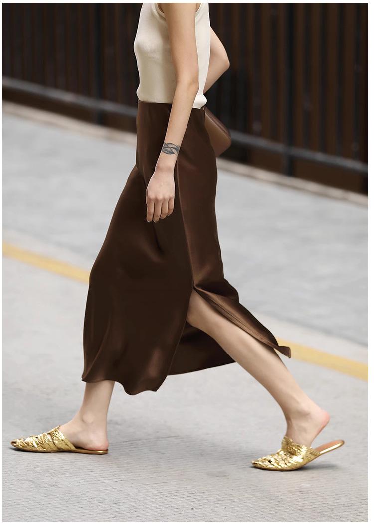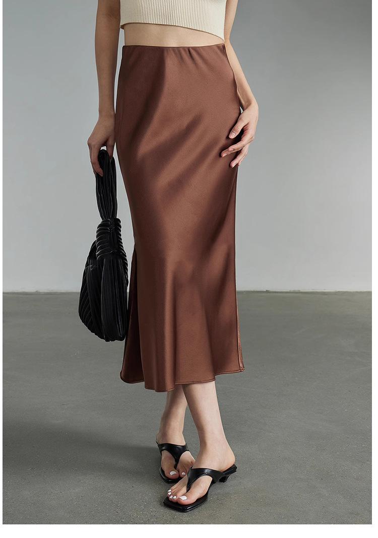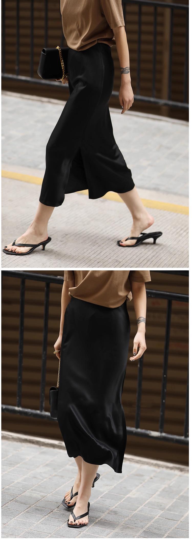 Verano 2024 Falda Slim Midi Importada de Ácido Triacético para Mujer, Falda Fresca de Seda de Doble Cara
