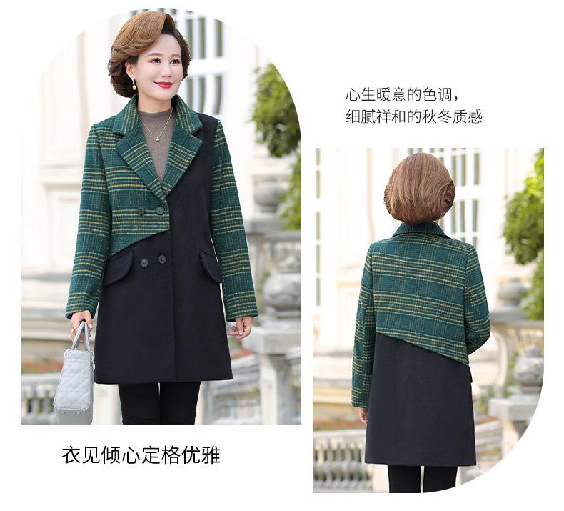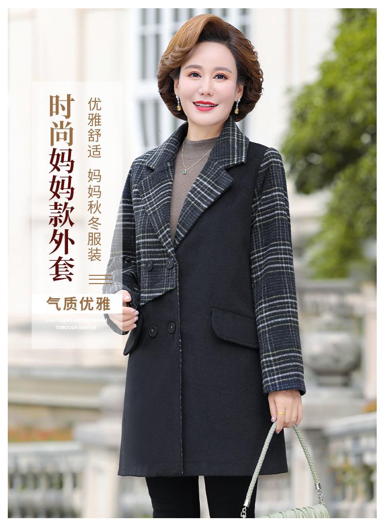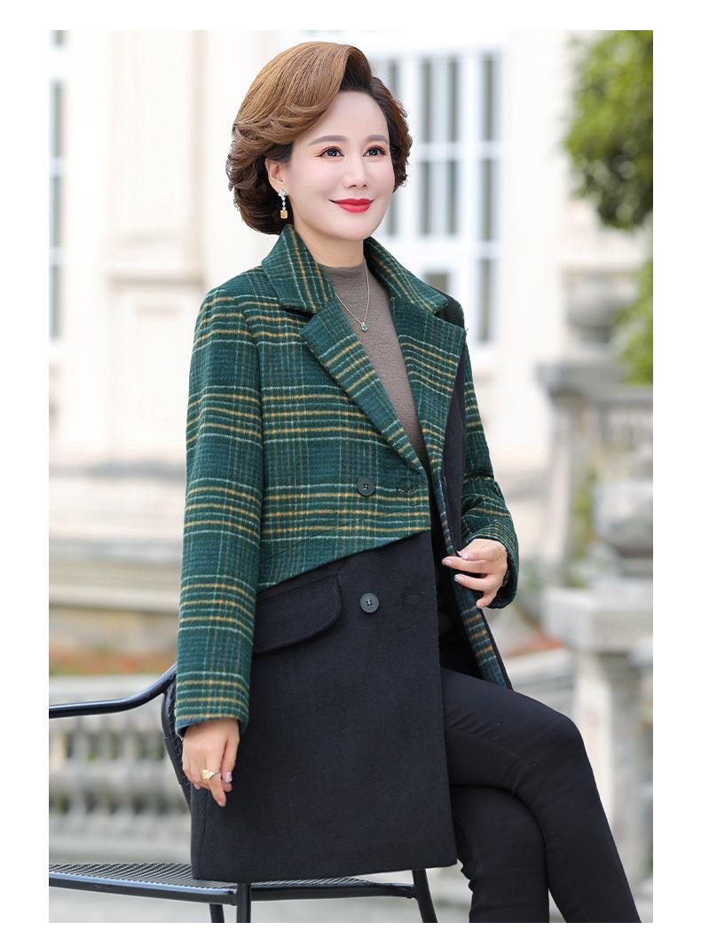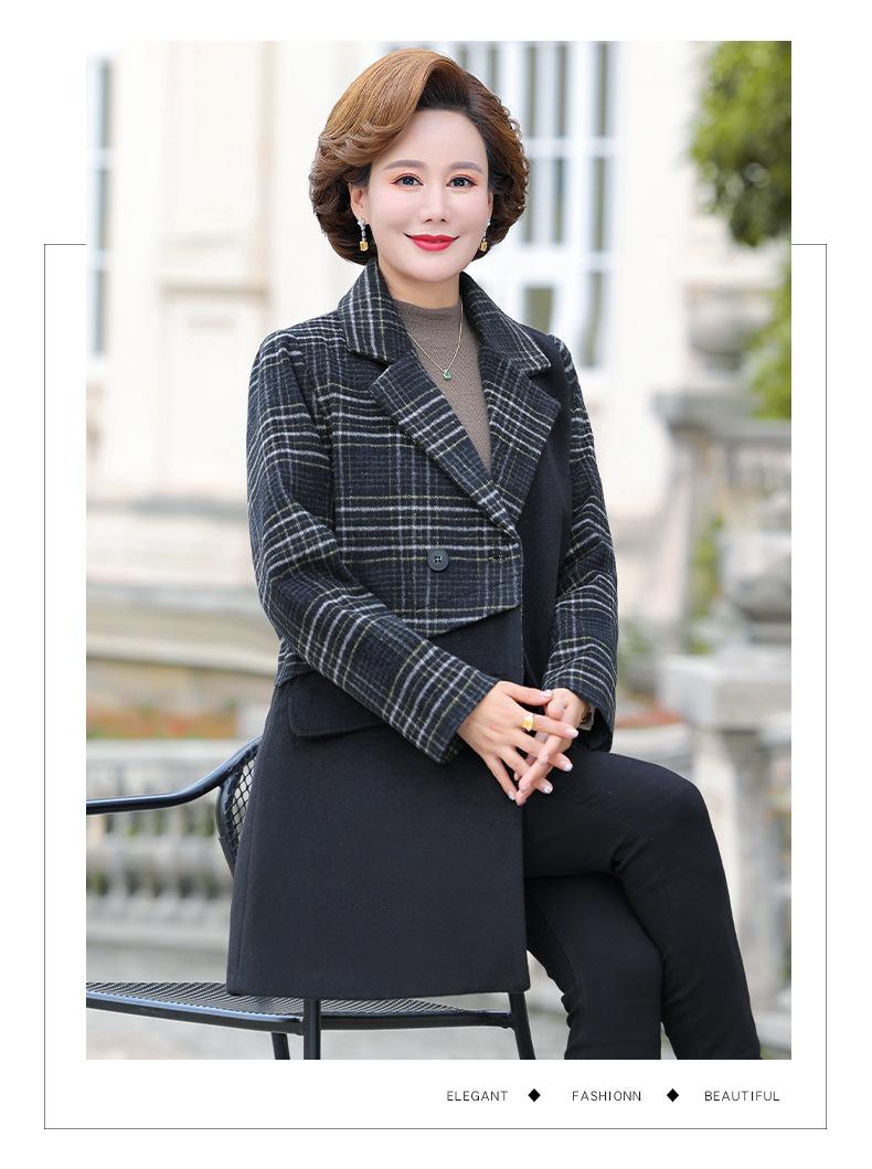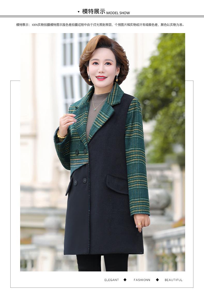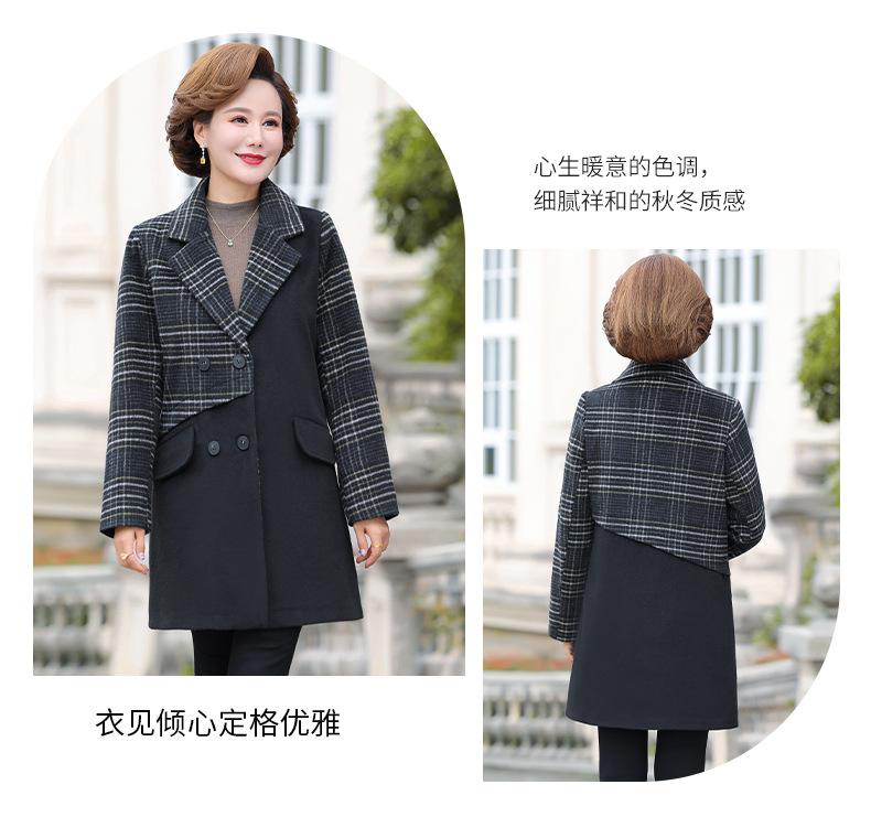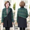 Abrigo de lana de invierno de longitud media con solapa de algodón y costura a cuadros para mujer de mediana edad y mayor, de talla grande, a la moda