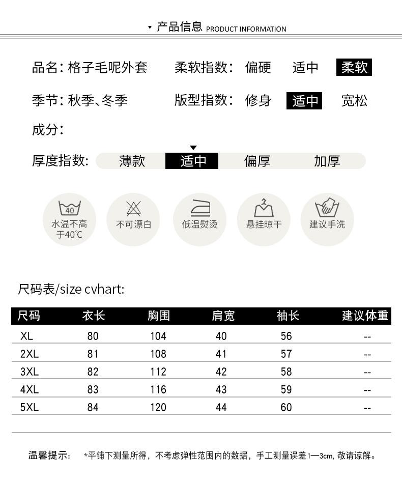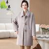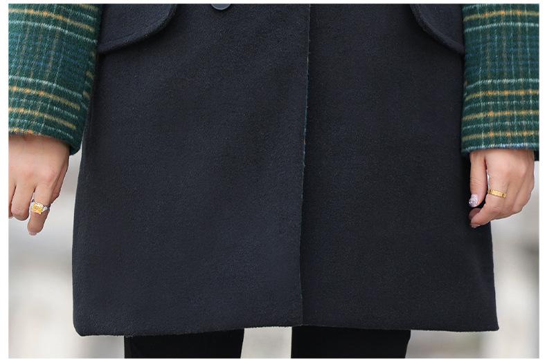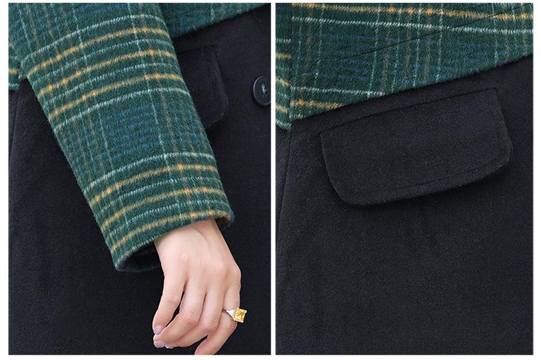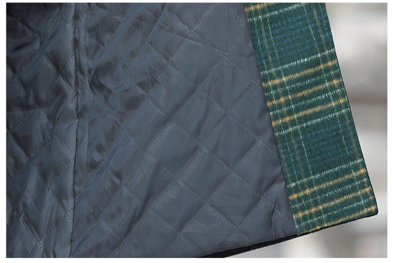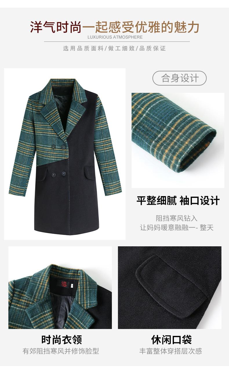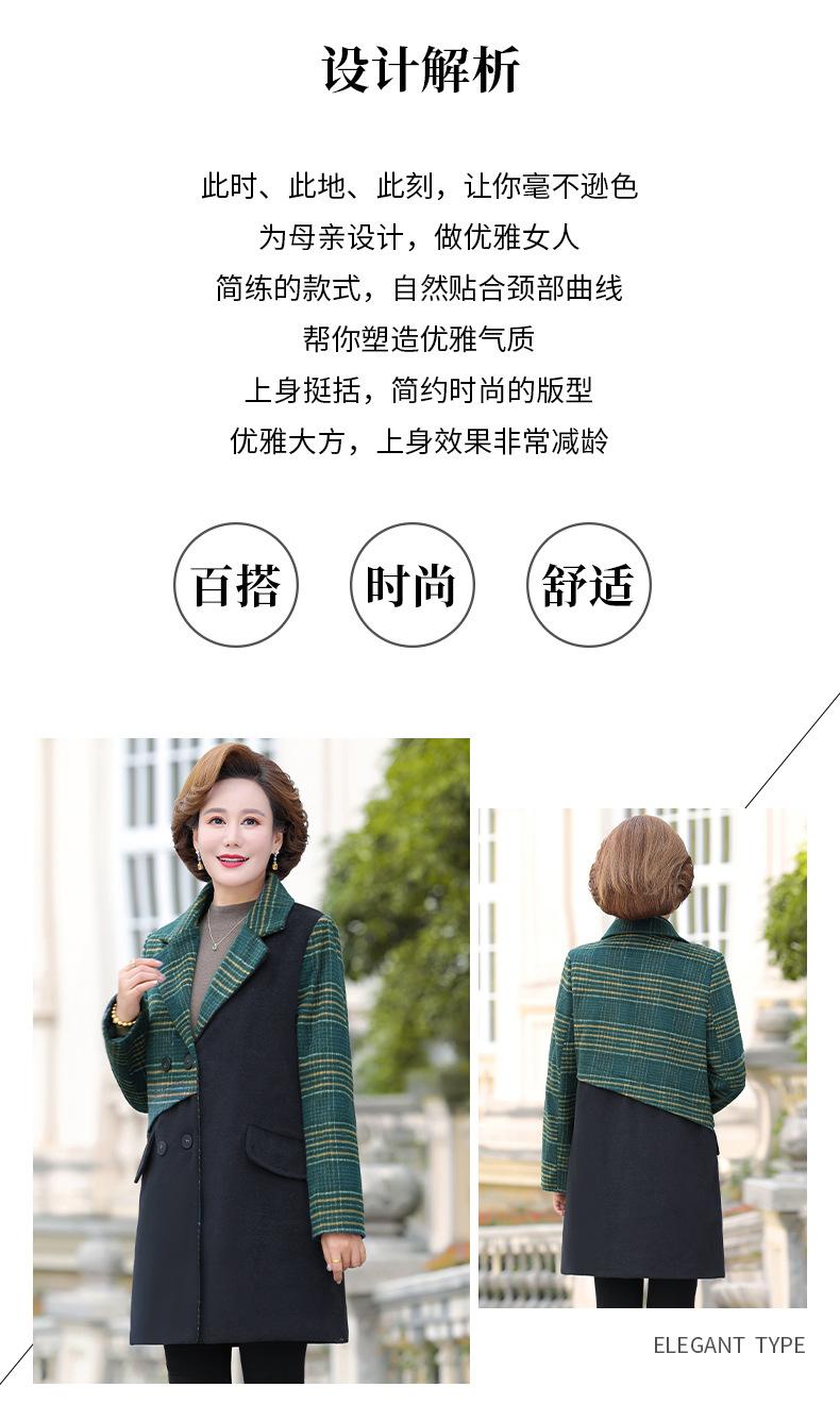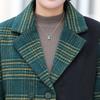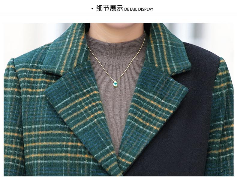 Abrigo de lana de invierno de longitud media con solapa de algodón y costura a cuadros para mujer de mediana edad y mayor, de talla grande, a la moda