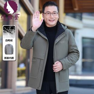 Abrigo interior desmontable de nuevo estilo de invierno para papá más chaqueta de plumón de pato blanco cálido de terciopelo chaqueta de plumón para hombre de mediana edad