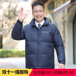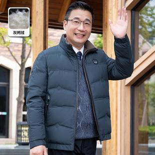 Chaqueta de plumón de pato real con bolsillo y cremallera informal de invierno para papá, de color sólido, con cuello alto, para hombres de mediana edad y mayores