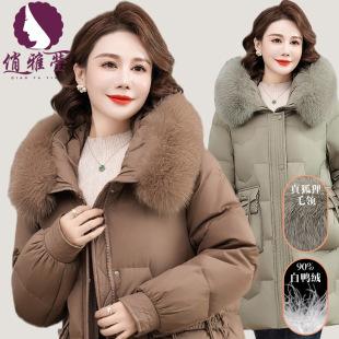 Chaqueta de plumón de color liso de longitud media recién llegada de invierno de la madre de Qiao Yaying, nuevo abrigo de invierno esponjoso de plumón de pato blanco 90% estándar nacional