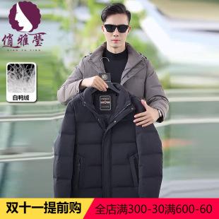 Chaqueta de plumón de pato blanco para hombre de mediana edad y mayor de estilo invernal con capucha, forro desmontable, cuello alto a prueba de viento, chaqueta de plumón de papá