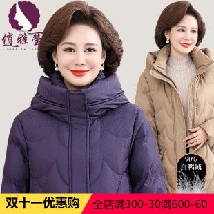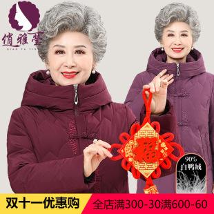 Chaqueta de plumón de pato blanco bordada con capucha para mujer de mediana edad y anciana de 50 a 60 años, nueva chaqueta de plumón de invierno de estilo chino para madre