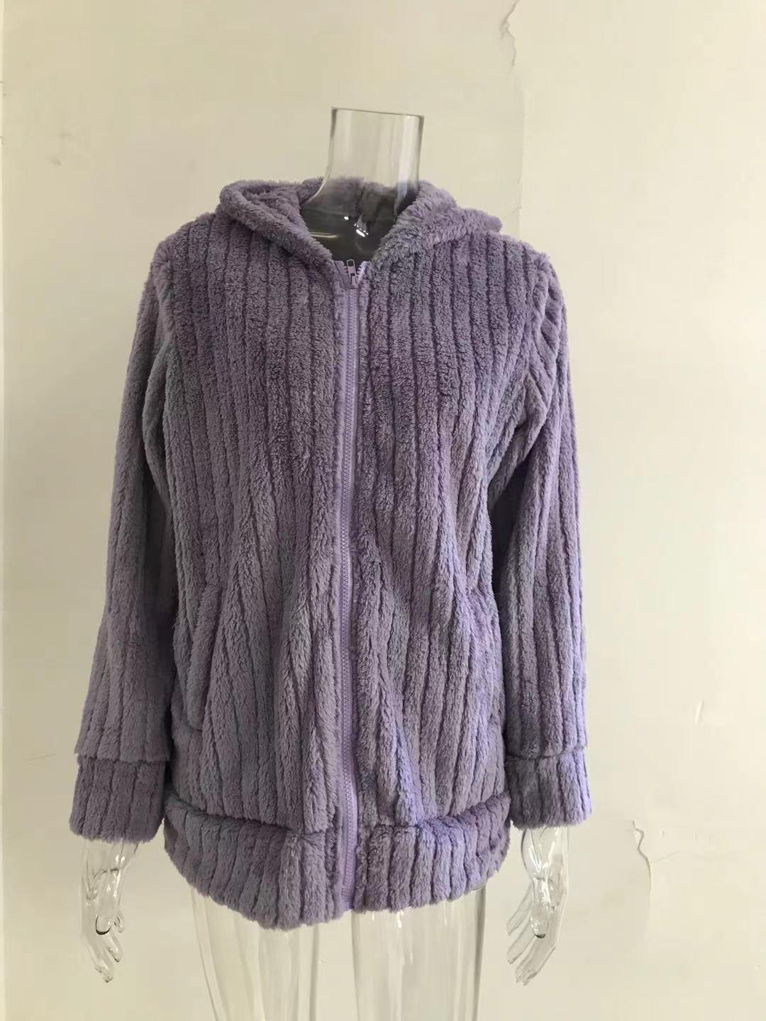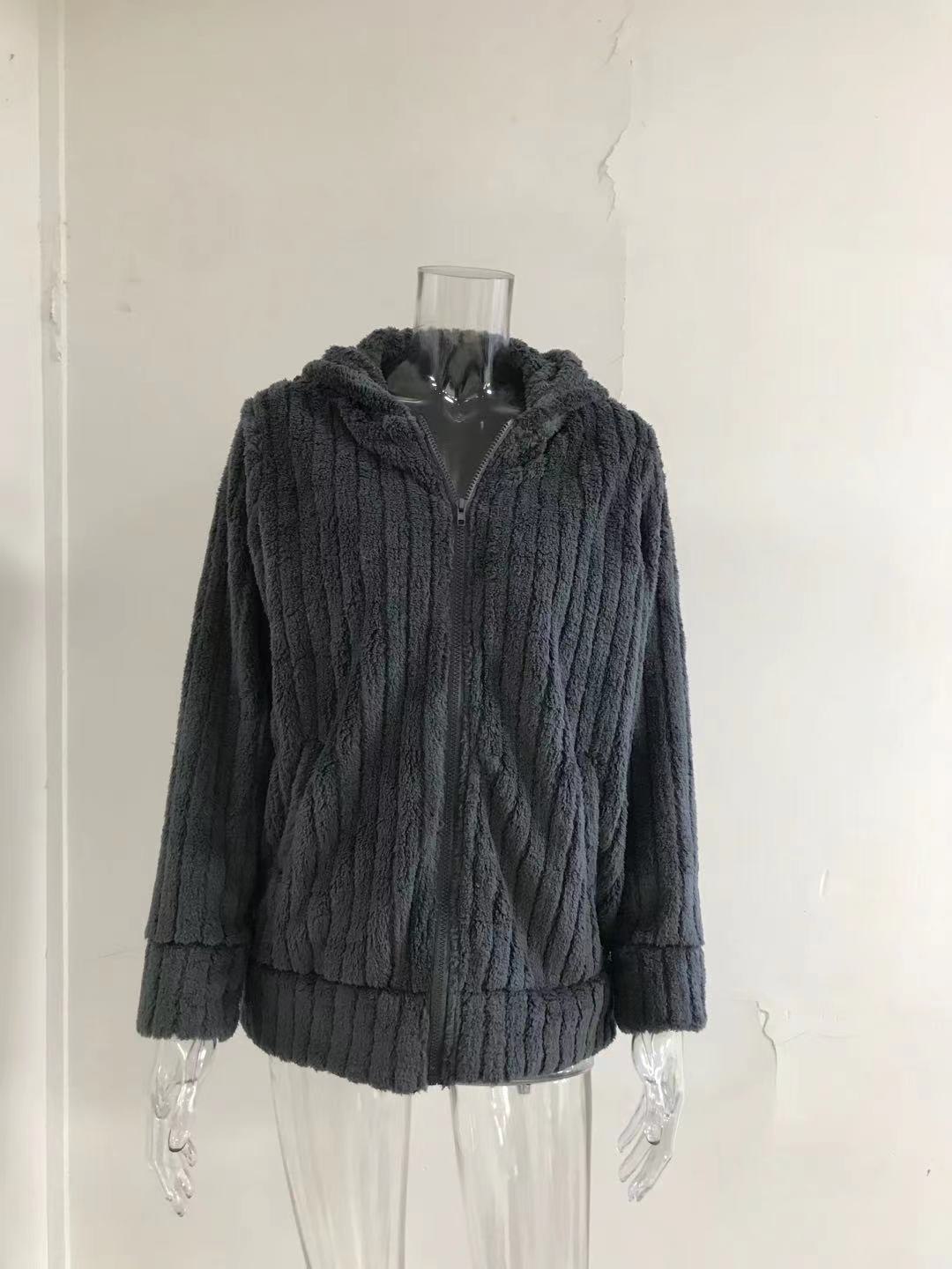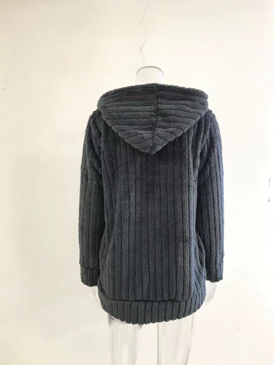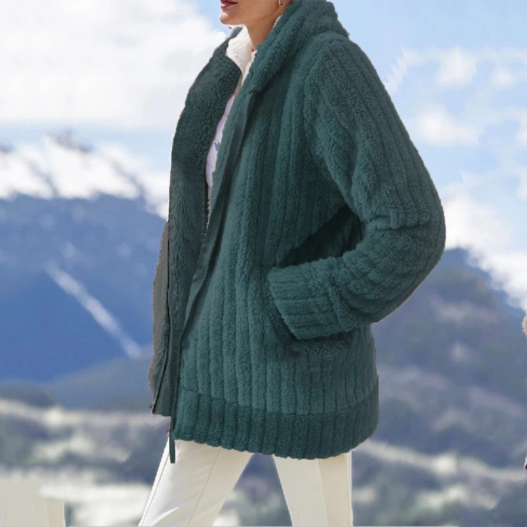 Abrigo holgado con capucha y bolsillo con cremallera de color sólido de felpa cálida para otoño e invierno 2022 de Amazon, nuevo, europeo y americano, para mujer