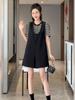 Traje de Peto de Moda de Estilo Europeo para Mujer Verano 2025 Nuevo Camiseta de Manga Corta a Rayas Mono Conjunto de Dos Piezas