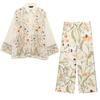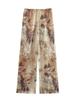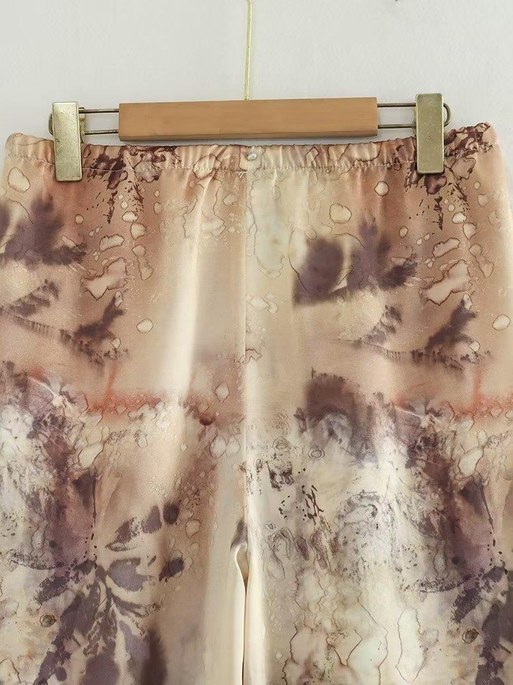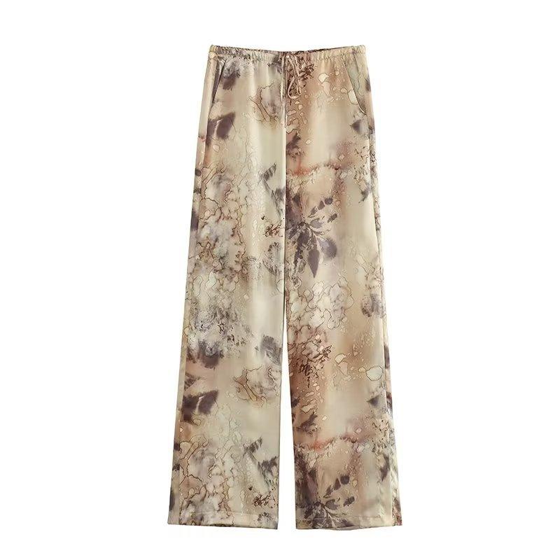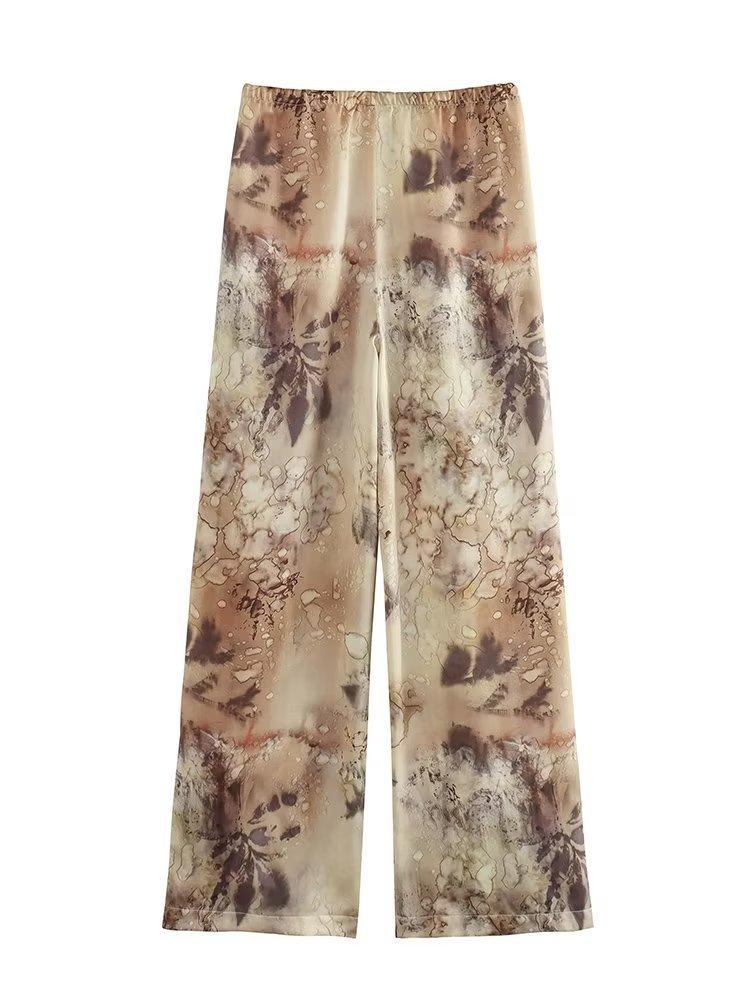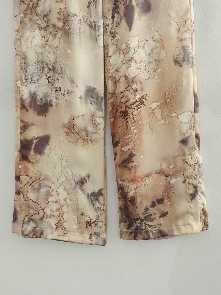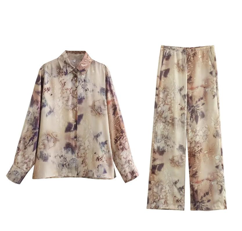 Oferta especial de verano para comercio exterior transfronterizo: camisa estampada de satén y pantalón recto informal para mujer (estilo europeo y americano).