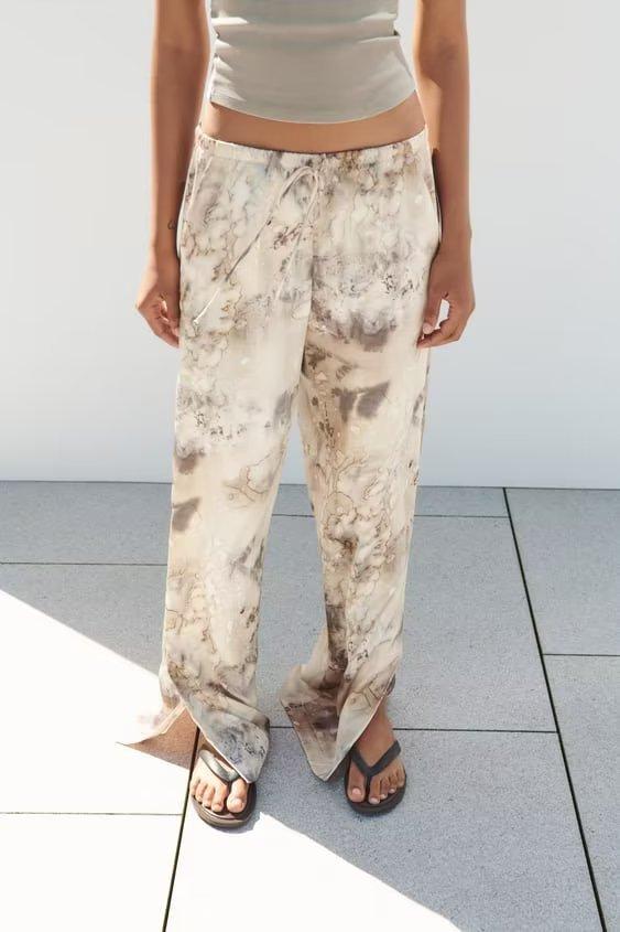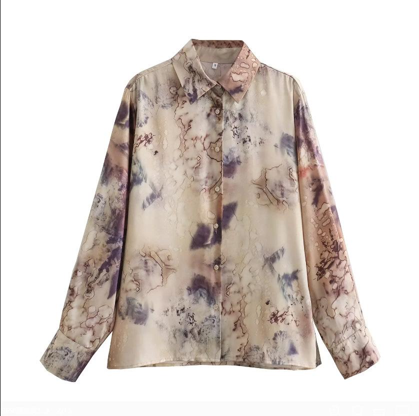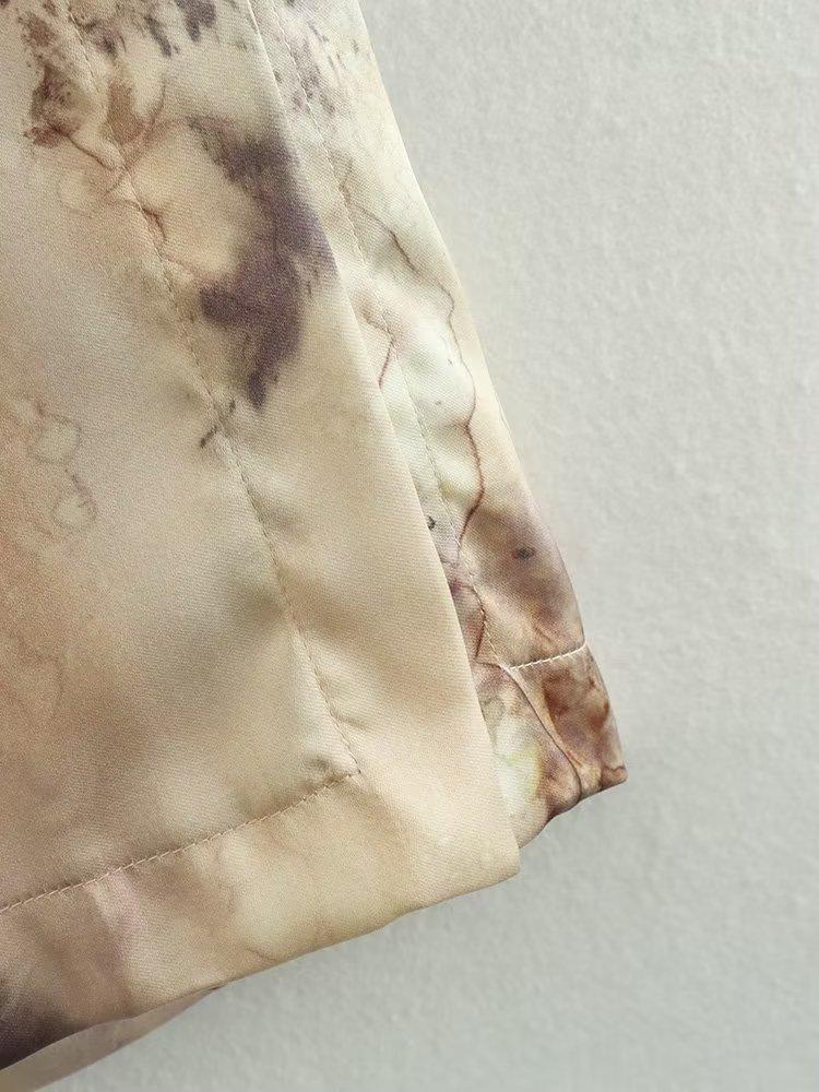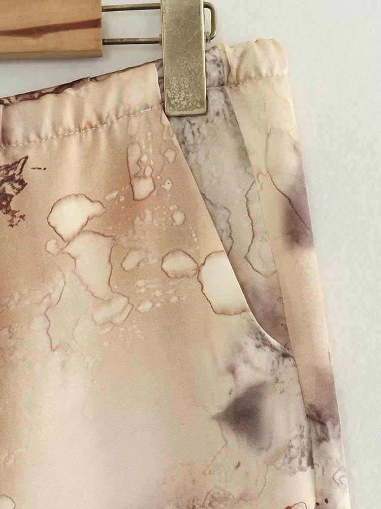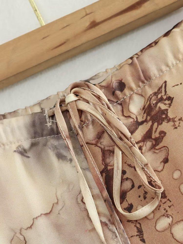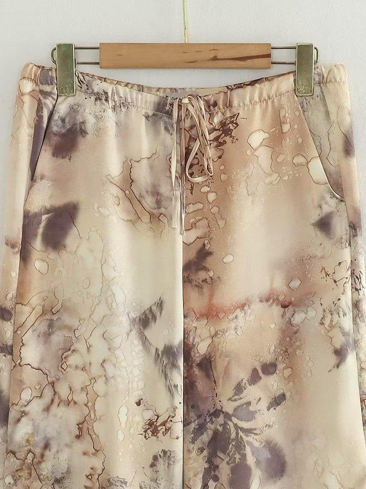 Oferta especial de verano para comercio exterior transfronterizo: camisa estampada de satén y pantalón recto informal para mujer (estilo europeo y americano).