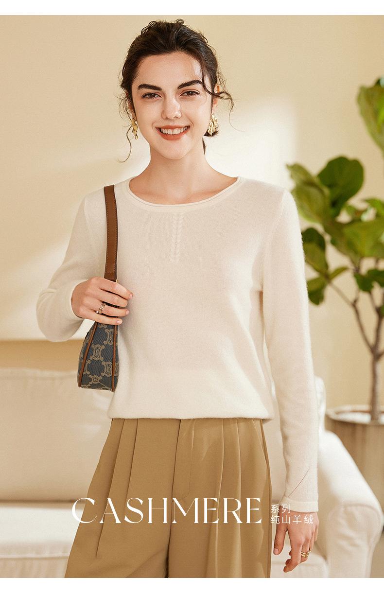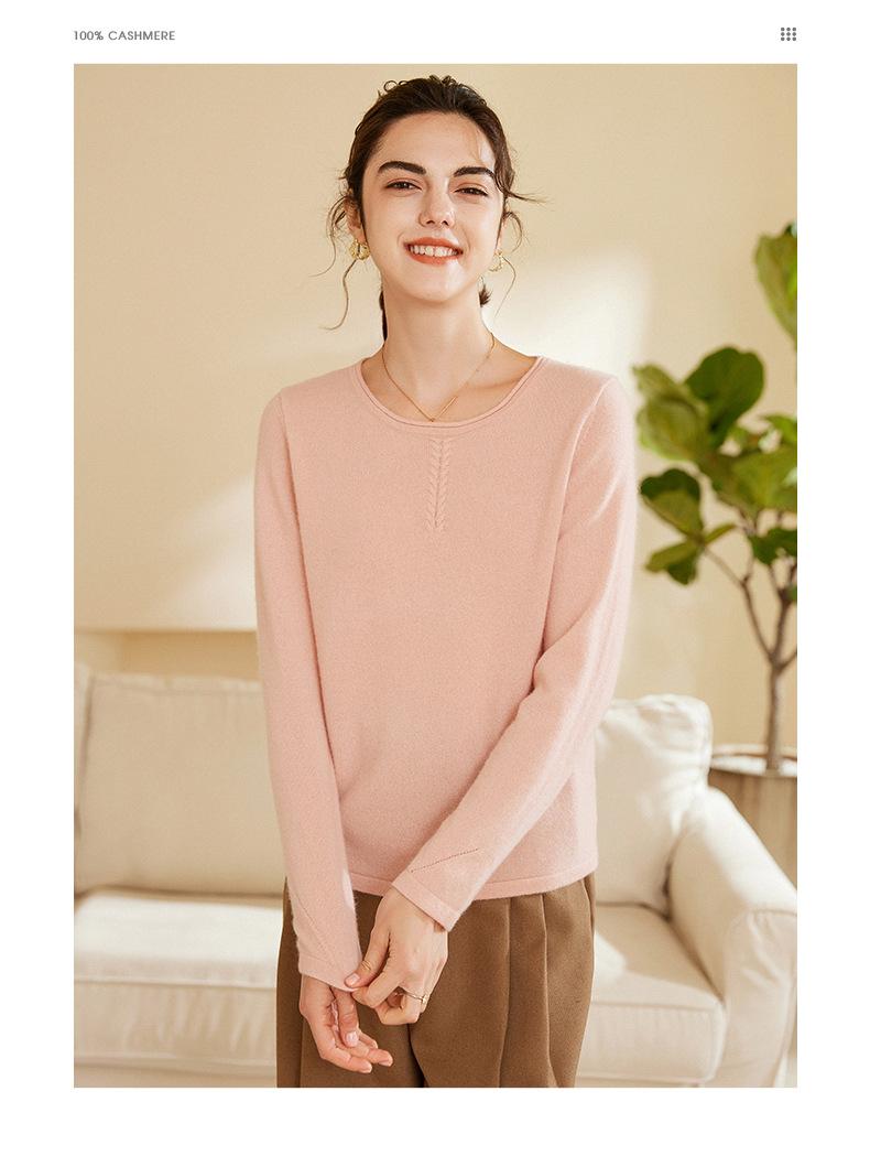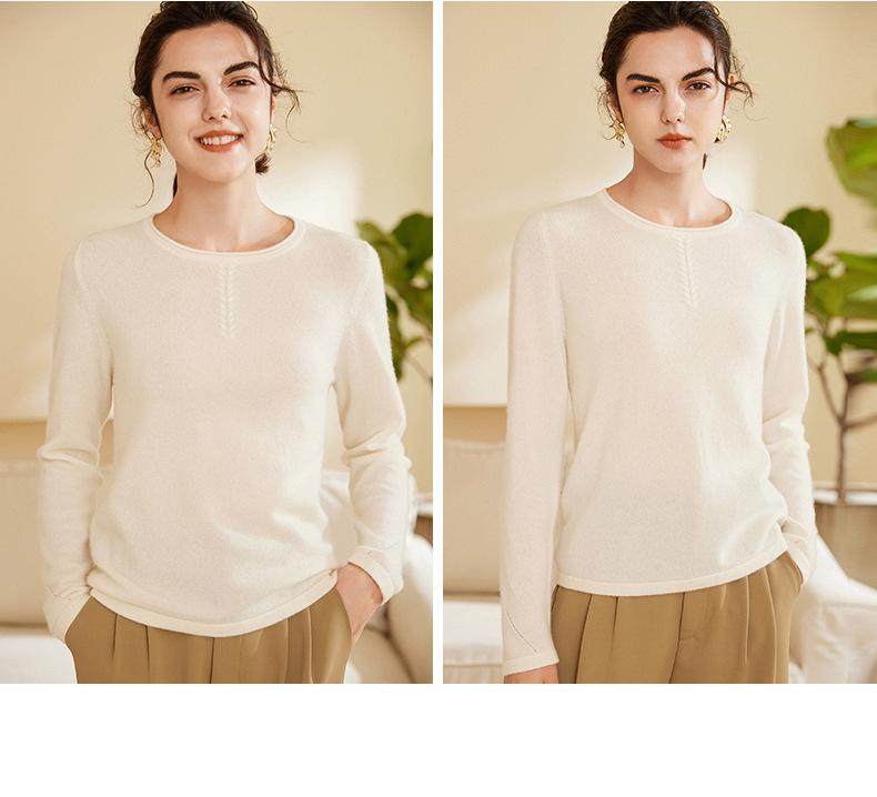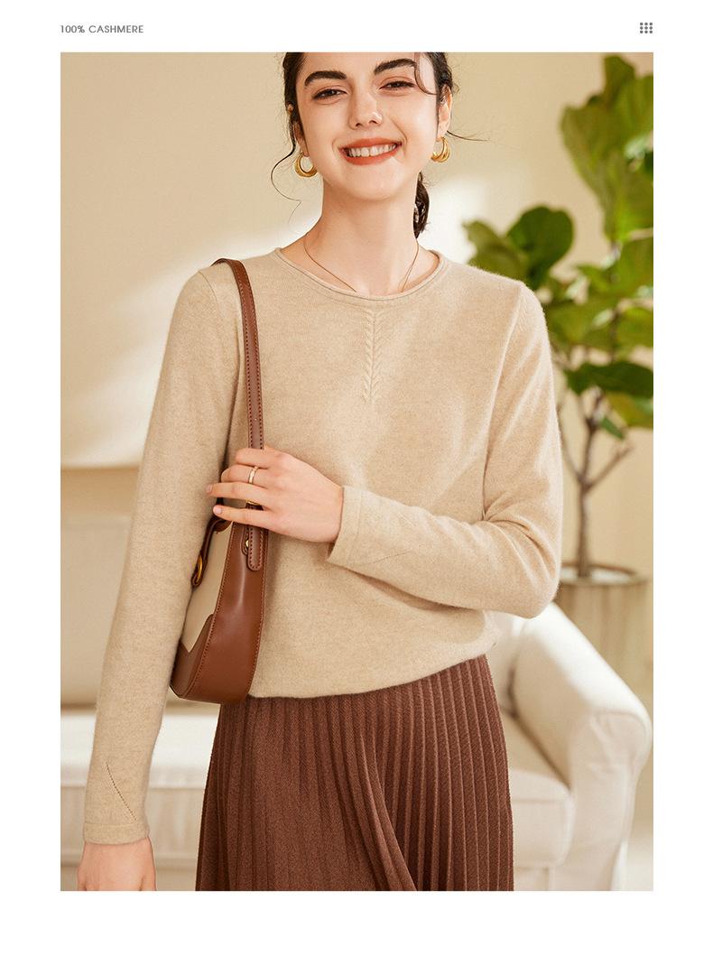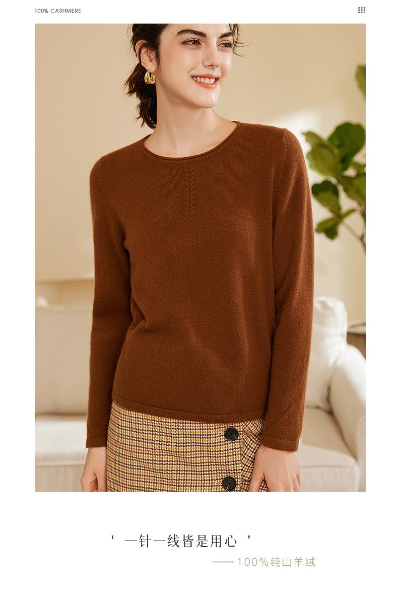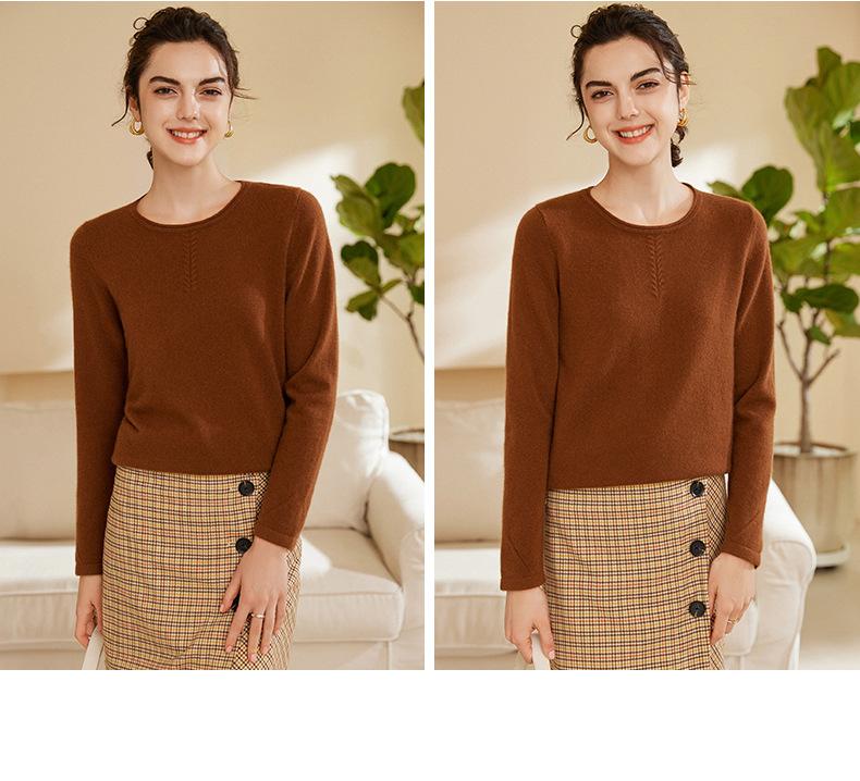 Suéter de cachemira de cuello redondo para mujer, suéter de cachemira 100% pura, otoño e invierno, estilo commuter sencillo, suéter de cachemira pura, camisa básica de punto