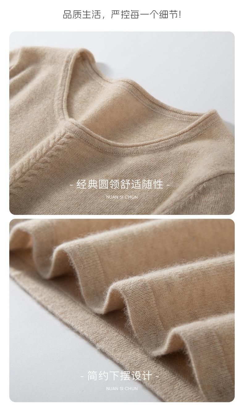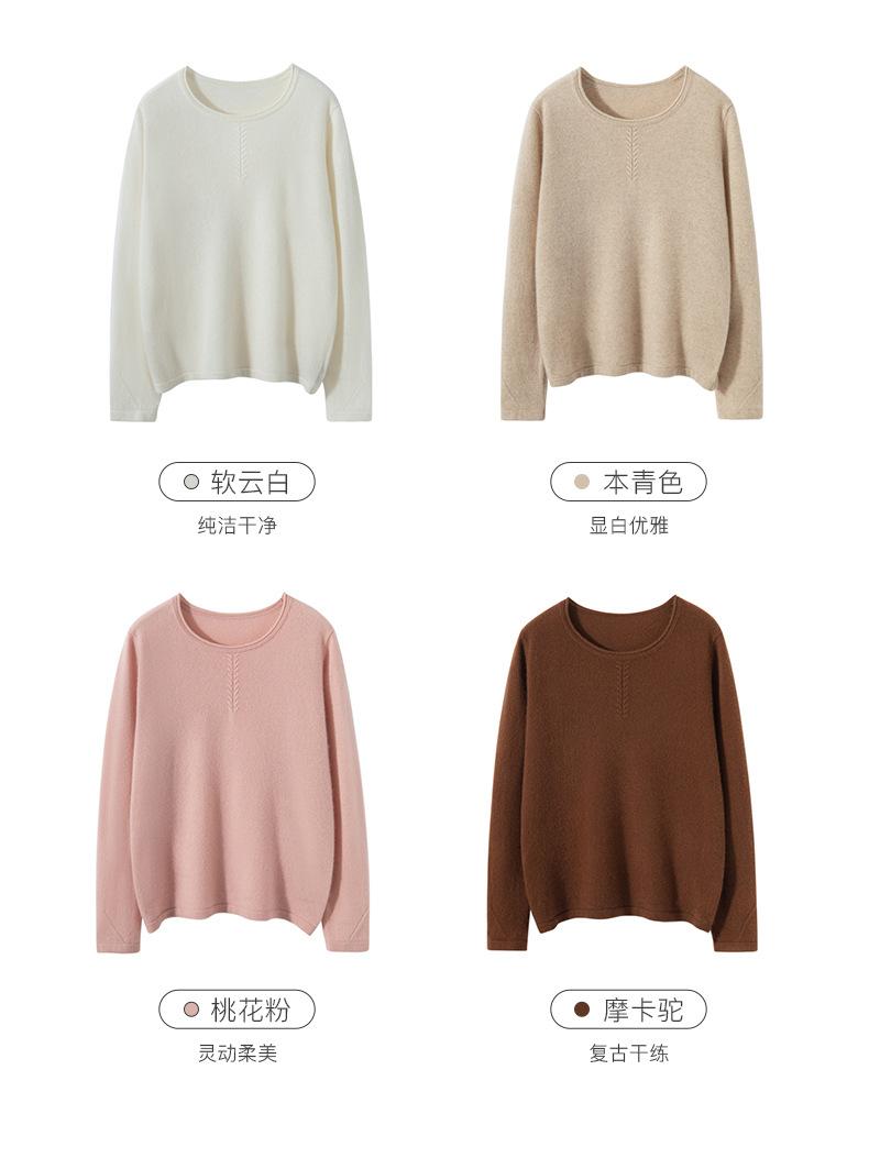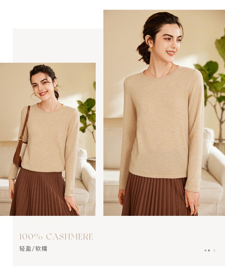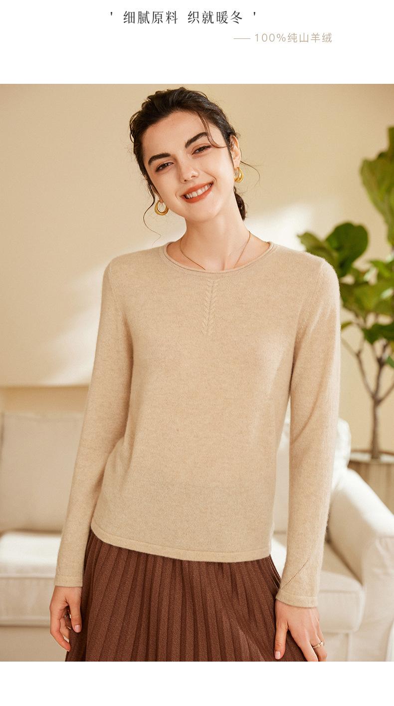 Suéter de cachemira de cuello redondo para mujer, suéter de cachemira 100% pura, otoño e invierno, estilo commuter sencillo, suéter de cachemira pura, camisa básica de punto