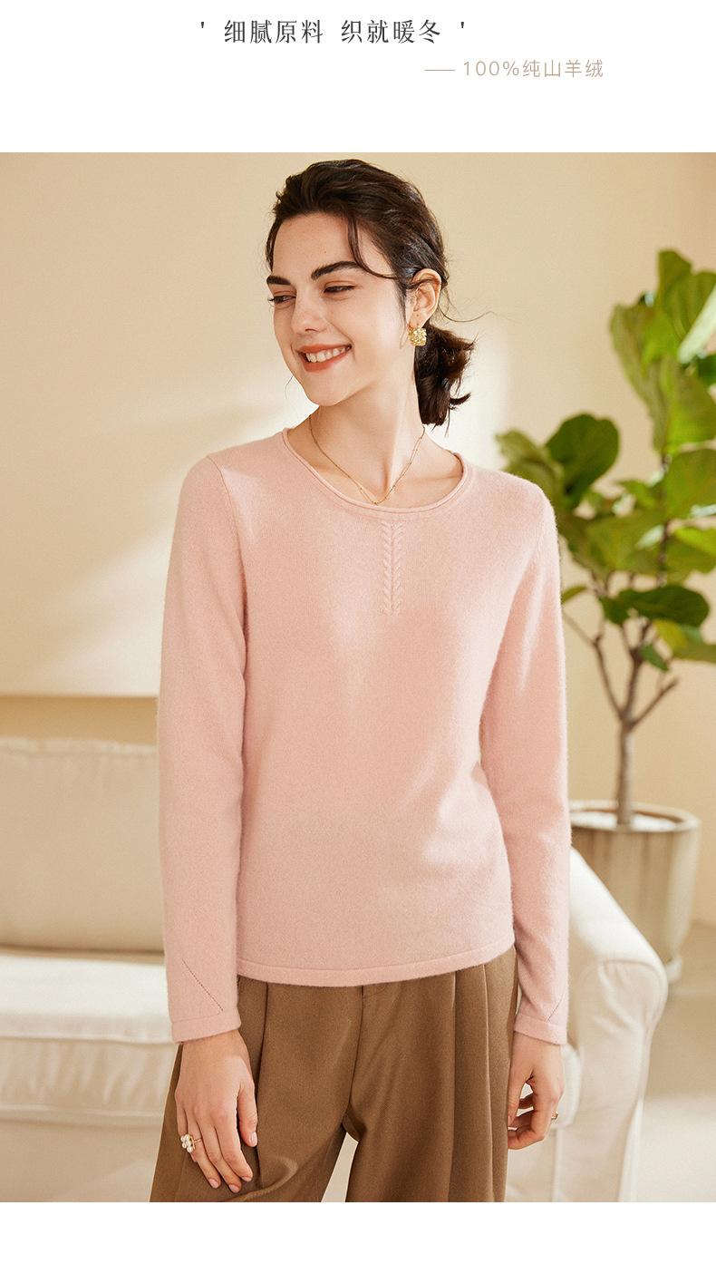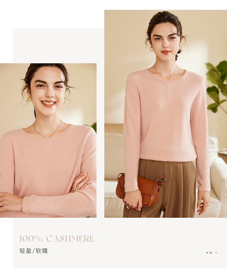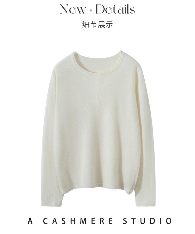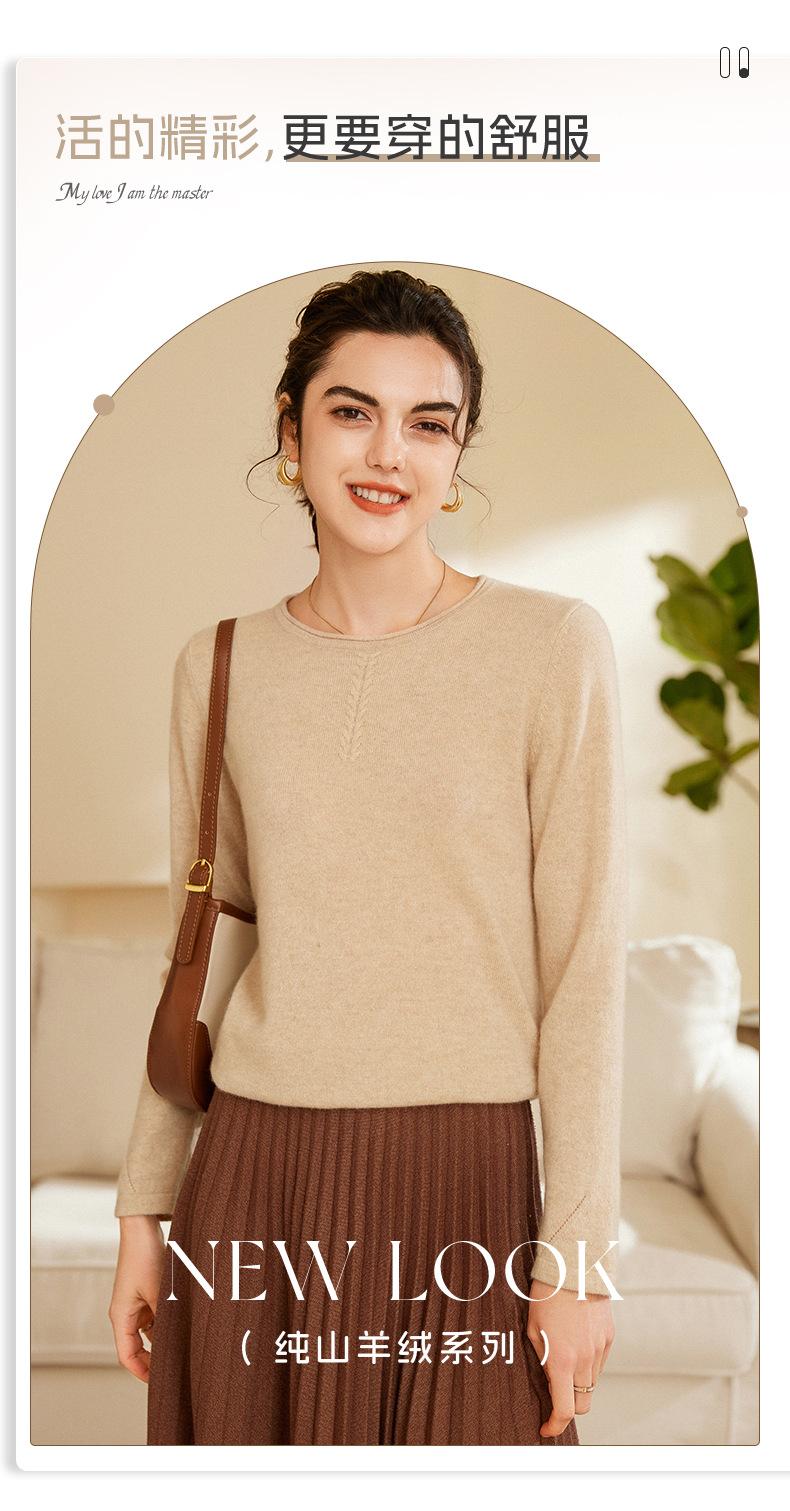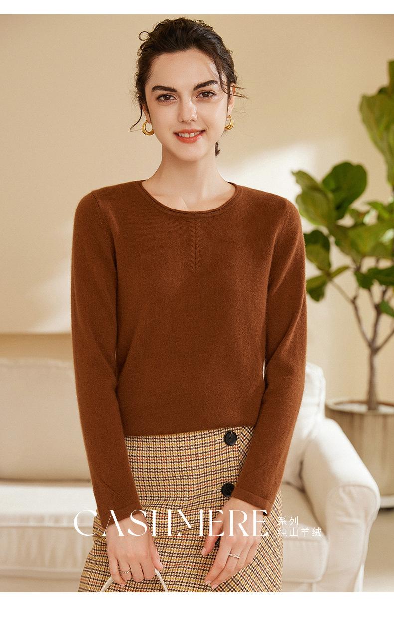 Suéter de cachemira de cuello redondo para mujer, suéter de cachemira 100% pura, otoño e invierno, estilo commuter sencillo, suéter de cachemira pura, camisa básica de punto