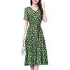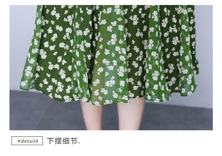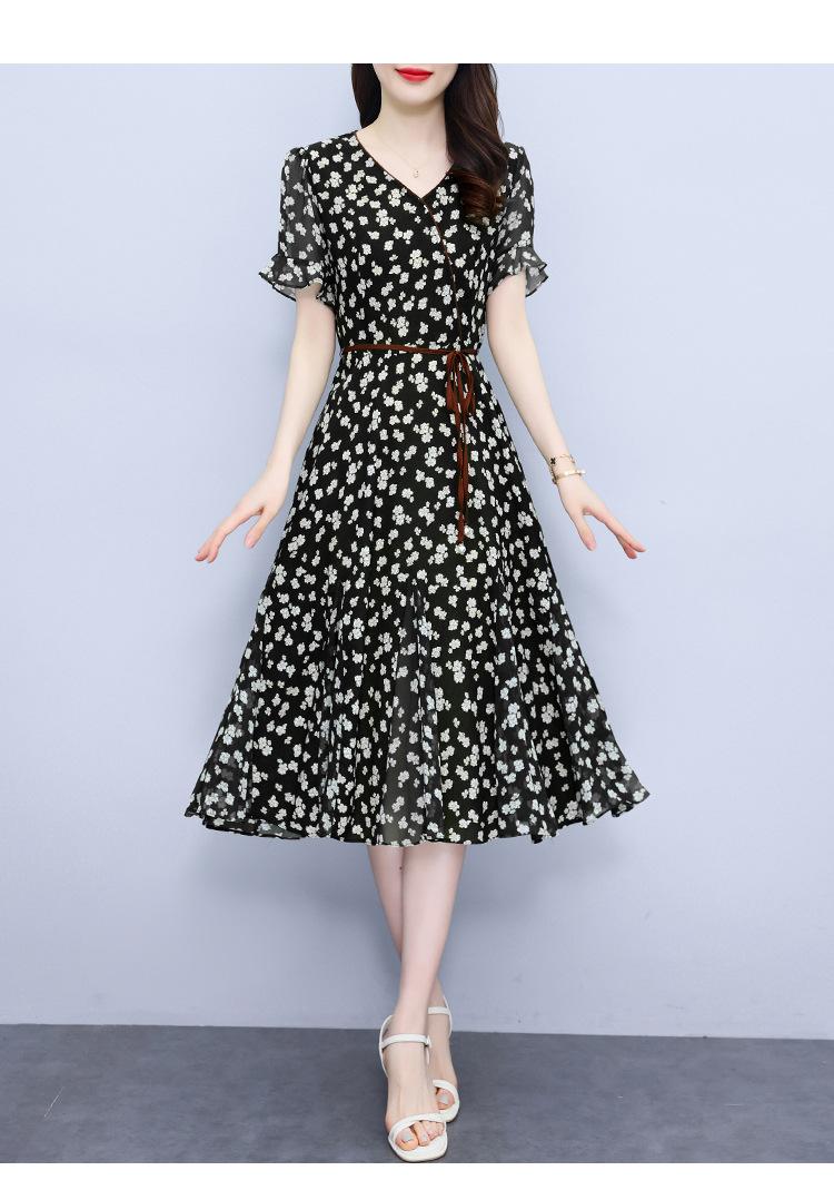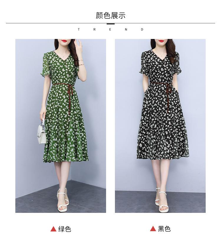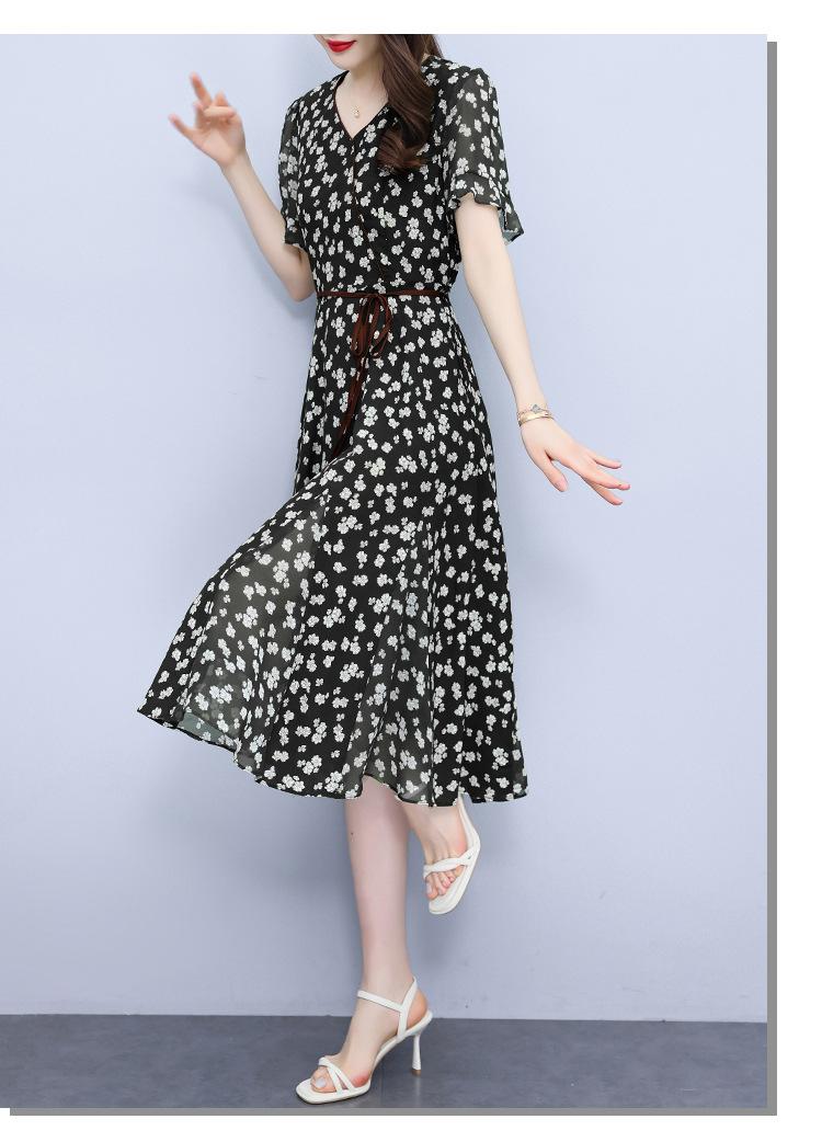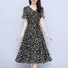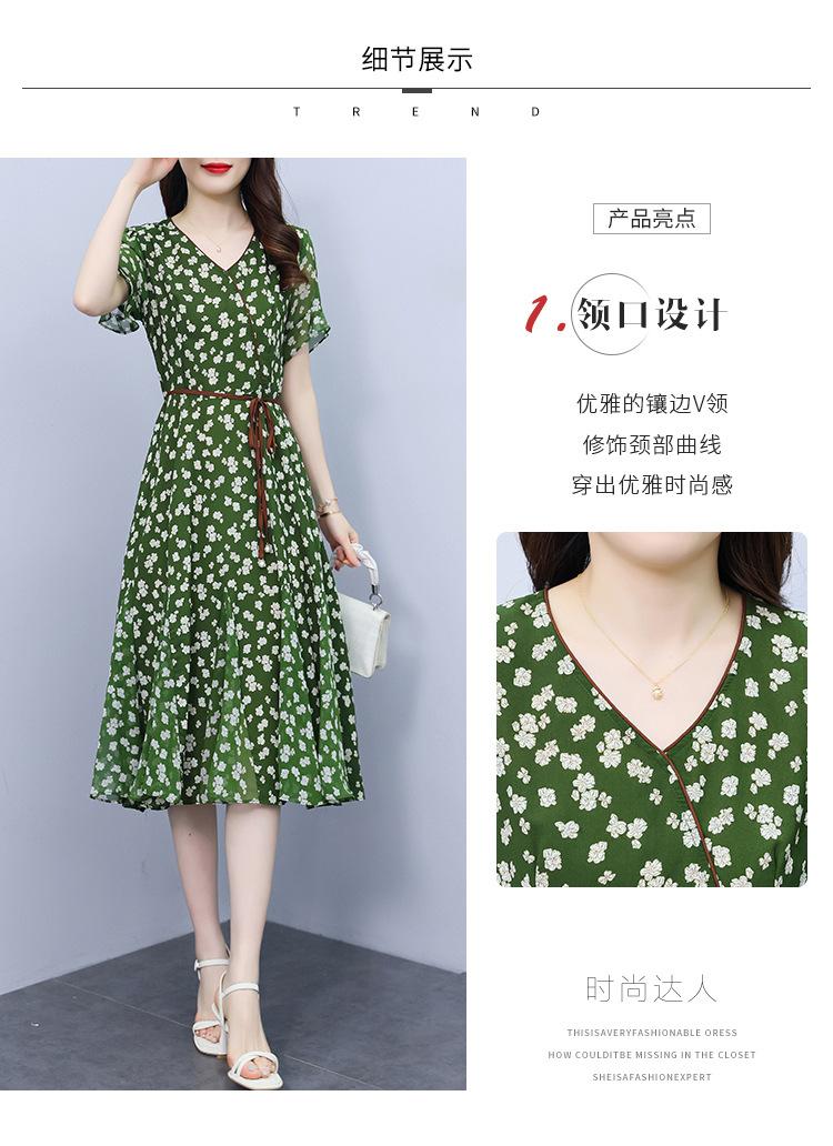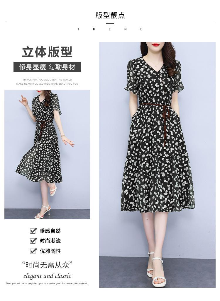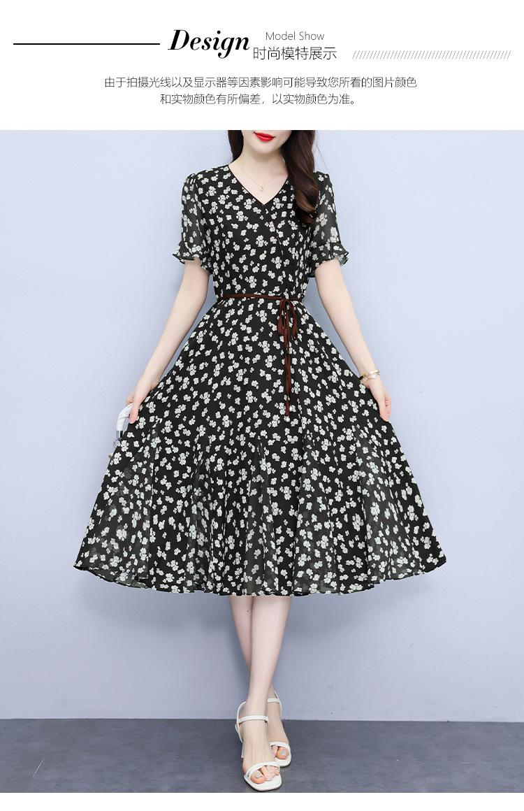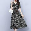 Foto Real de Estilo Lunares Cuello en V Floral 2024 Nuevo Verano Elegante Vestido de Chifón de Moda para Mujer que Cubre la Carne y Adelgaza