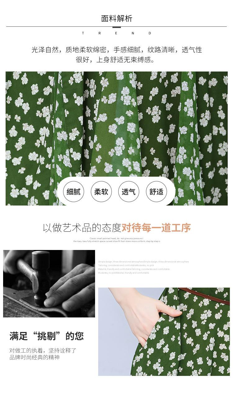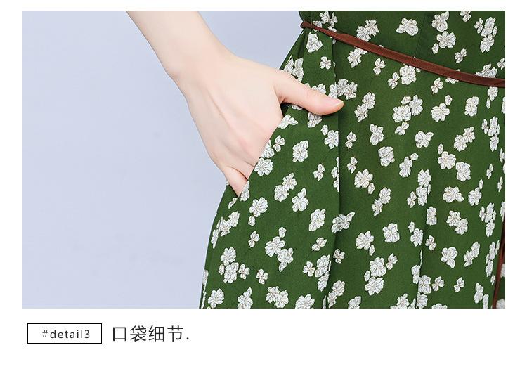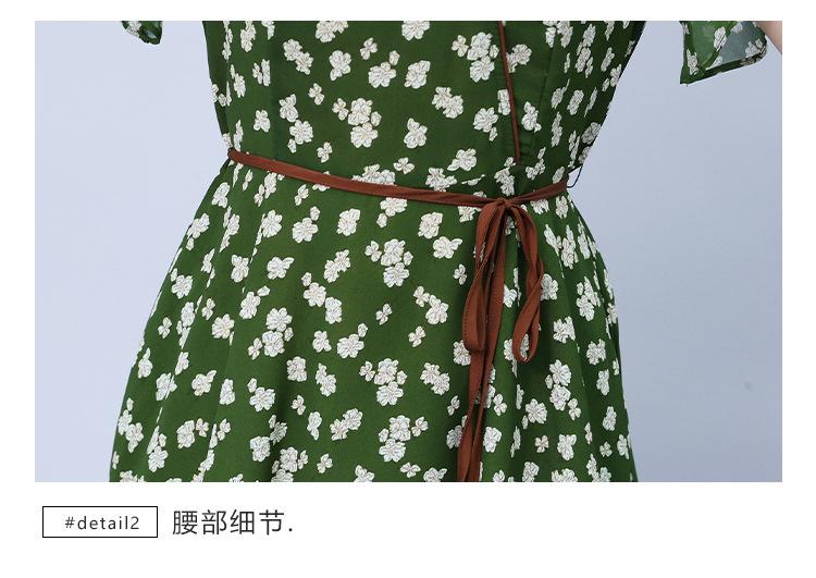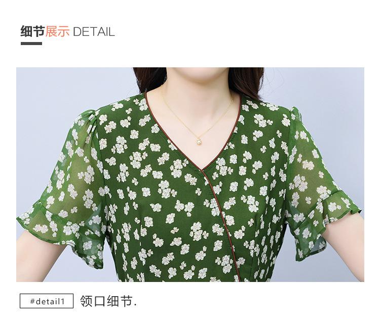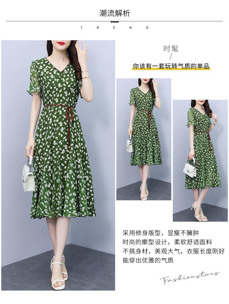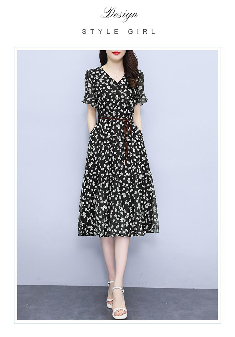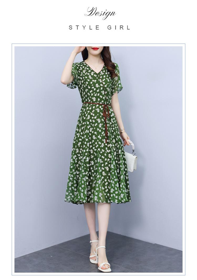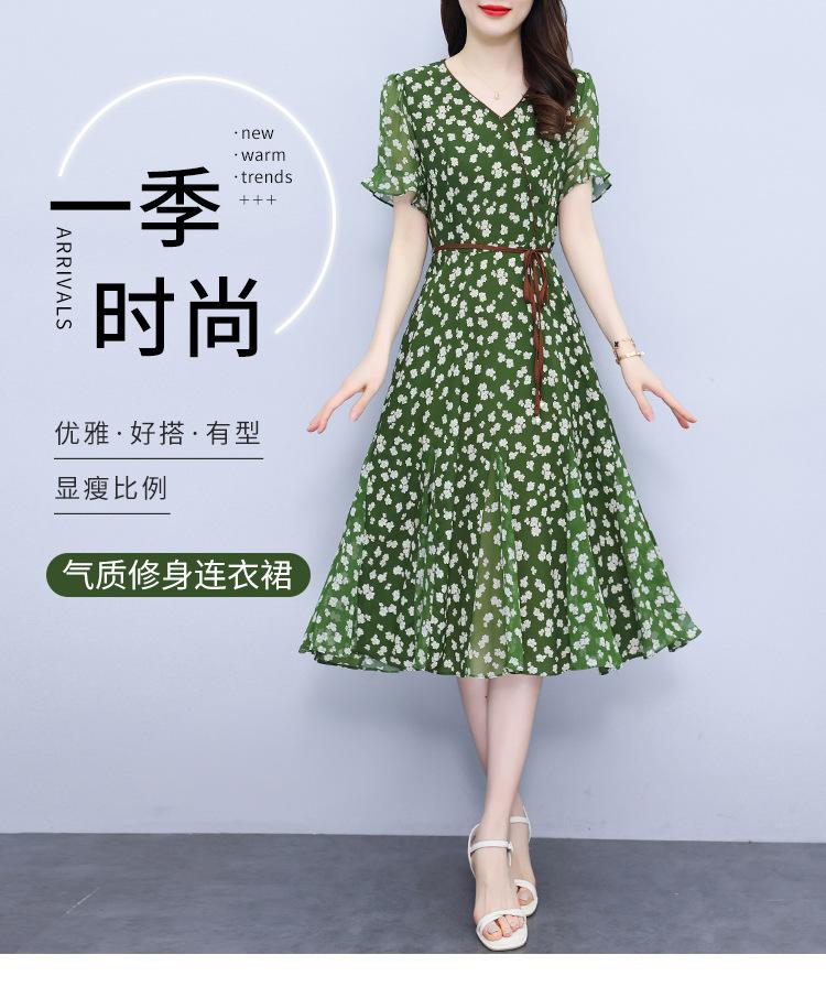 Foto Real de Estilo Lunares Cuello en V Floral 2024 Nuevo Verano Elegante Vestido de Chifón de Moda para Mujer que Cubre la Carne y Adelgaza