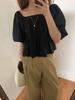 [Oferta especial sin devolución] verano nuevo top plisado de organza francés cuello cuadrado camisa manga abullonada W0598