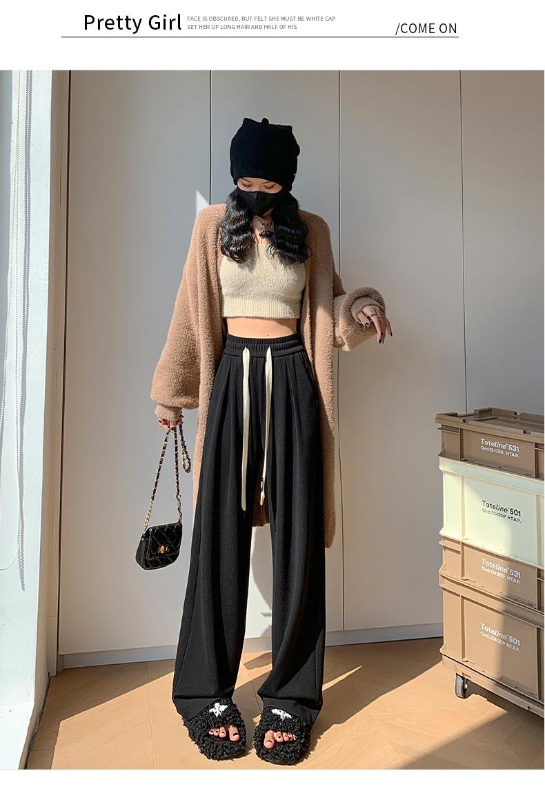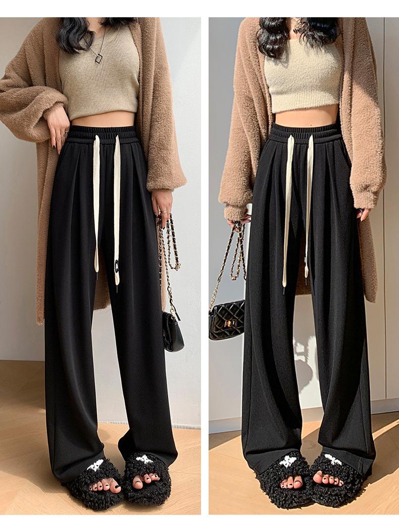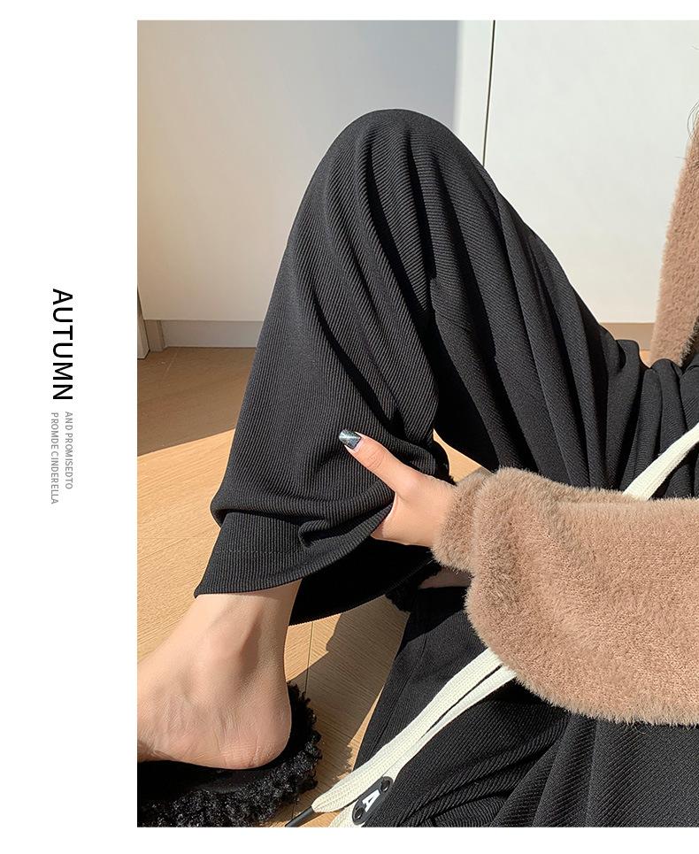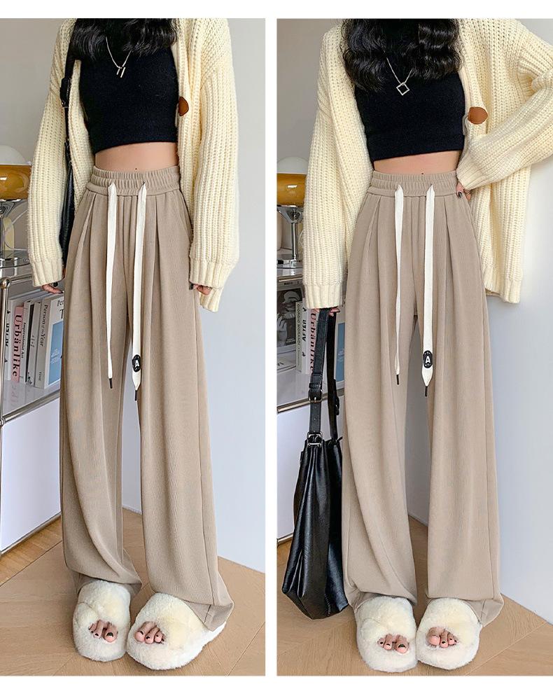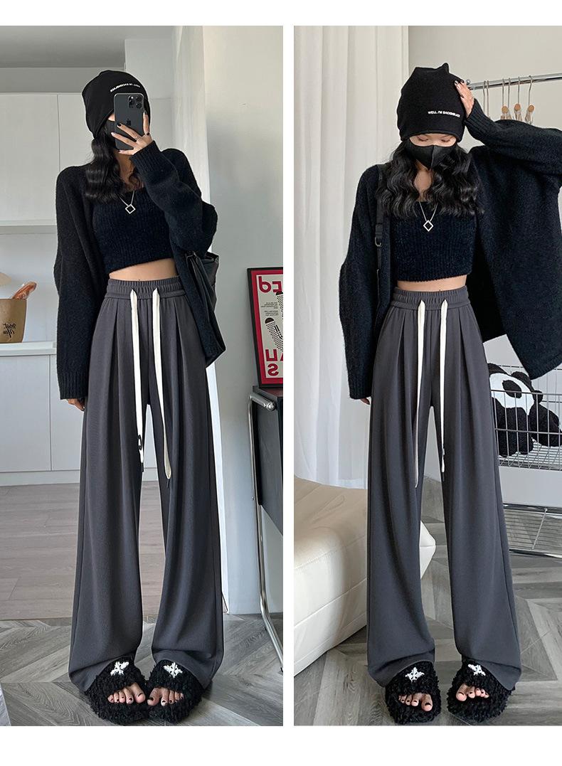 Pantalones deportivos de punto de pierna ancha para mujer otoño e invierno cintura alta adelgazantes con caída negros casuales para barrer el suelo pantalones rectos estrechos