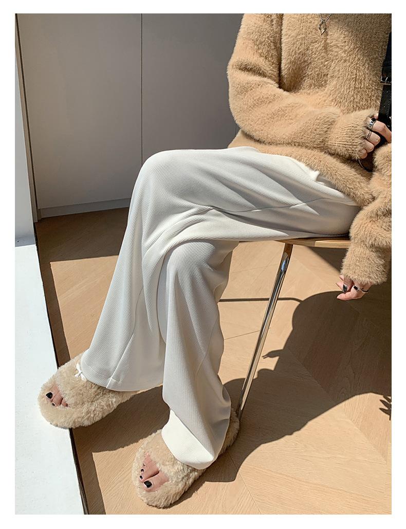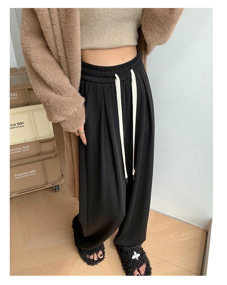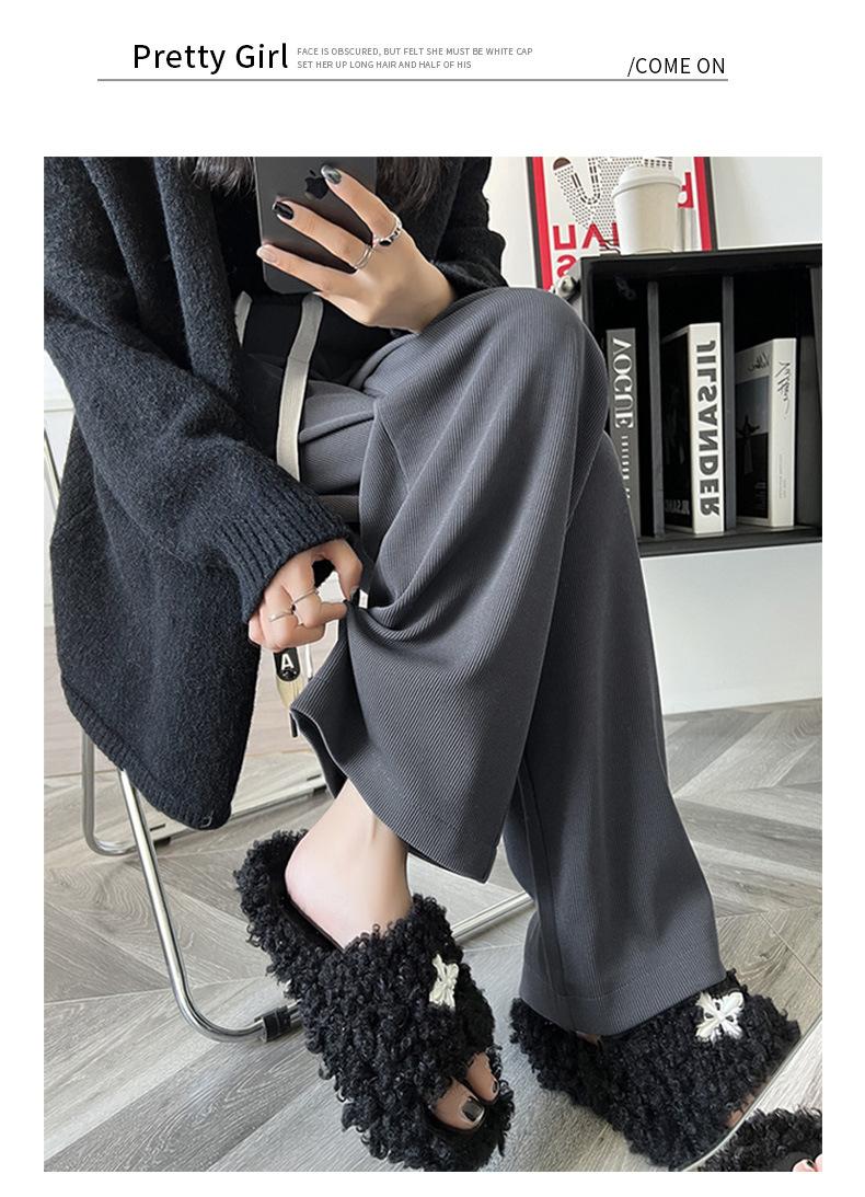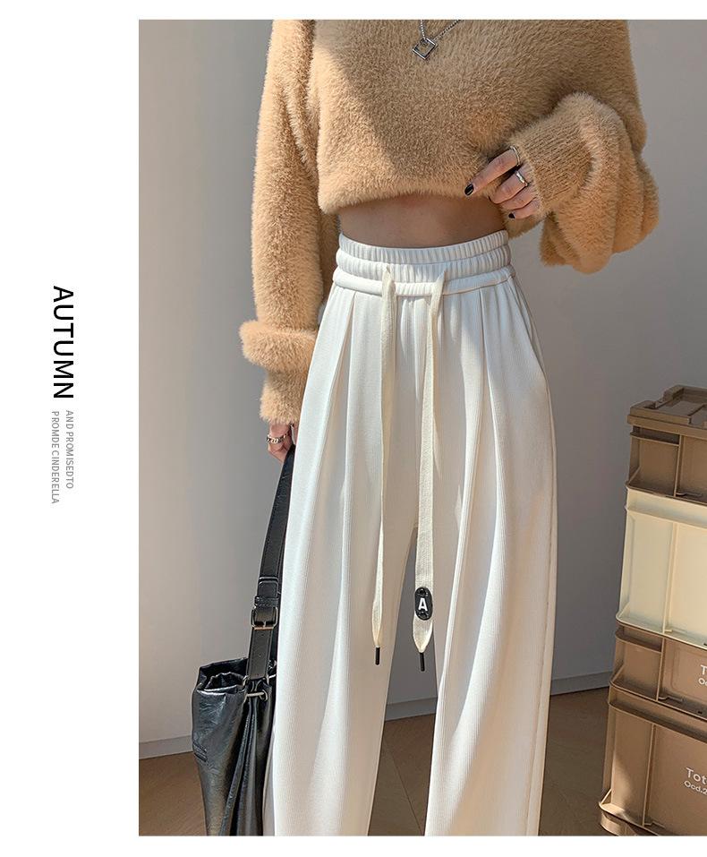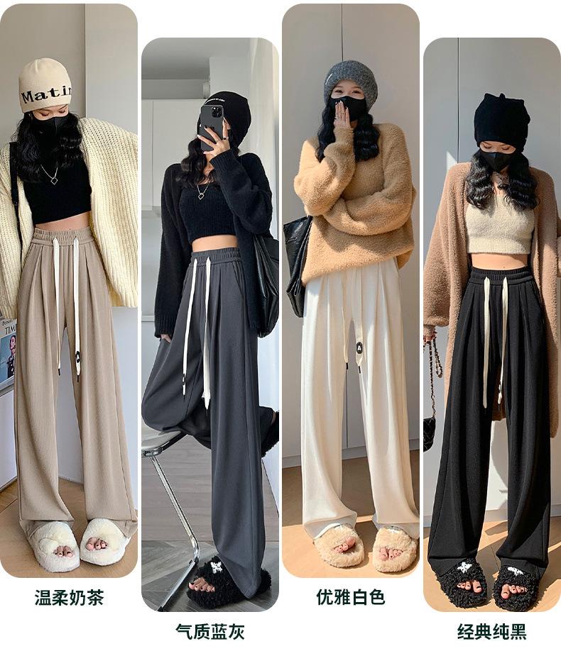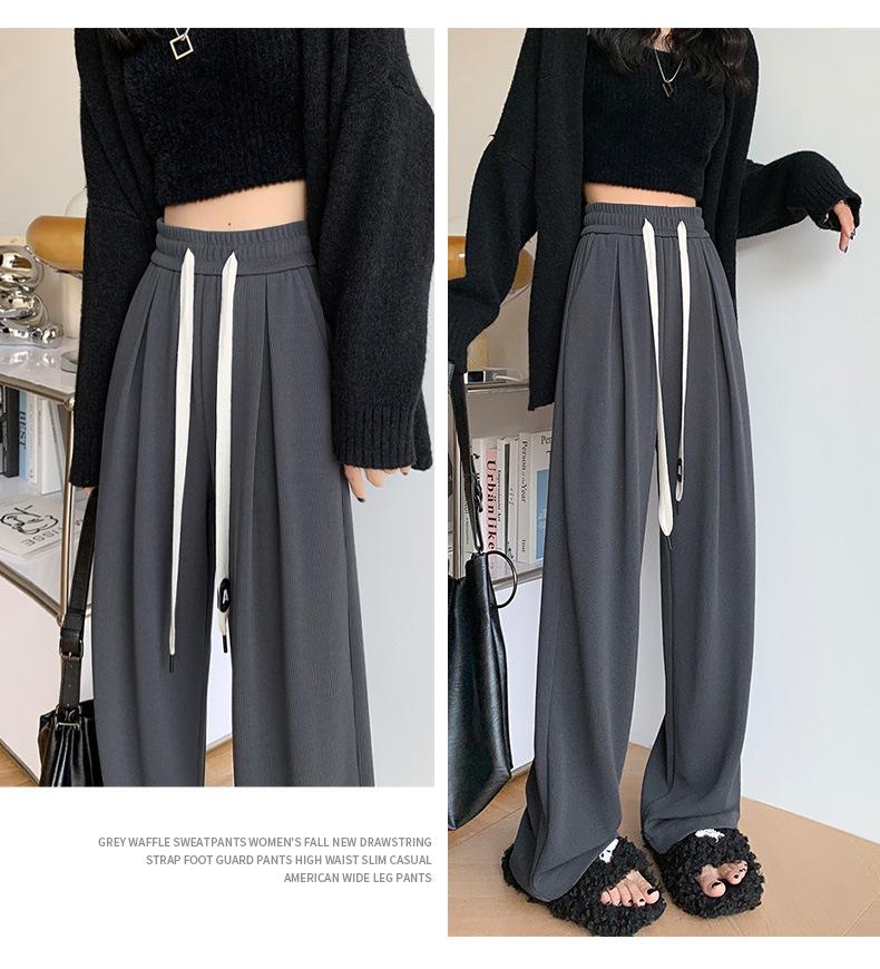 Pantalones deportivos de punto de pierna ancha para mujer otoño e invierno cintura alta adelgazantes con caída negros casuales para barrer el suelo pantalones rectos estrechos
