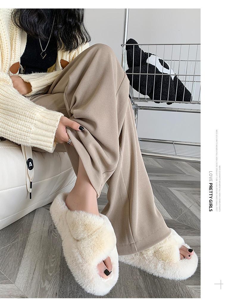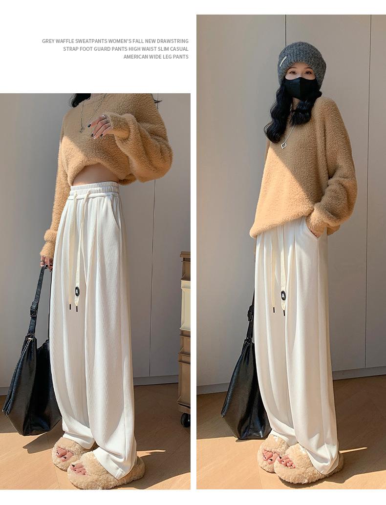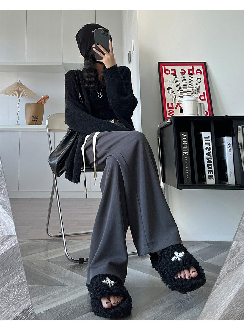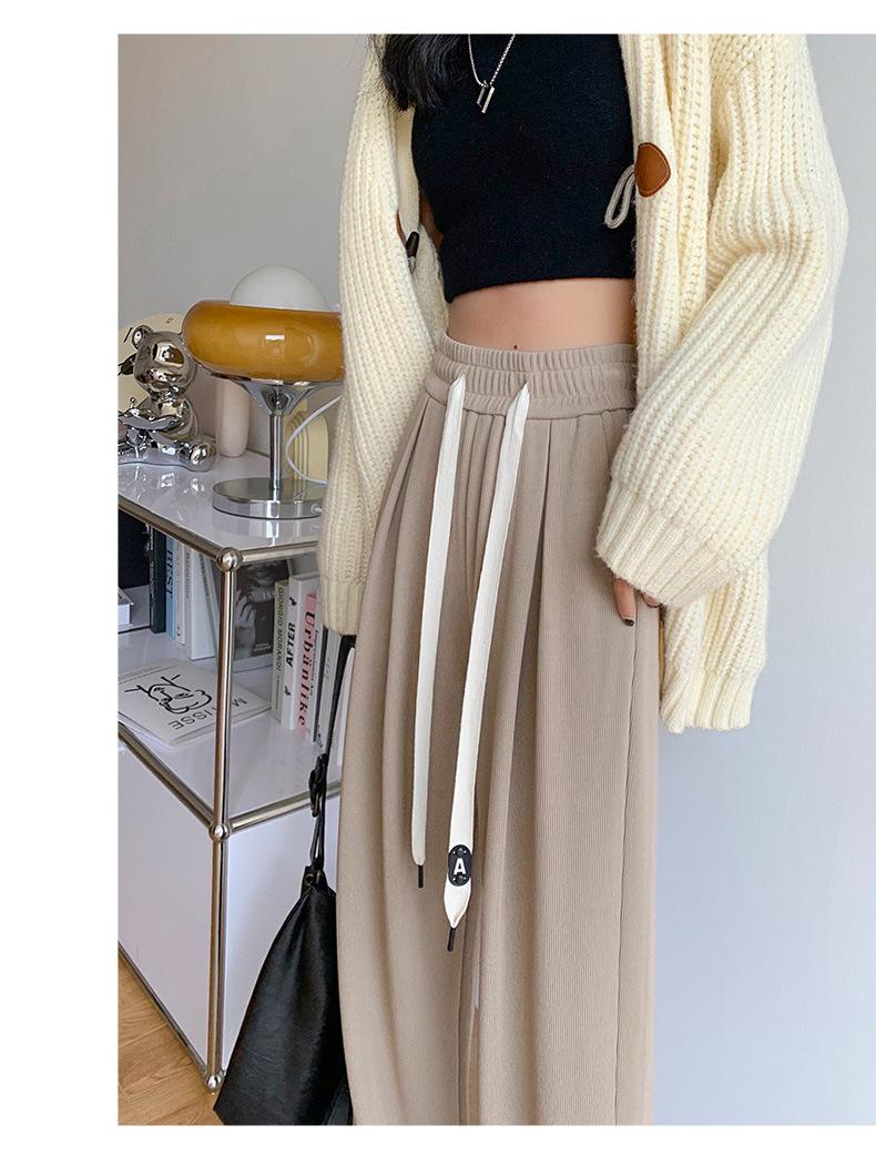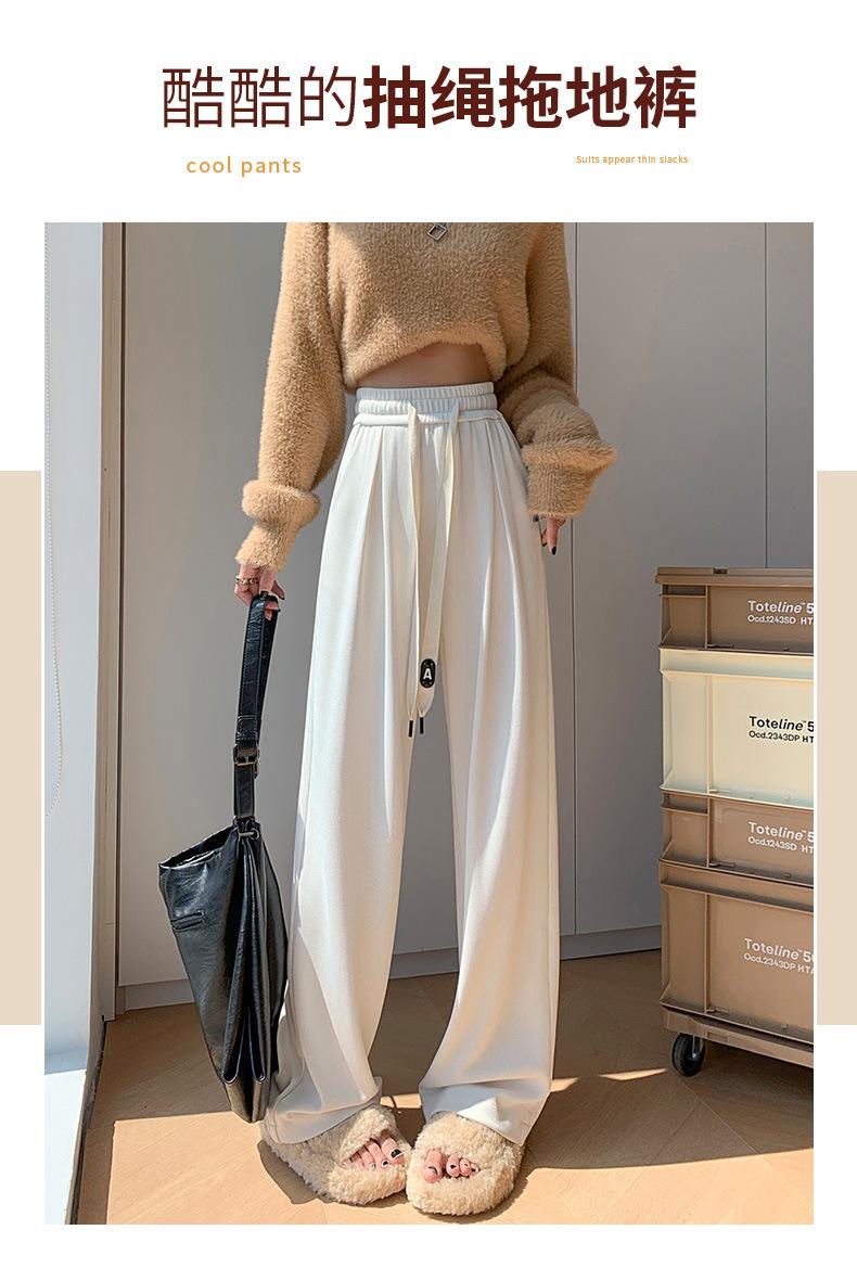 Pantalones deportivos de punto de pierna ancha para mujer otoño e invierno cintura alta adelgazantes con caída negros casuales para barrer el suelo pantalones rectos estrechos