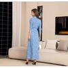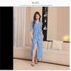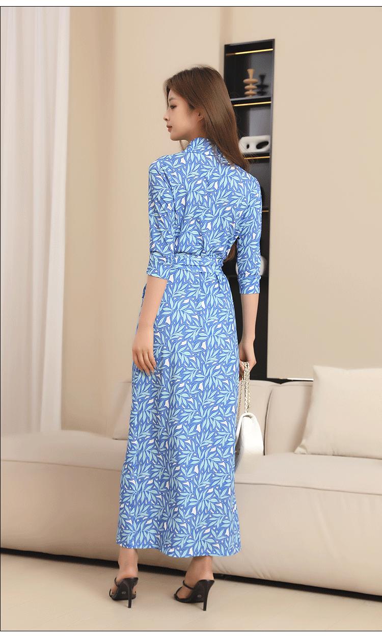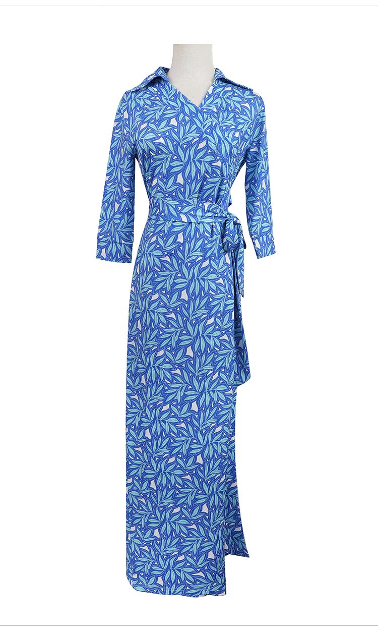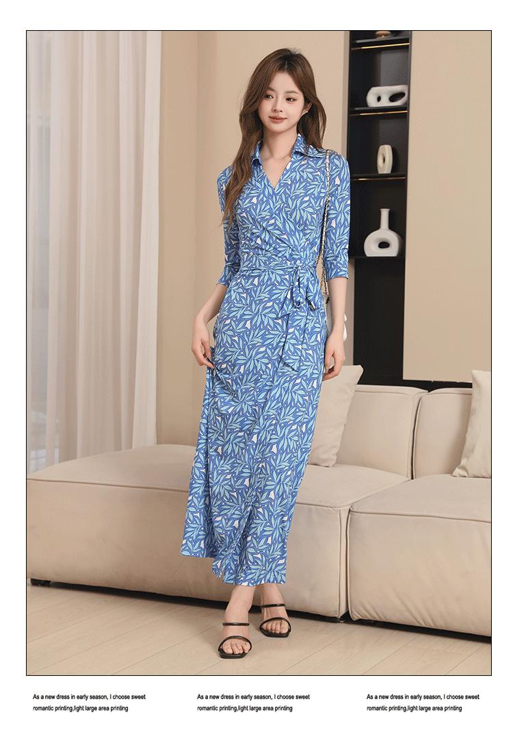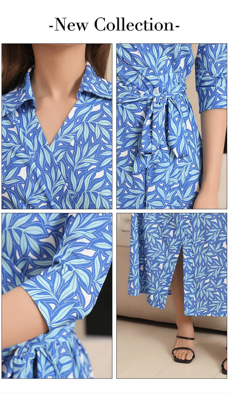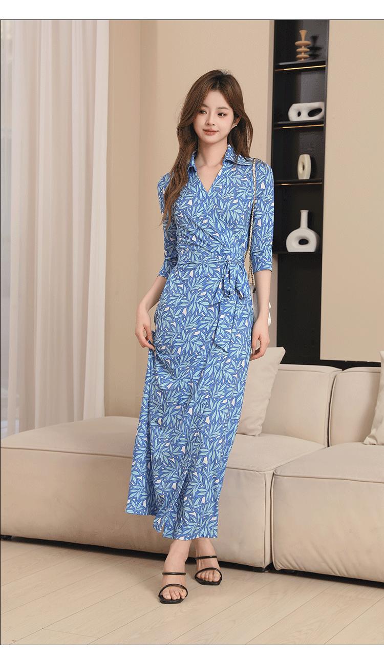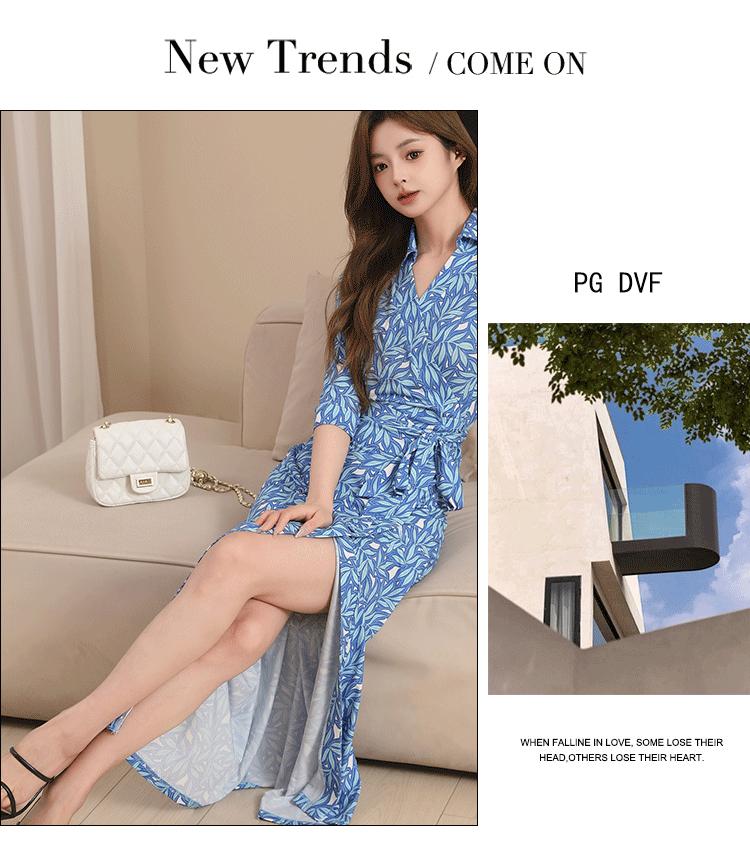 Vestido Floral con Escote Dividido, Corte Slim, y Vestido Largo Estilo Wrap, Pg Dvf2025 Nueva Moda de Verano para Mujer