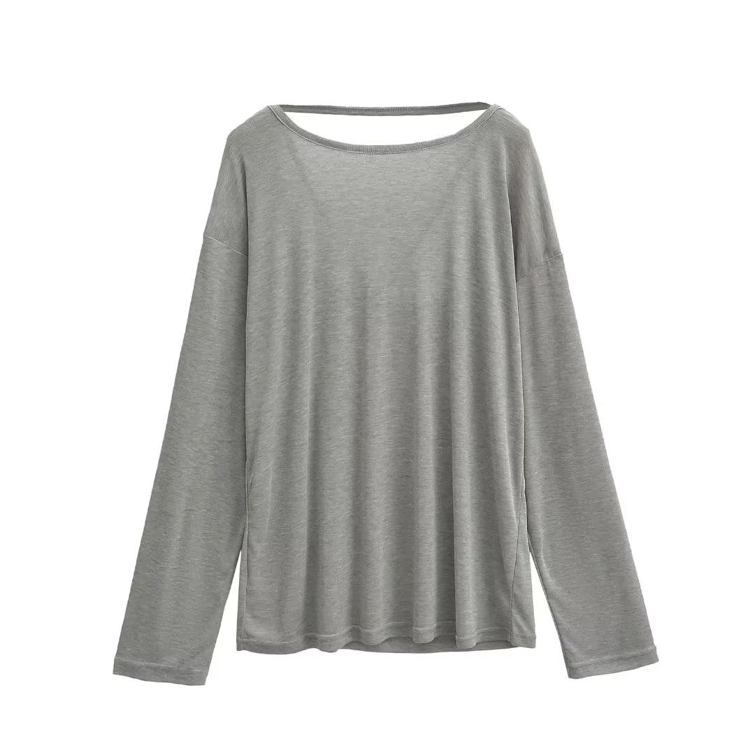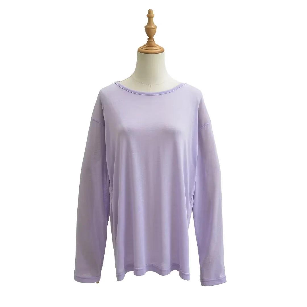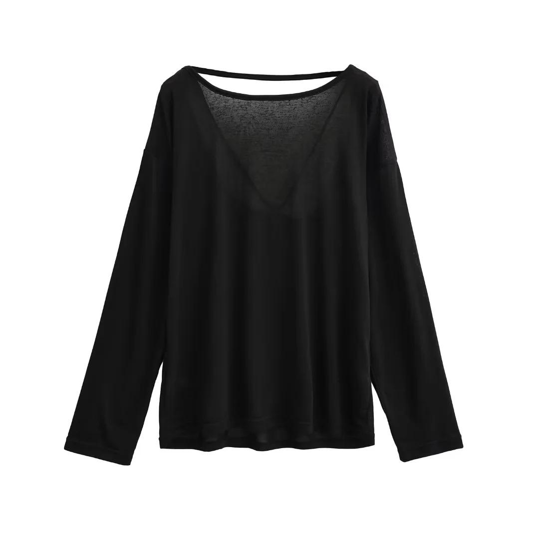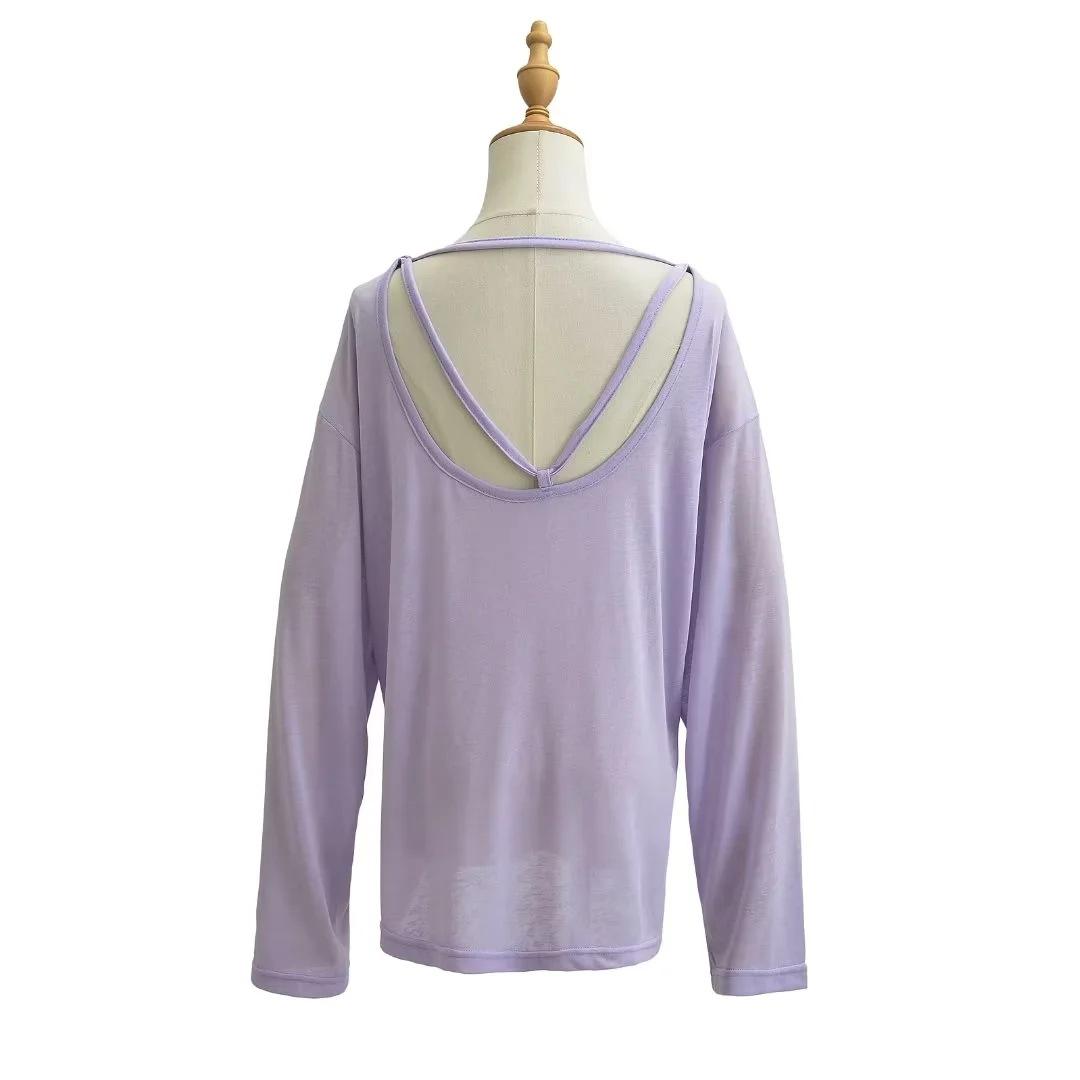 Camiseta sexy de manga larga con protección solar para chicas calientes, para mujer, grande, fina, sin espalda, cuello redondo, color sólido, combina con todo, transpirable, fresca.
