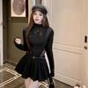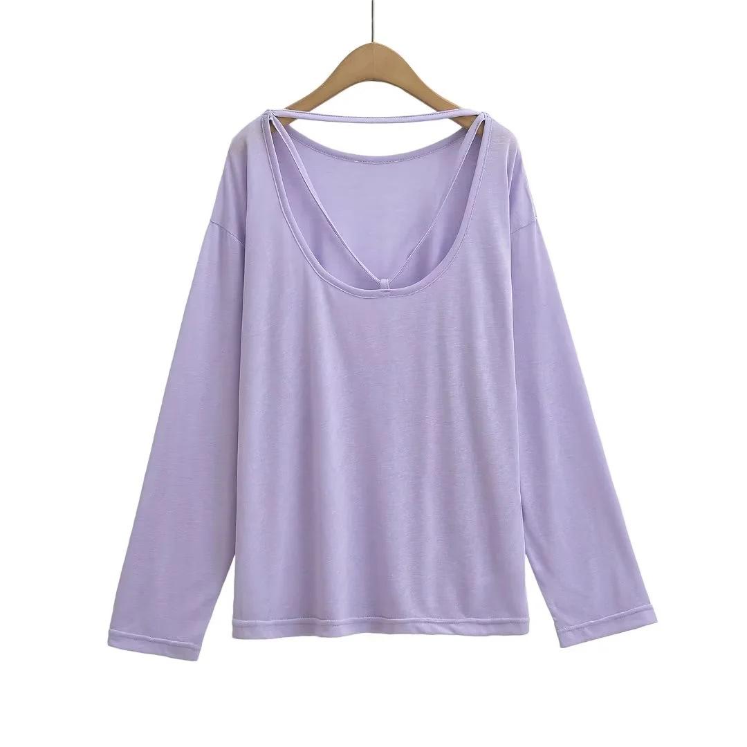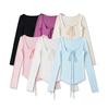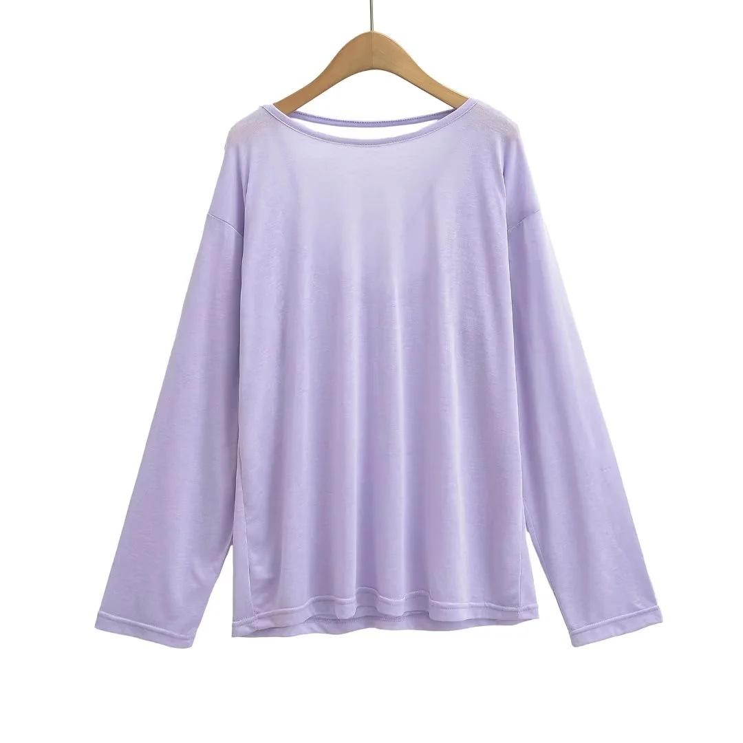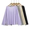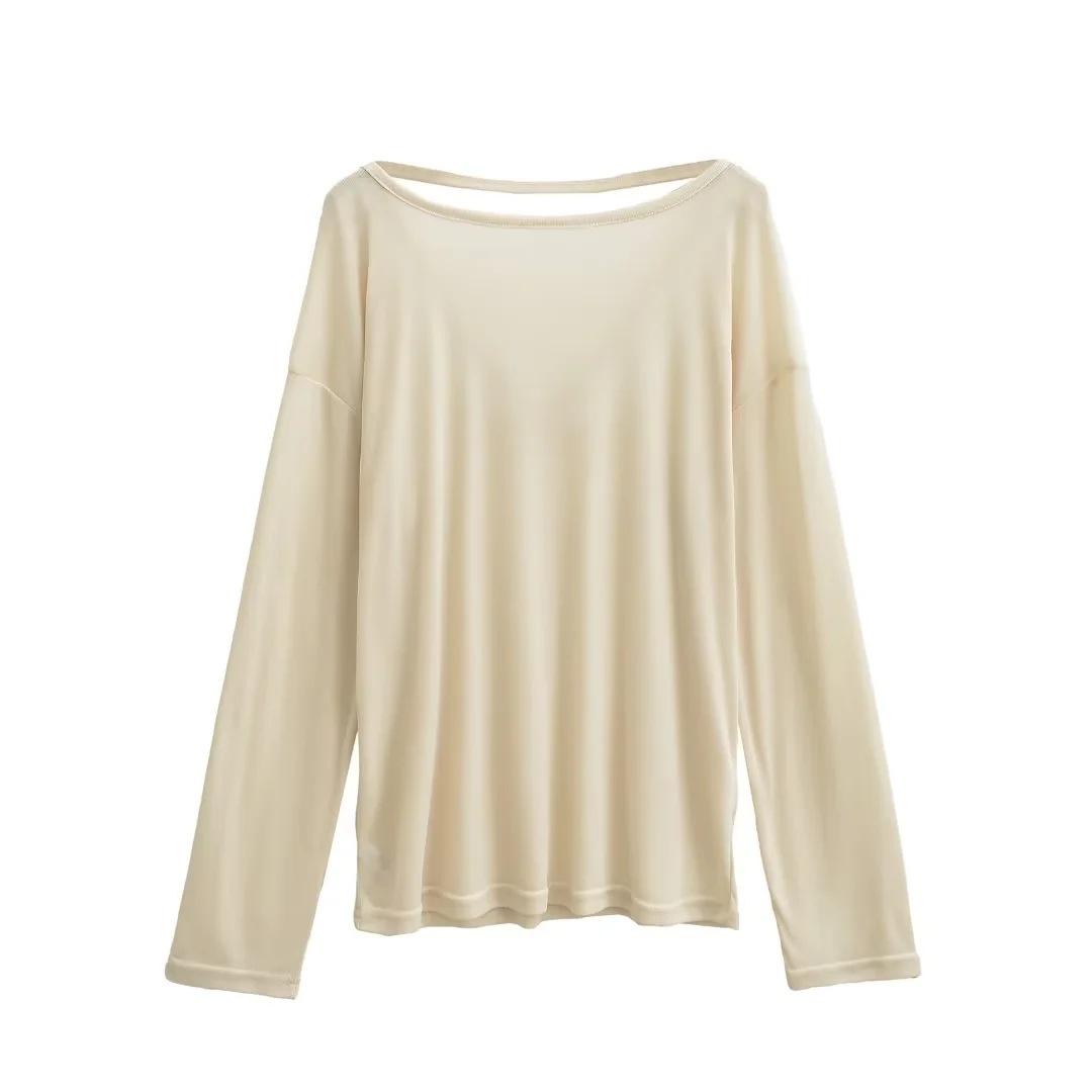 Camiseta sexy de manga larga con protección solar para chicas calientes, para mujer, grande, fina, sin espalda, cuello redondo, color sólido, combina con todo, transpirable, fresca.