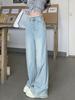Pantalones casuales holgados y combinables de verano 2024, de corte ajustado, de cintura alta y pierna ancha para mujer.