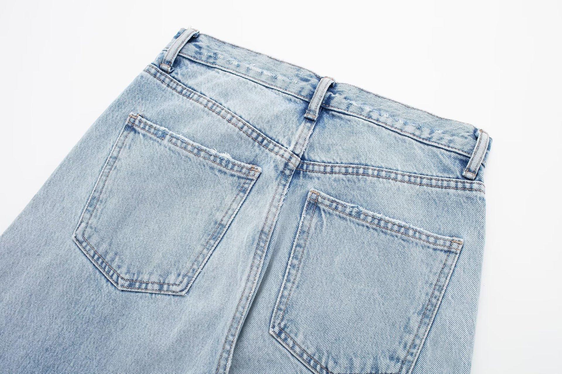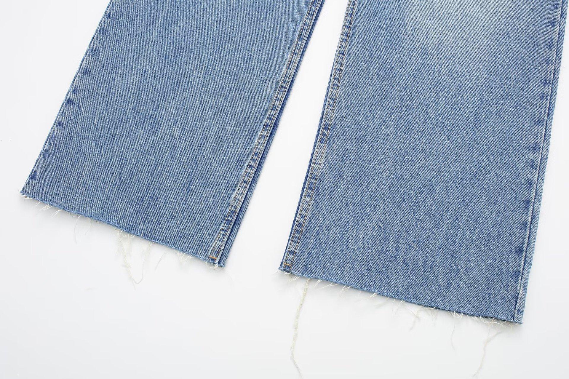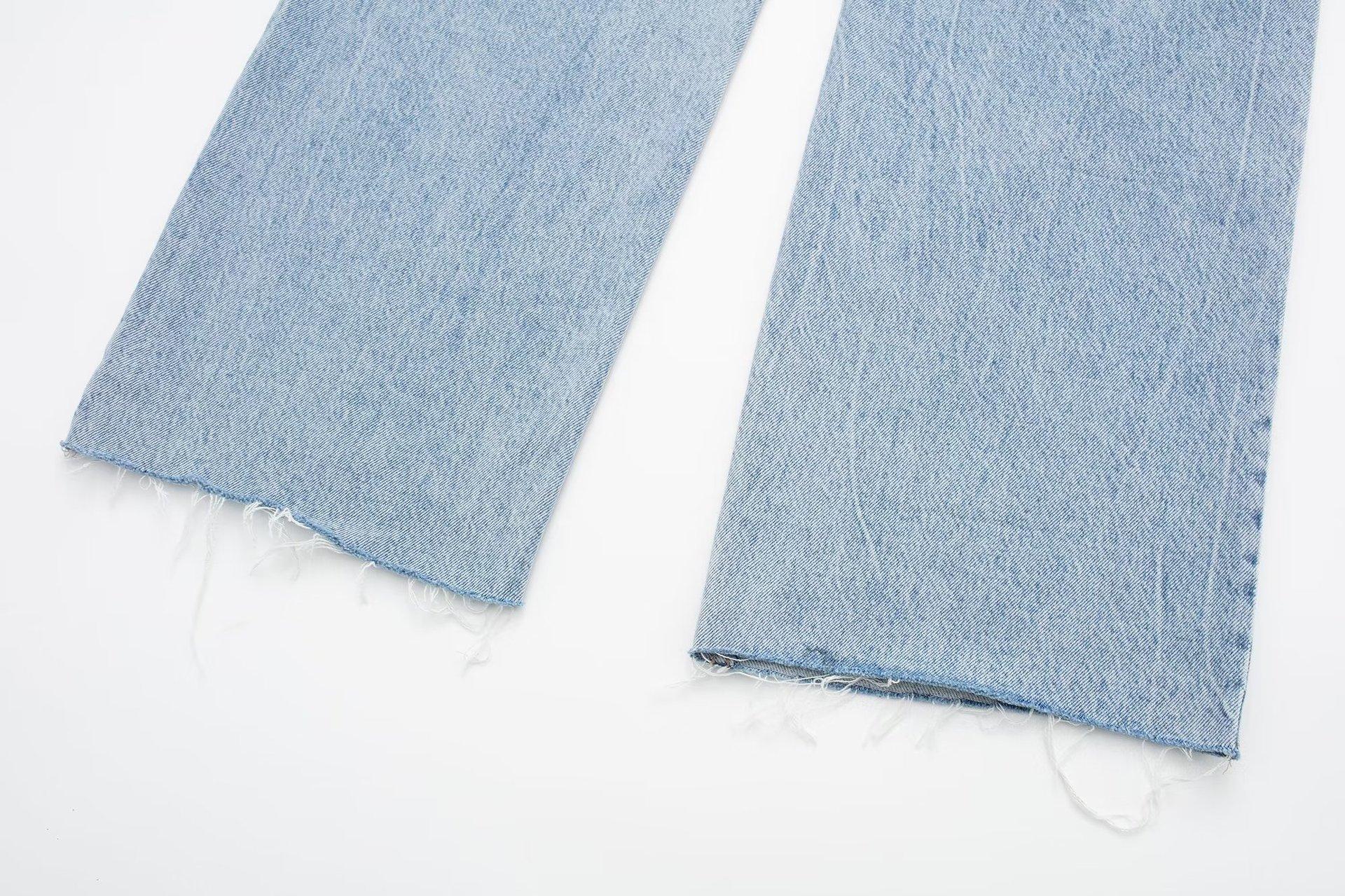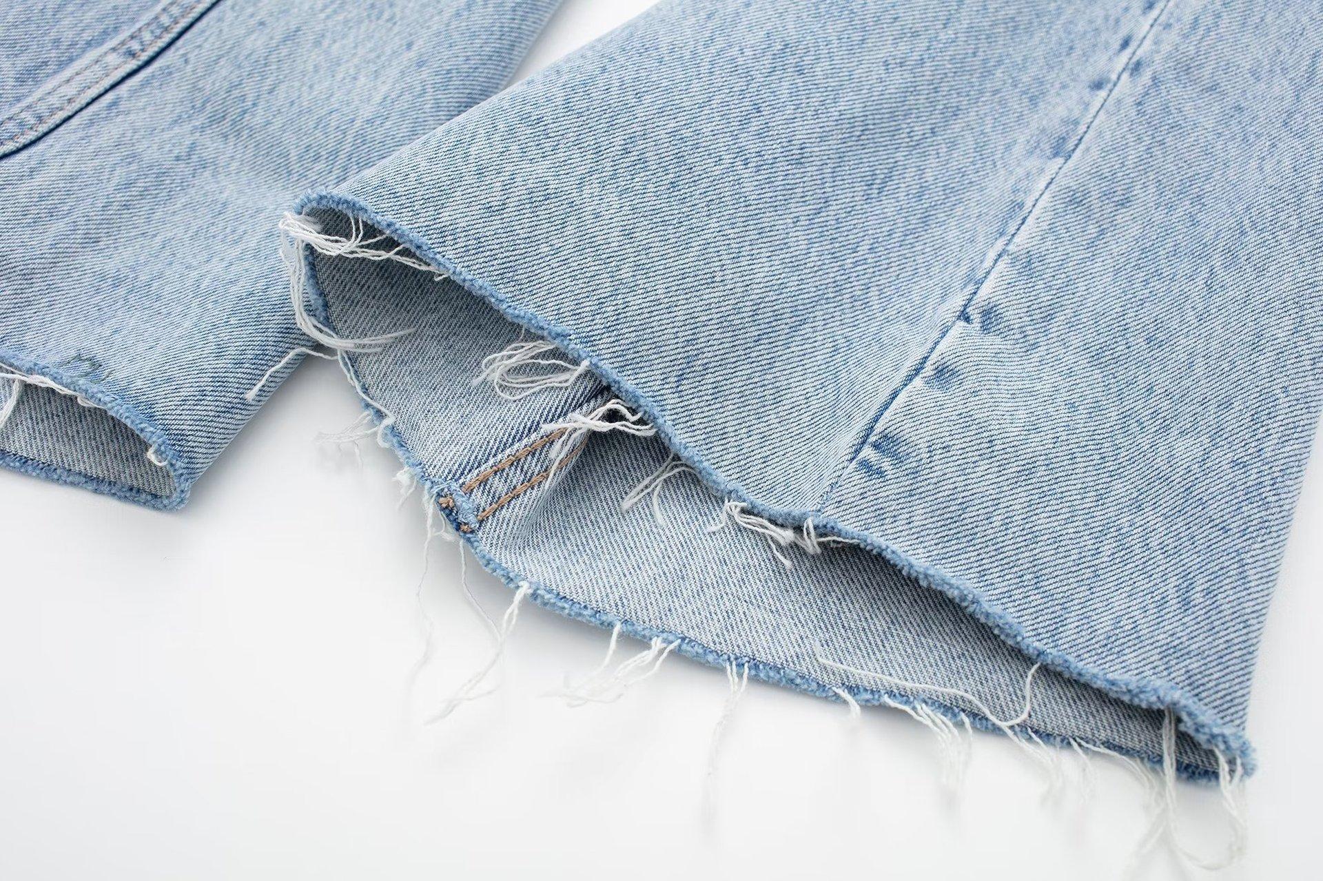 Ropa de mujer de estilo europeo y americano, novedad de 2023, pantalones vaqueros ajustados de cintura alta y pierna ancha con decoración rasgada y temperamento de chica sexy