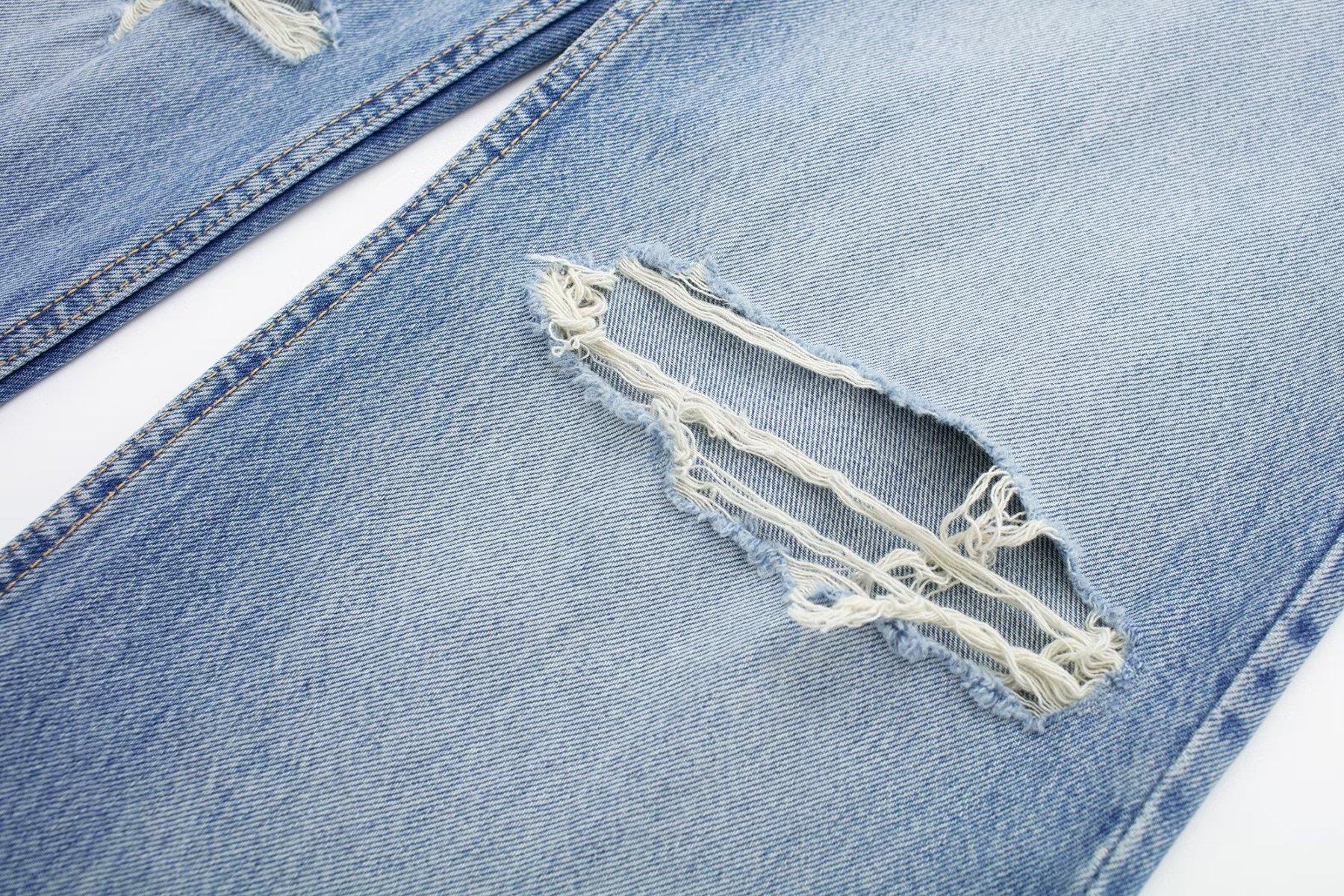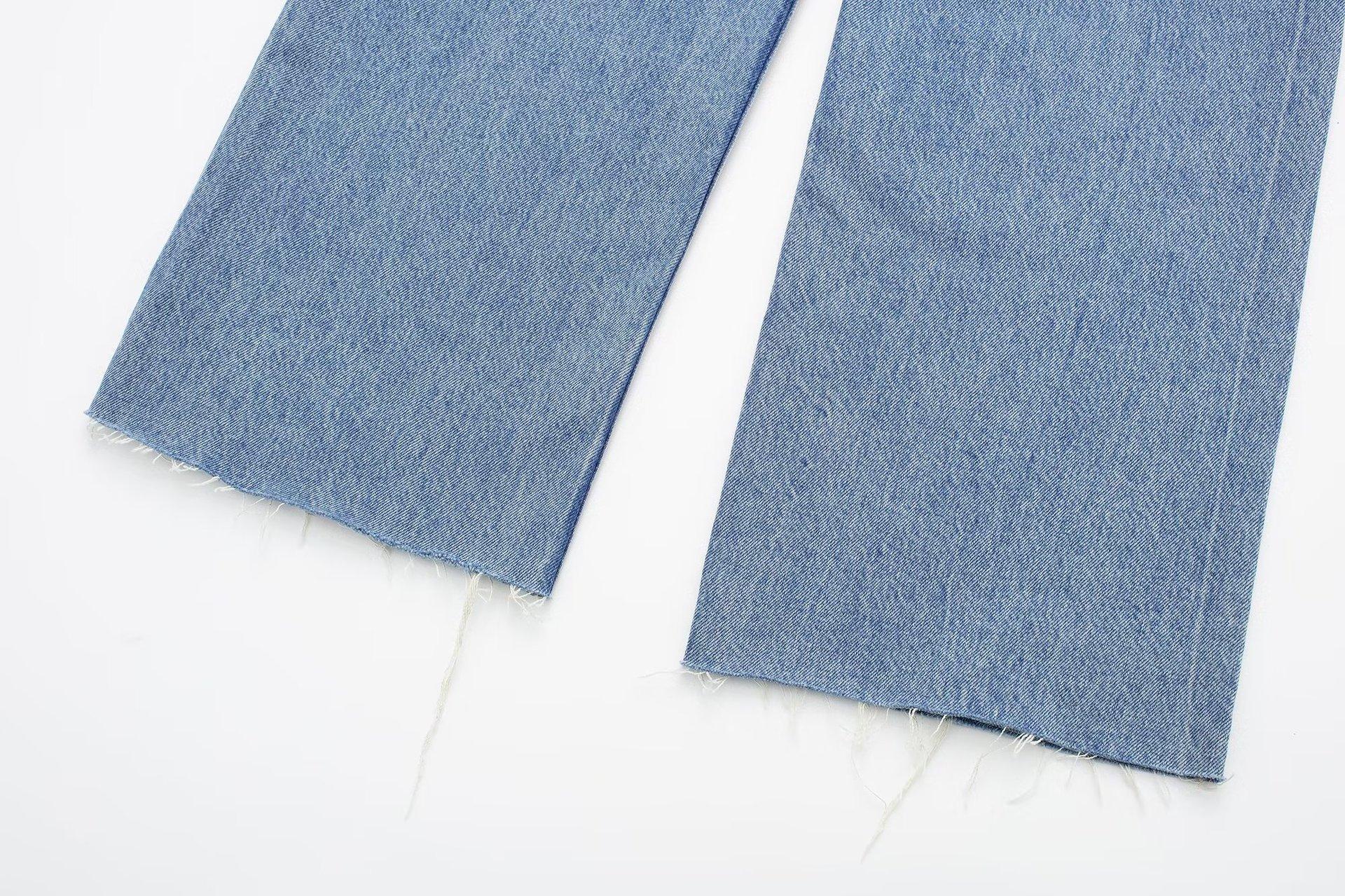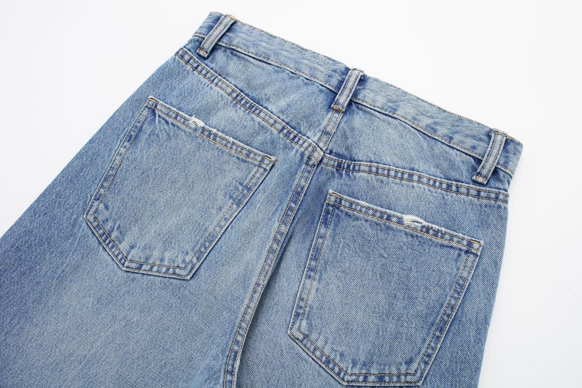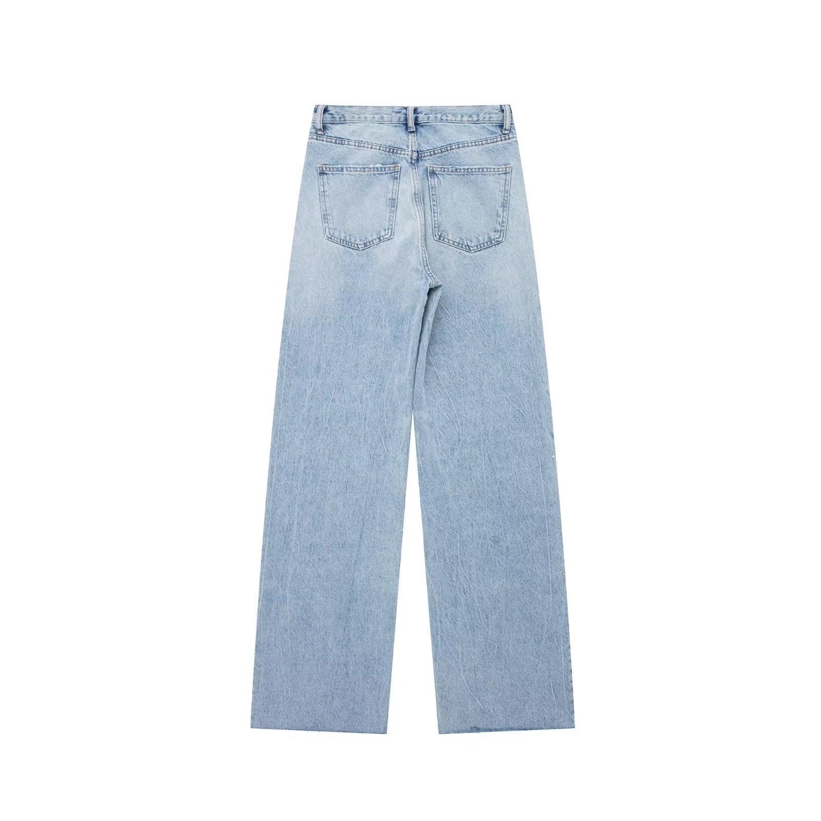 Ropa de mujer de estilo europeo y americano, novedad de 2023, pantalones vaqueros ajustados de cintura alta y pierna ancha con decoración rasgada y temperamento de chica sexy