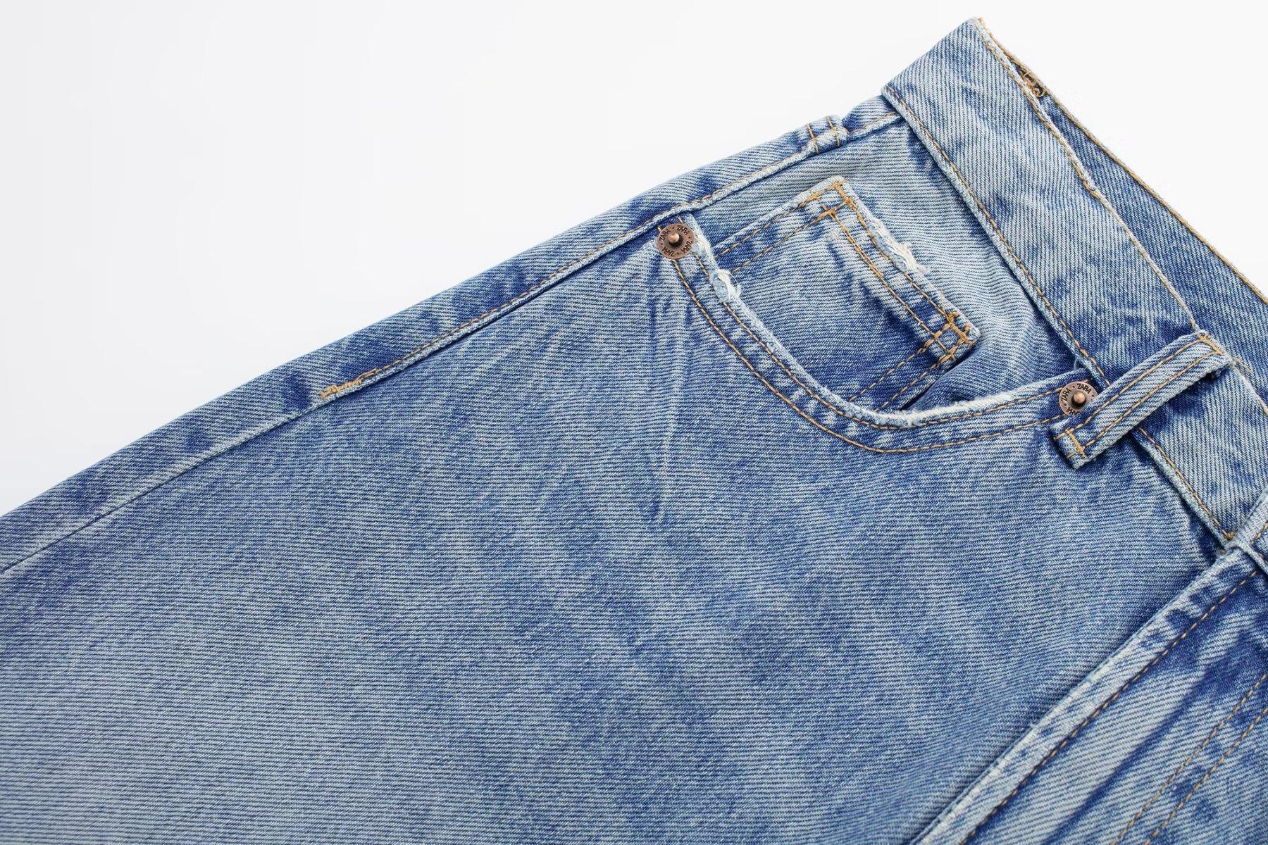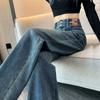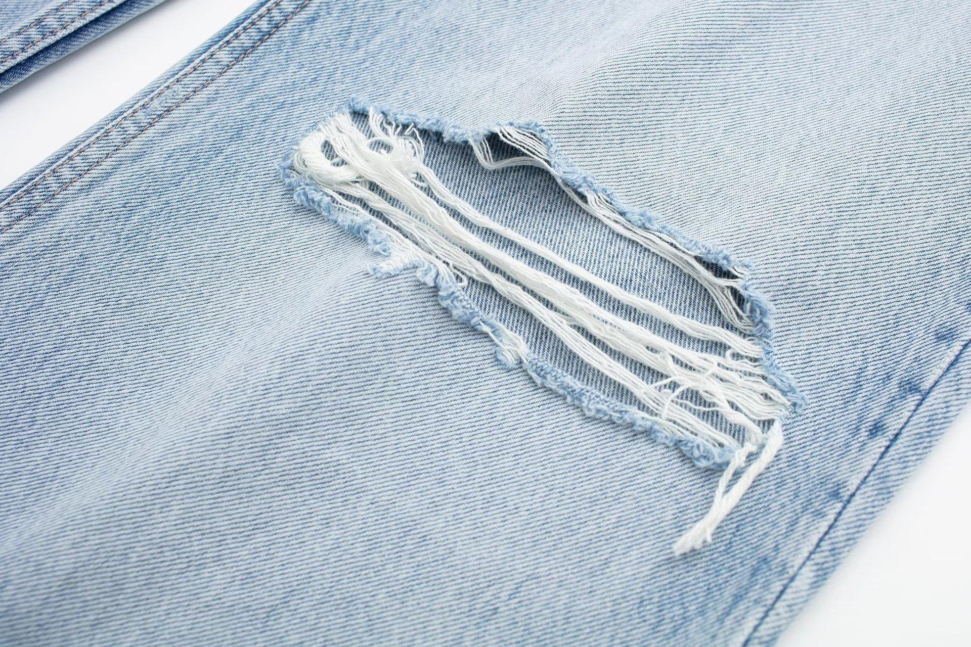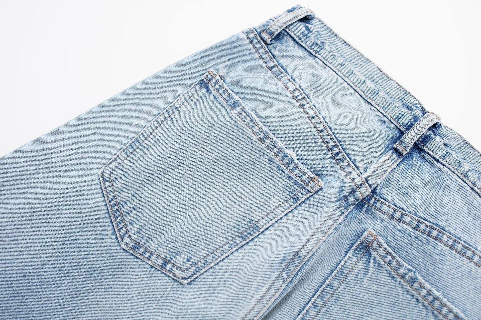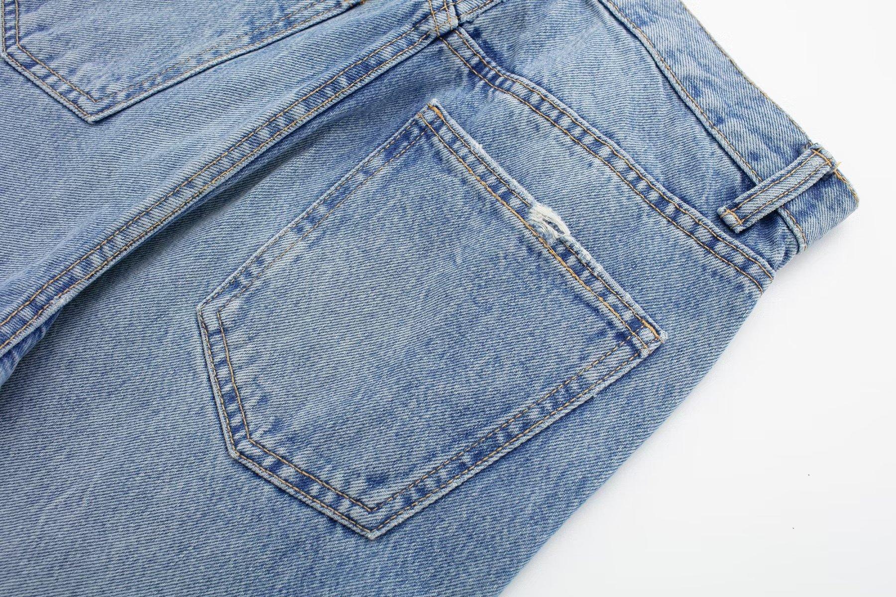 Ropa de mujer de estilo europeo y americano, novedad de 2023, pantalones vaqueros ajustados de cintura alta y pierna ancha con decoración rasgada y temperamento de chica sexy