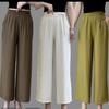 Pantalones casuales holgados, rectos, con cintura elástica media, para mujer, de color sólido, ajustados, de otoño, nuevos pantalones de pierna ancha