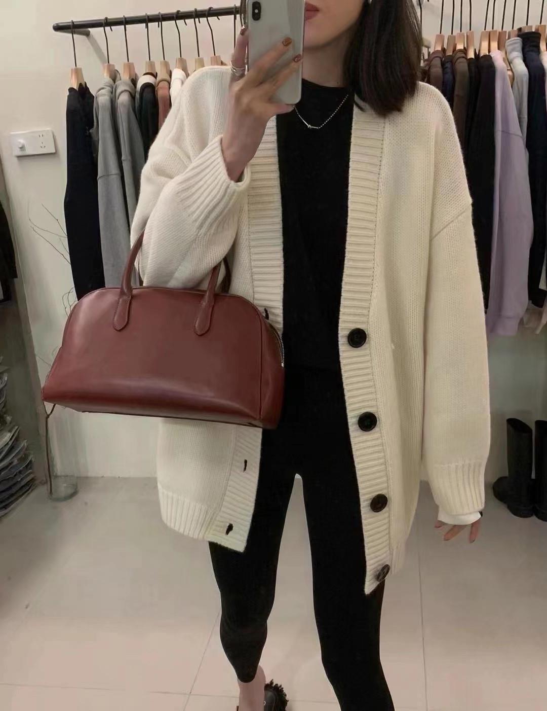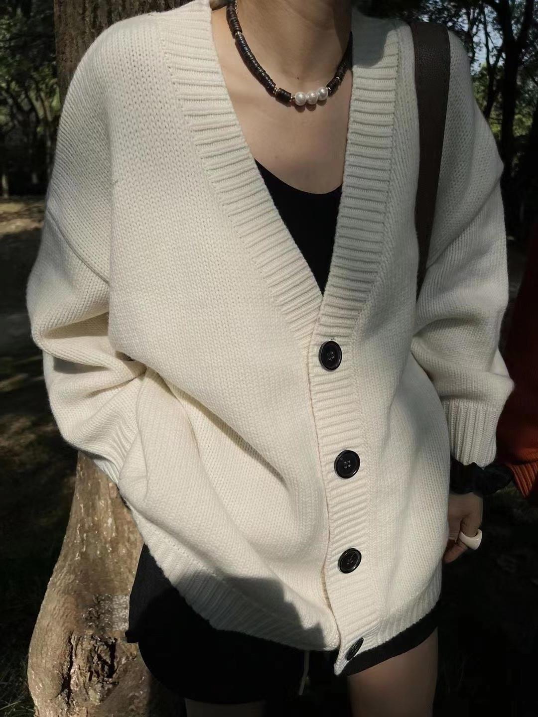 Cárdigan de Lana para Mujer Largo Medio Otoño e Invierno Nuevo Cachemira Estilo Coreano Nicho Suelto Talla Grande Chaqueta Suéter para Personas Pequeñas