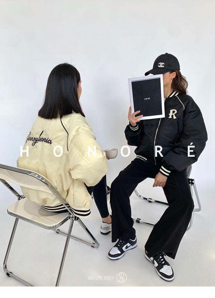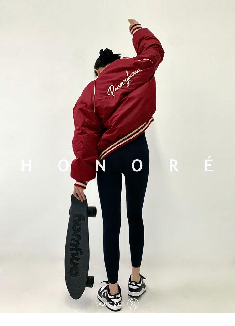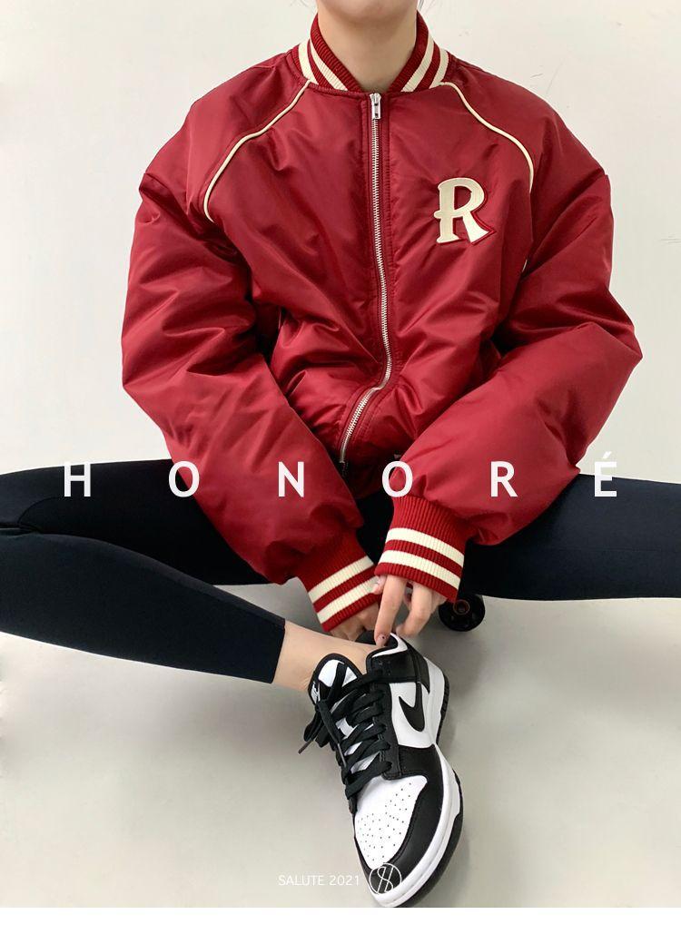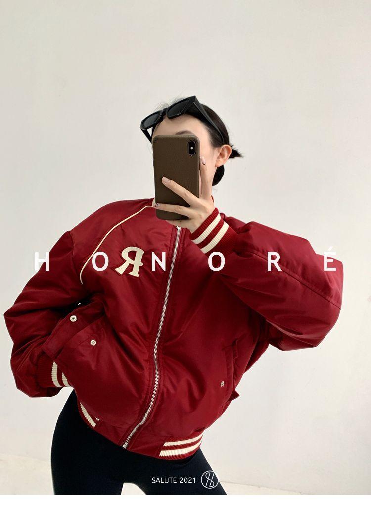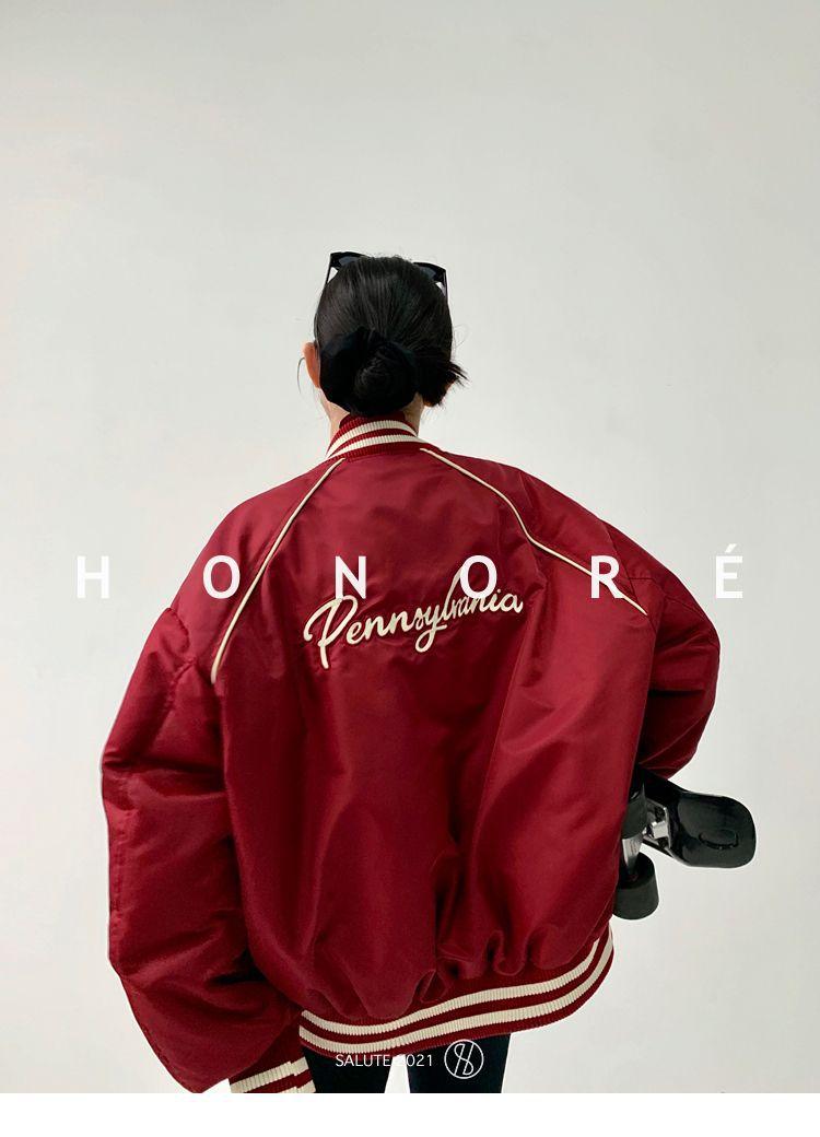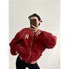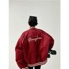 Abrigo de Algodón Rojo Bordado Retro Americano para Mujer 2025 Moda Elegante Holgado y Versátil Chaqueta Uniforme de Béisbol de Calle Alta Trendy