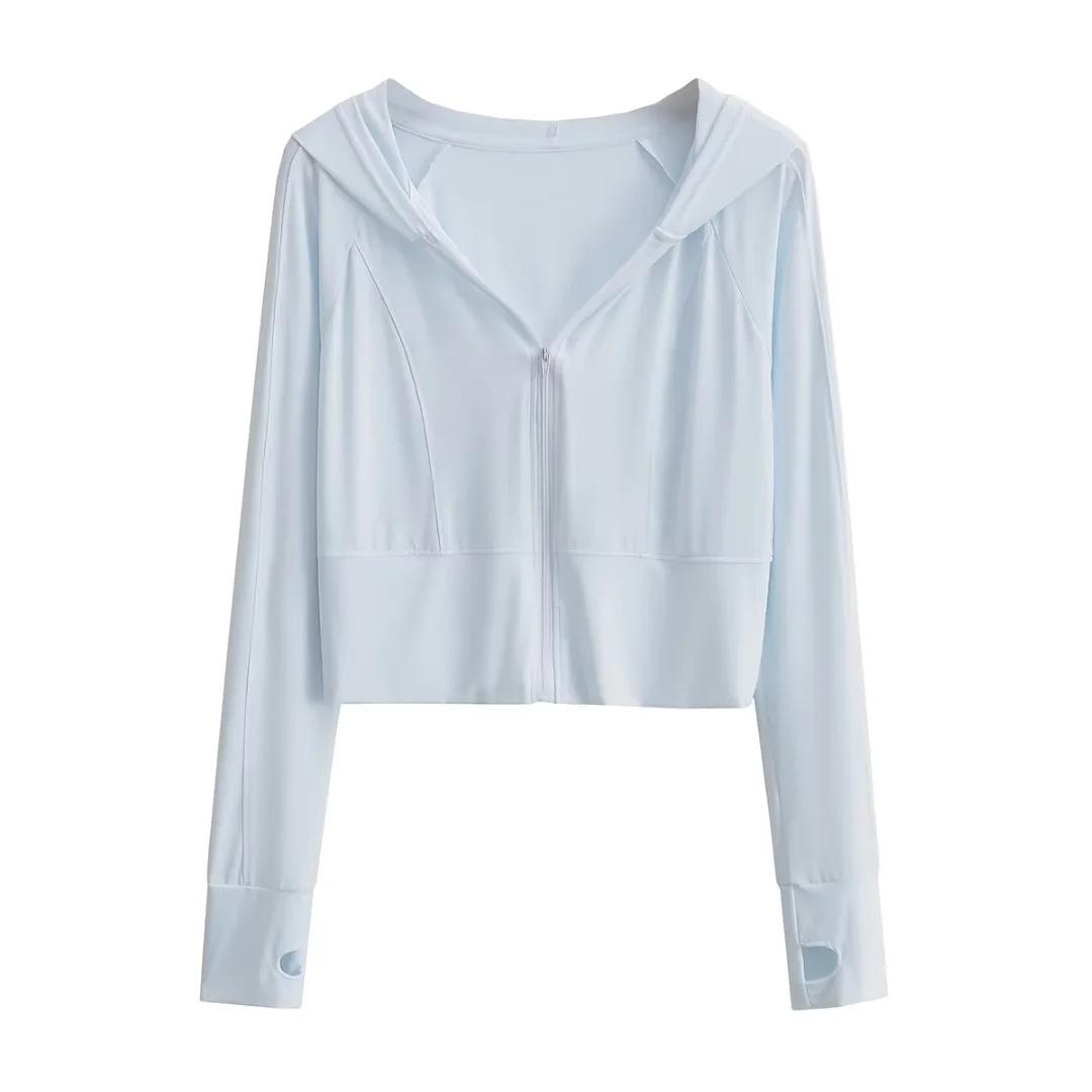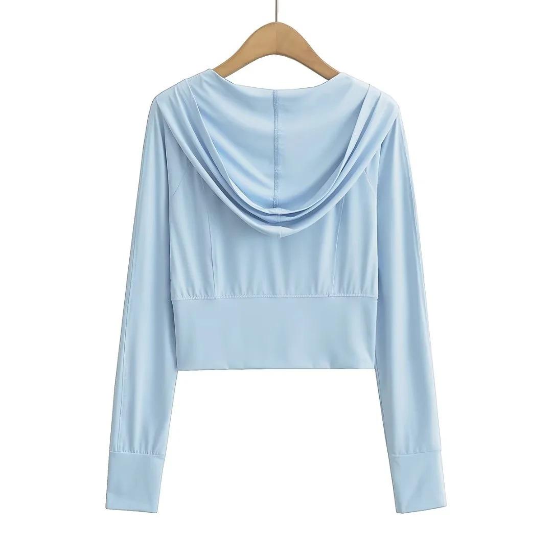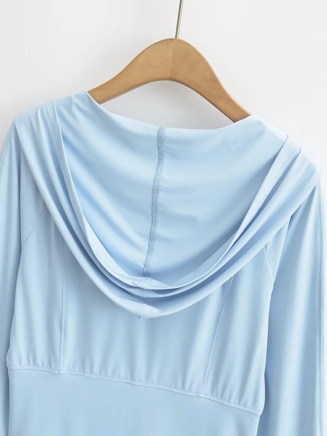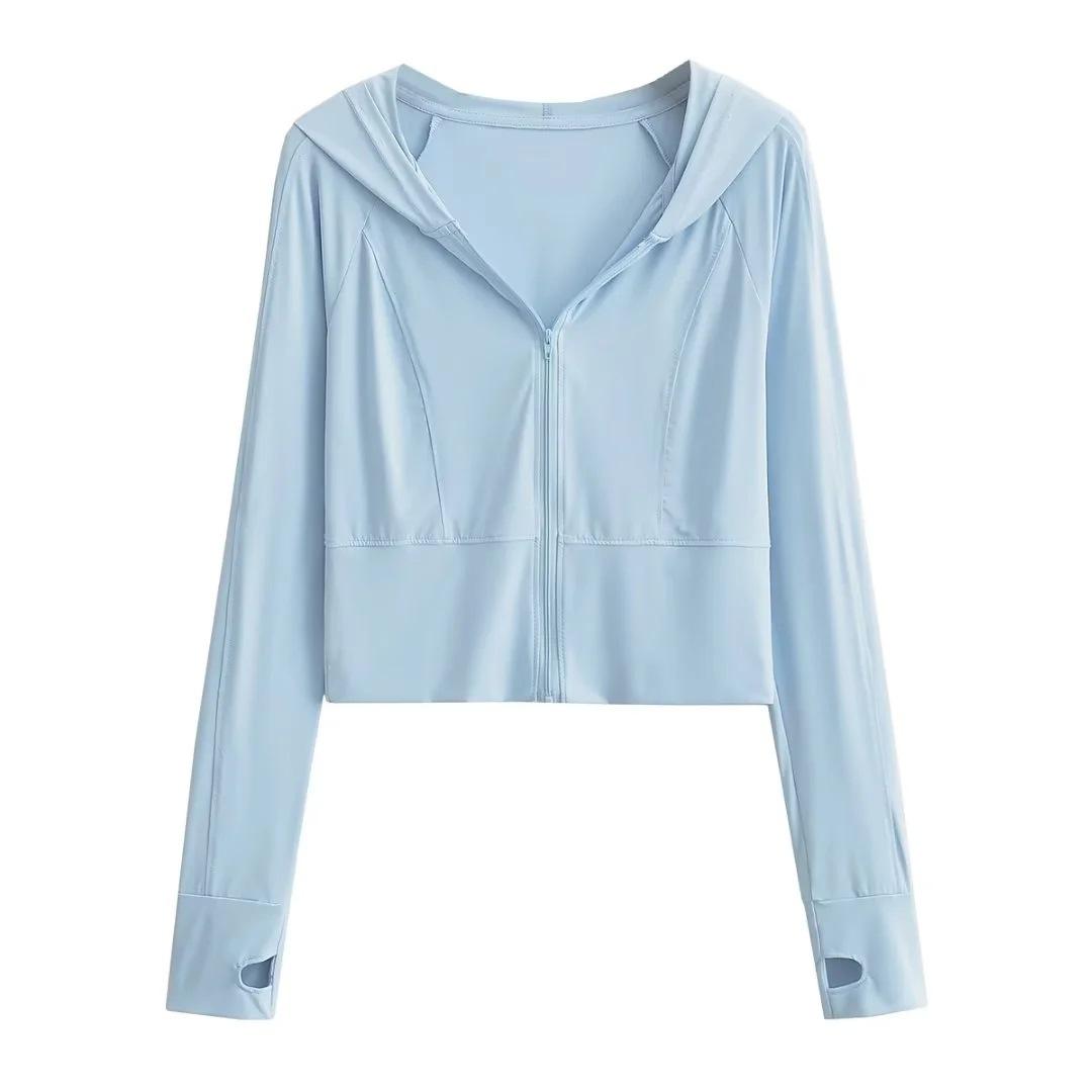 Chaqueta tipo cárdigan con capucha y cremallera para mujer, estilo europeo y americano, con protección solar, estilo verano 2023, camisa con aire acondicionado