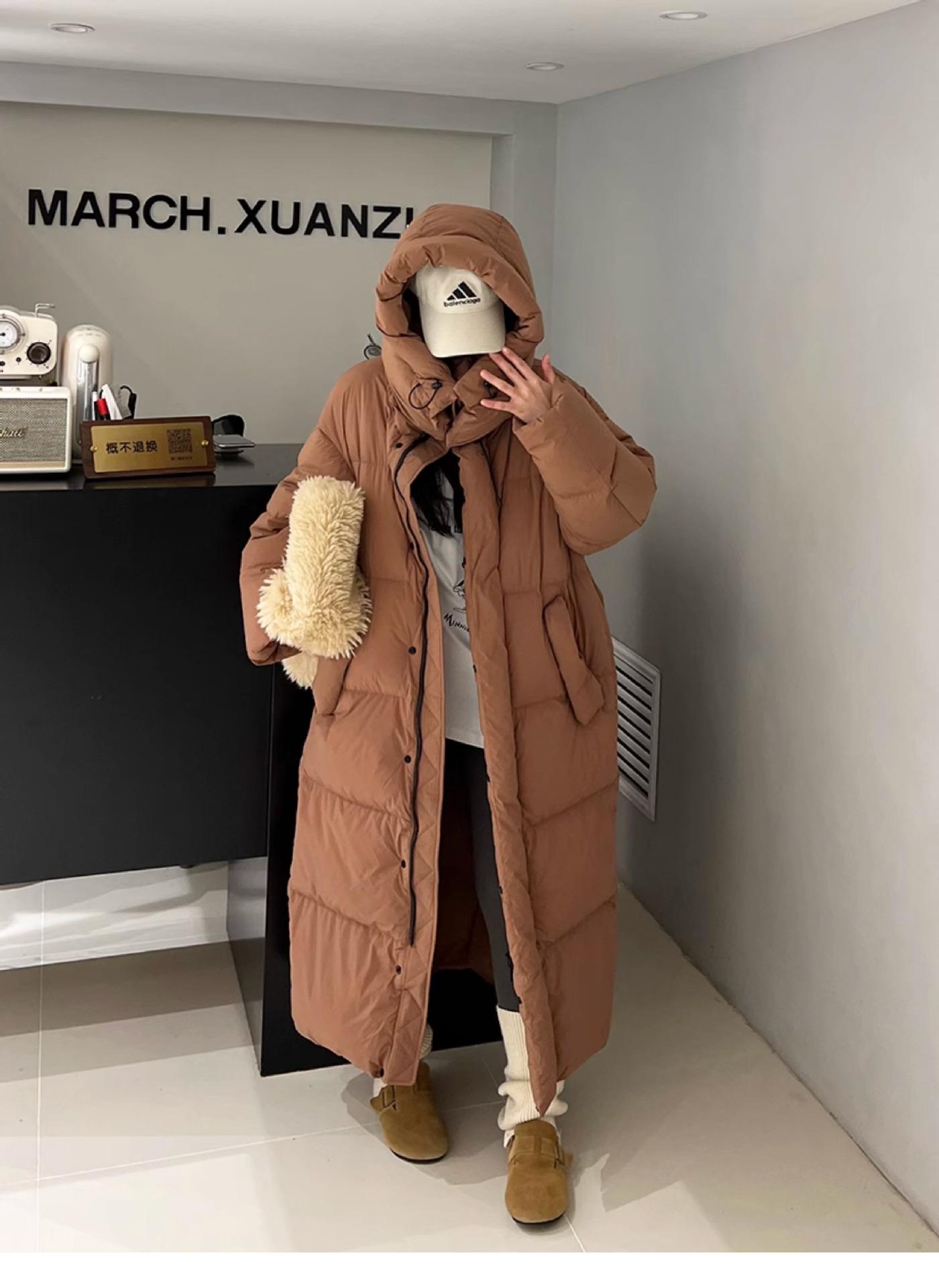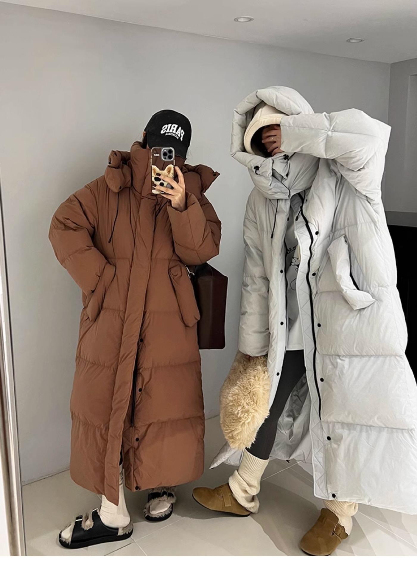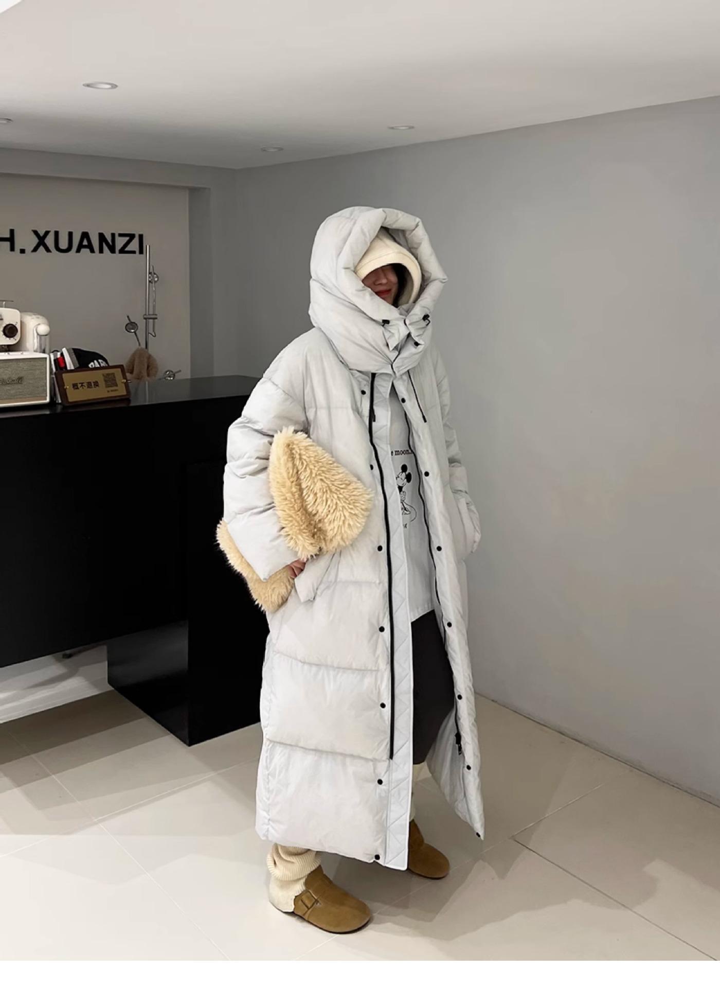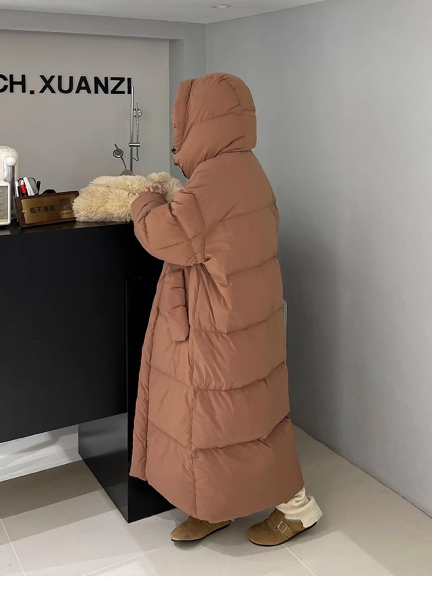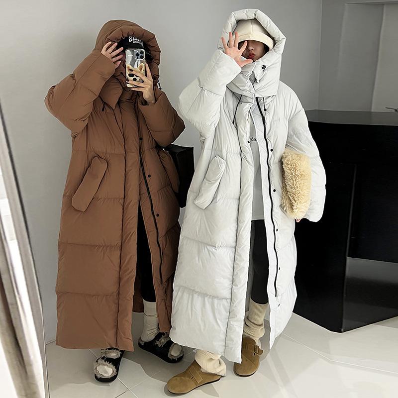Chaqueta Larga Gruesa de Plumas de Moda para Mujer, Abrigo Cálido con Capucha de Invierno de Alta Gama Nueva Versión Coreana, Acolchado Grande, Talla Extra