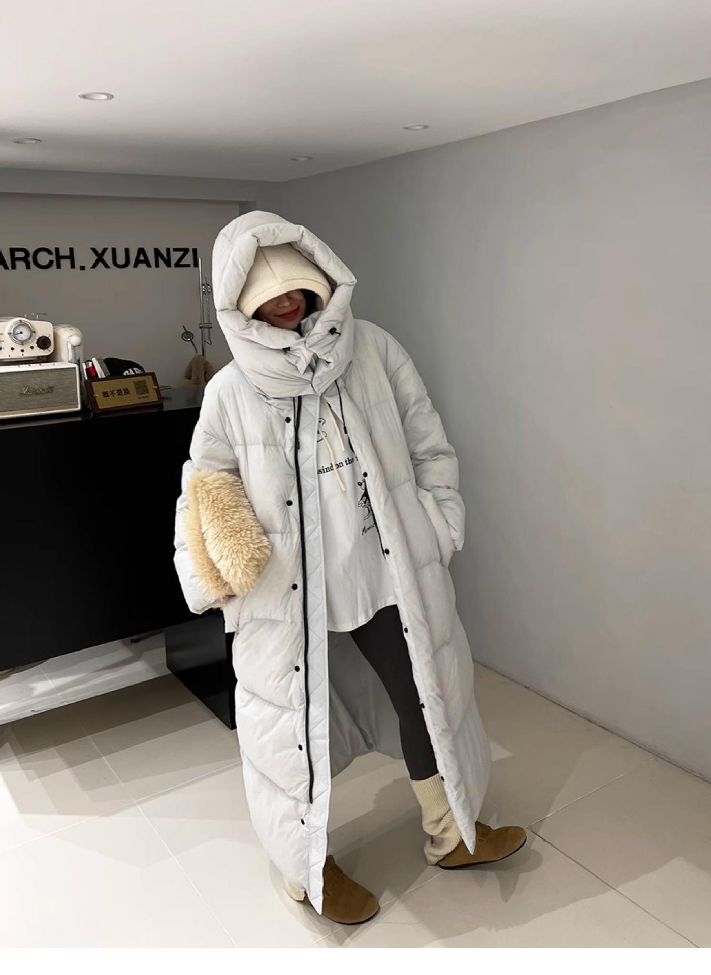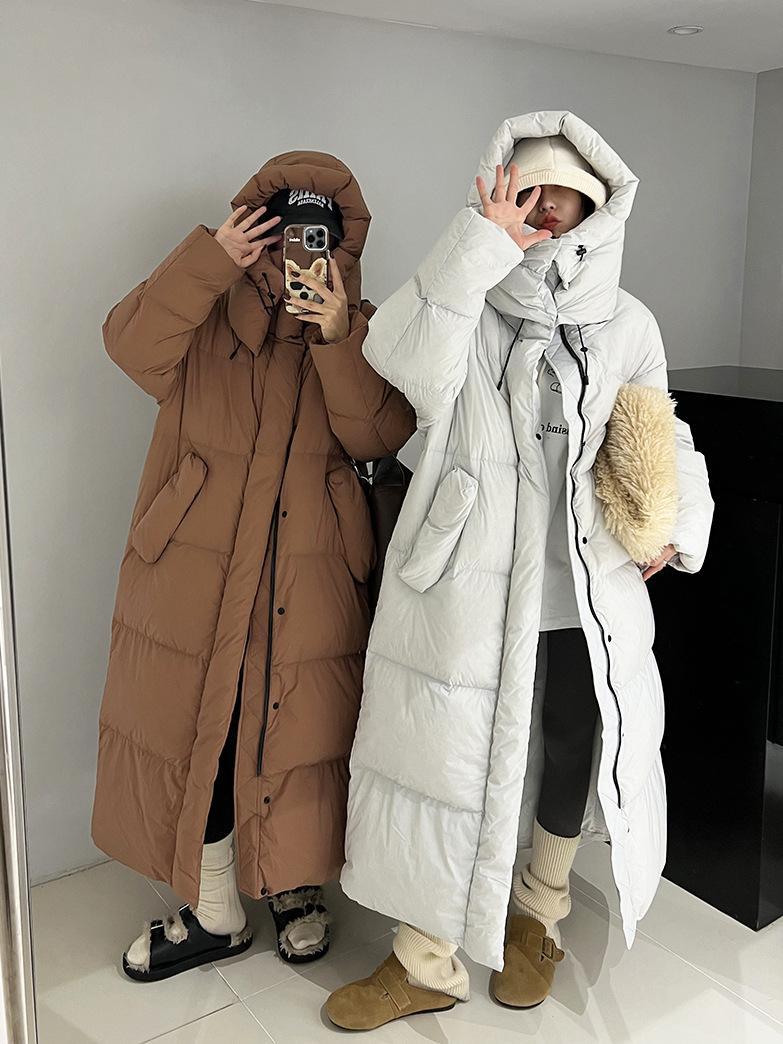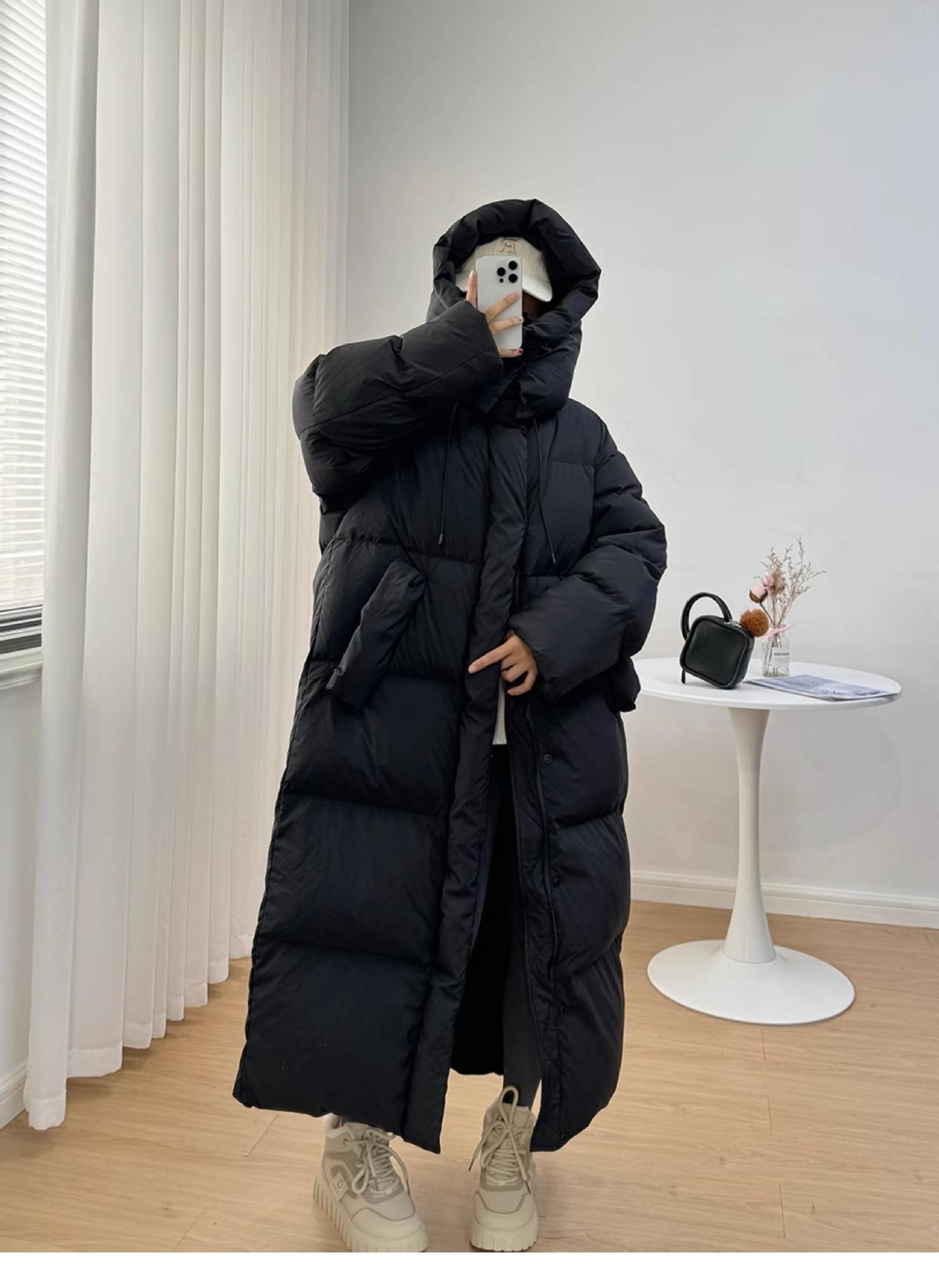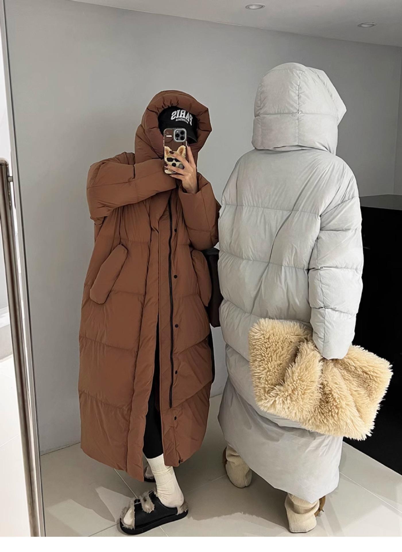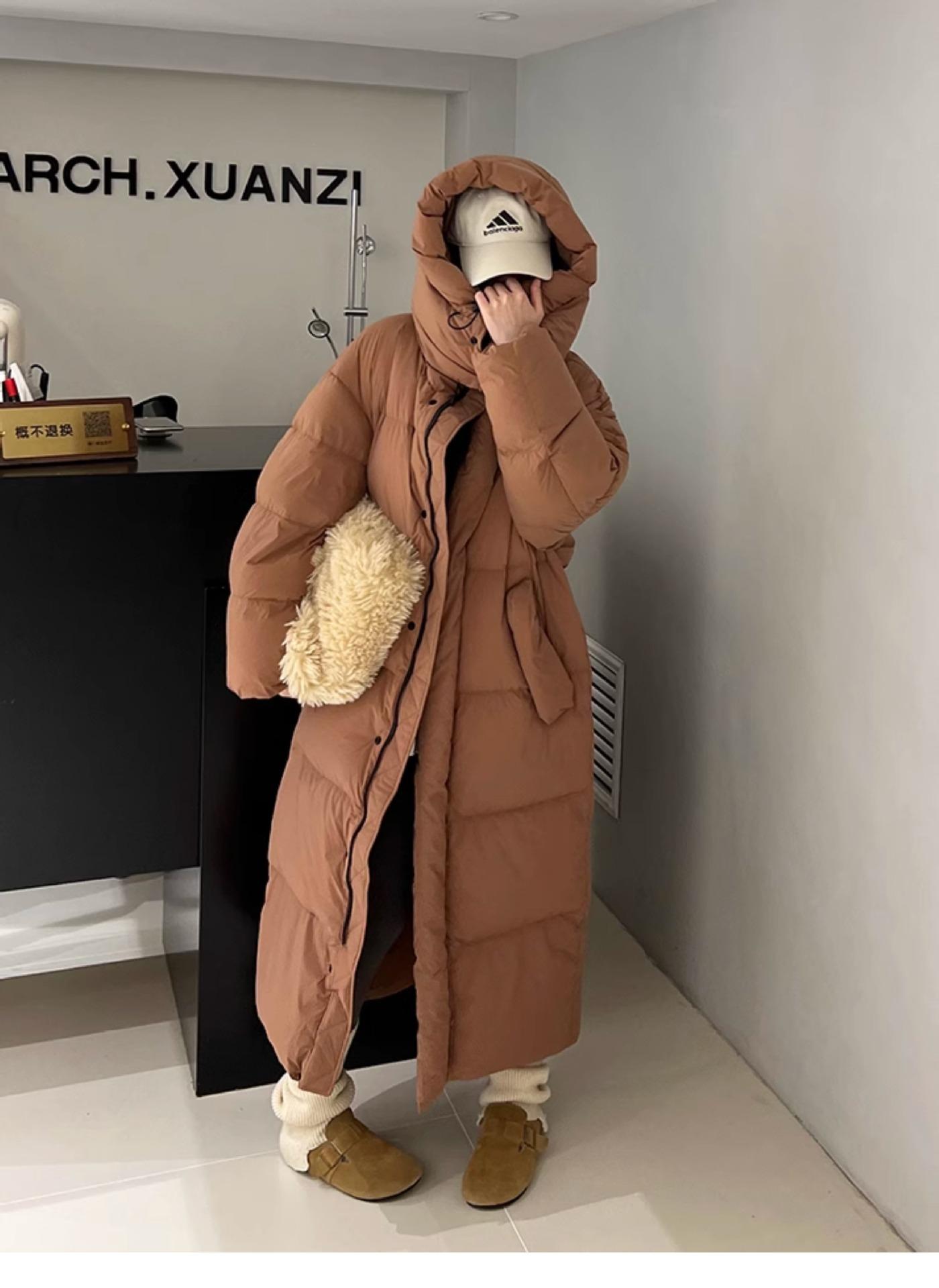 Chaqueta Larga Gruesa de Plumas de Moda para Mujer, Abrigo Cálido con Capucha de Invierno de Alta Gama Nueva Versión Coreana, Acolchado Grande, Talla Extra