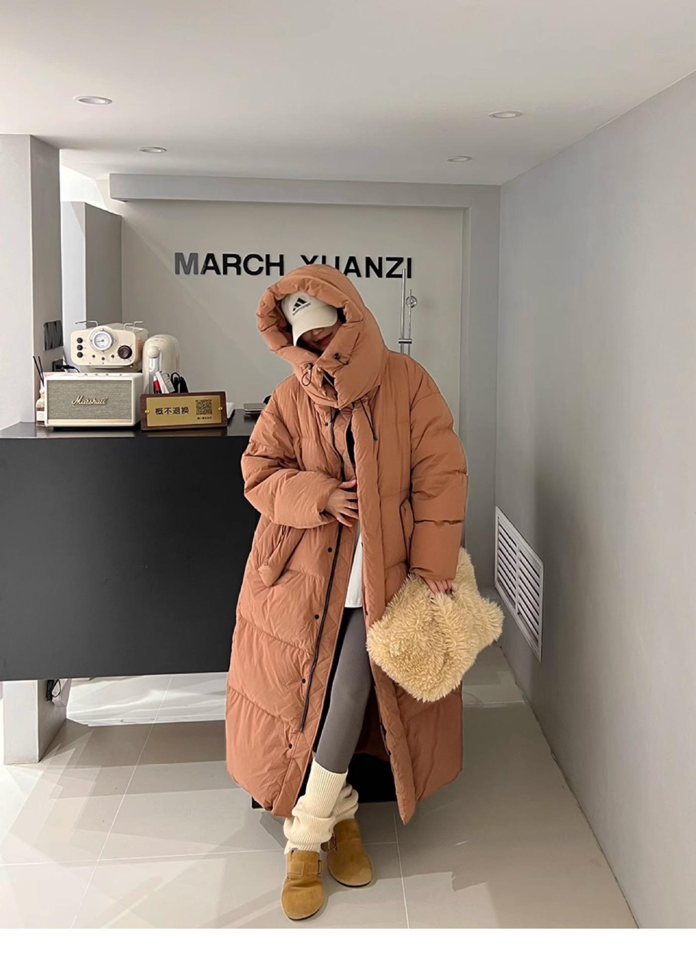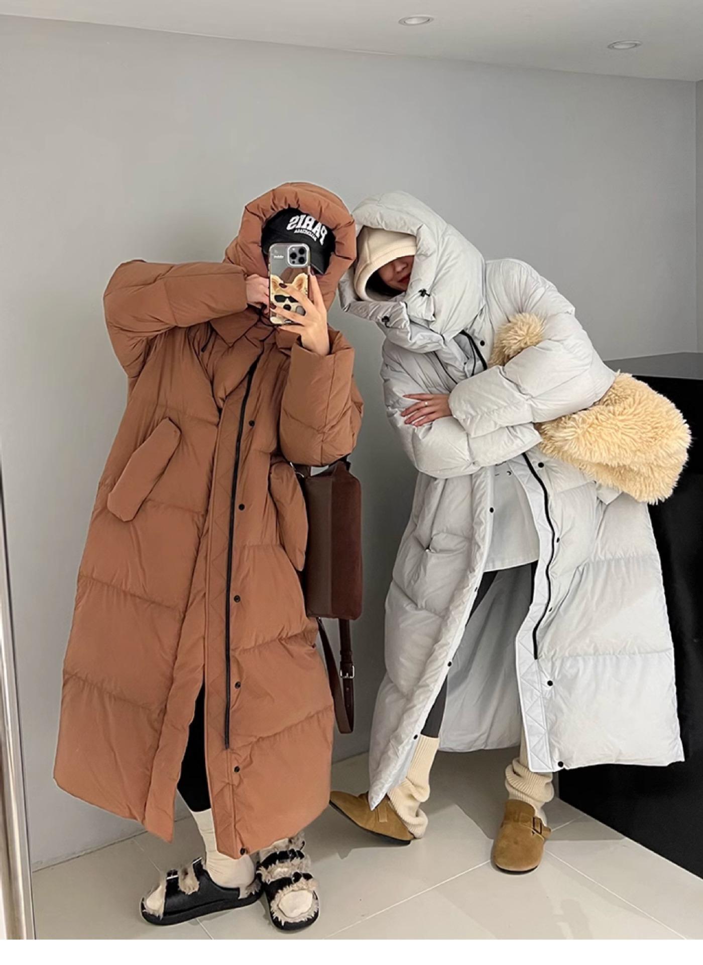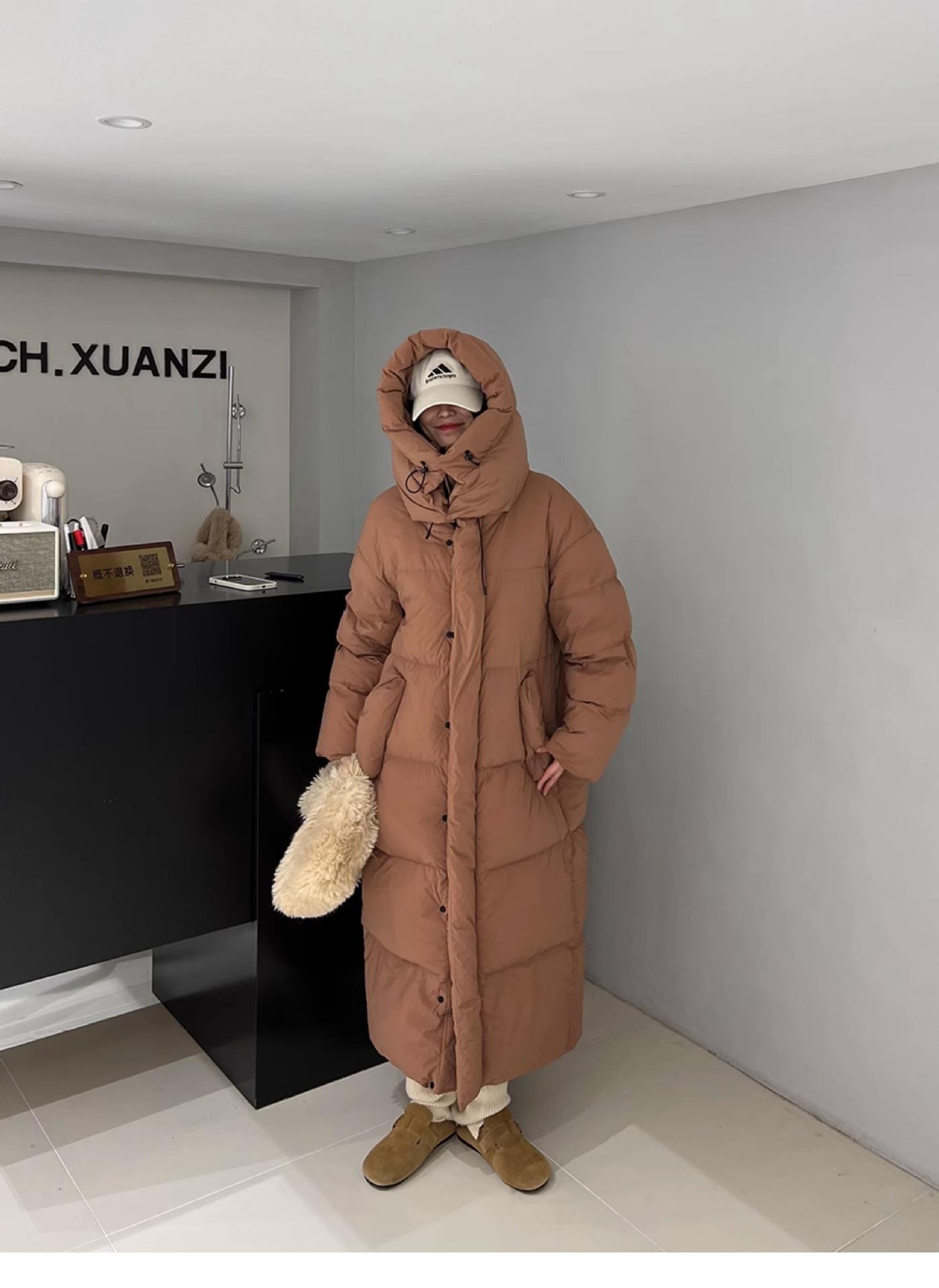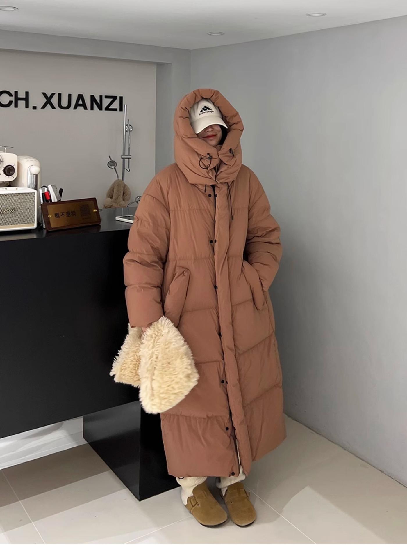 Chaqueta Larga Gruesa de Plumas de Moda para Mujer, Abrigo Cálido con Capucha de Invierno de Alta Gama Nueva Versión Coreana, Acolchado Grande, Talla Extra