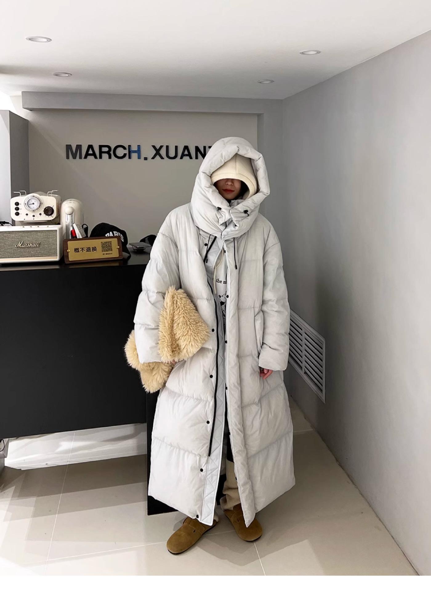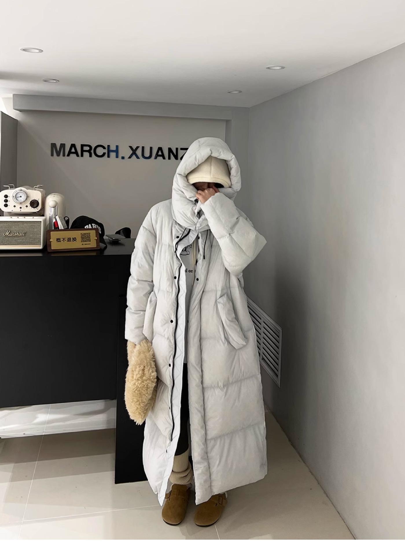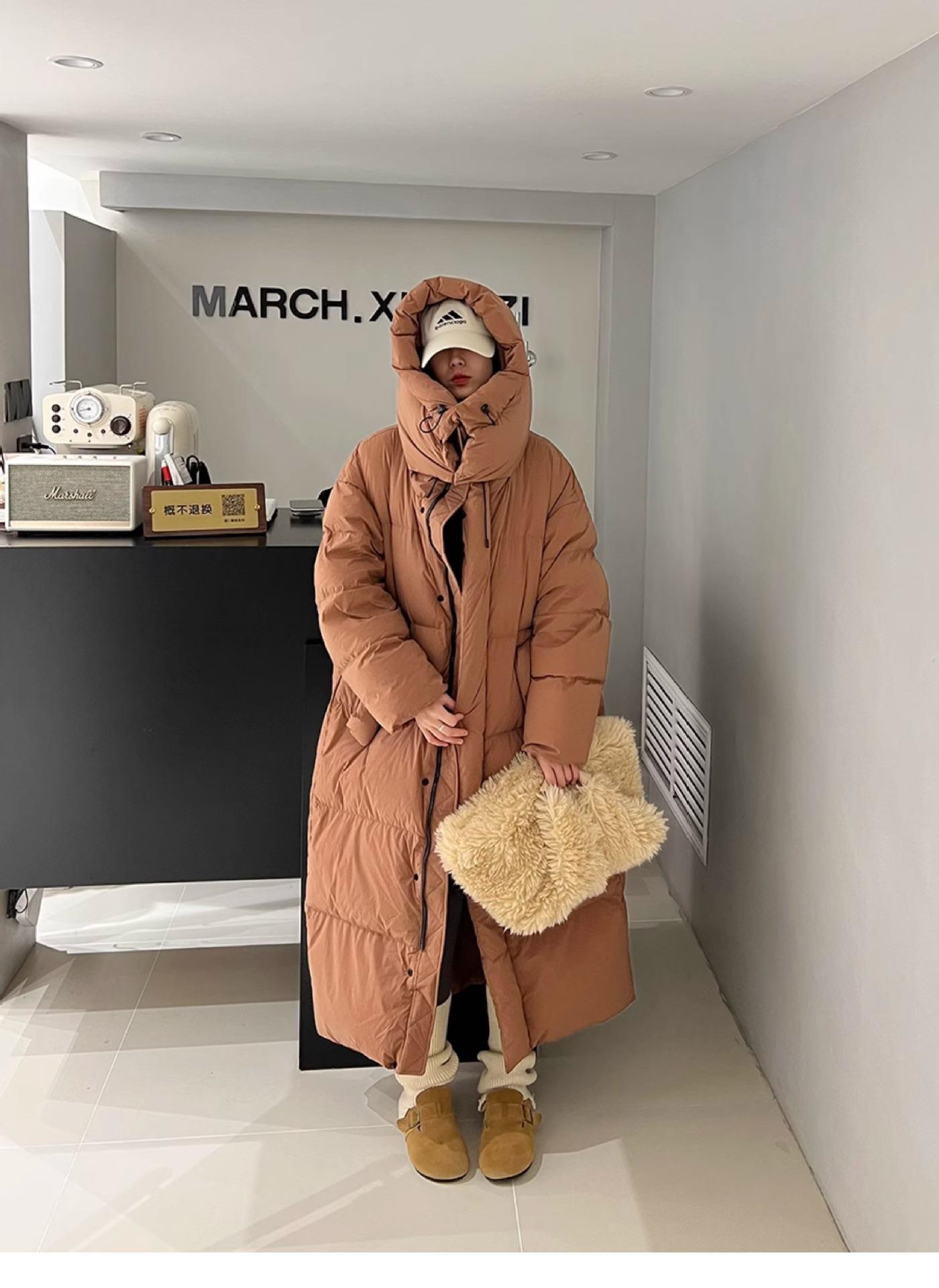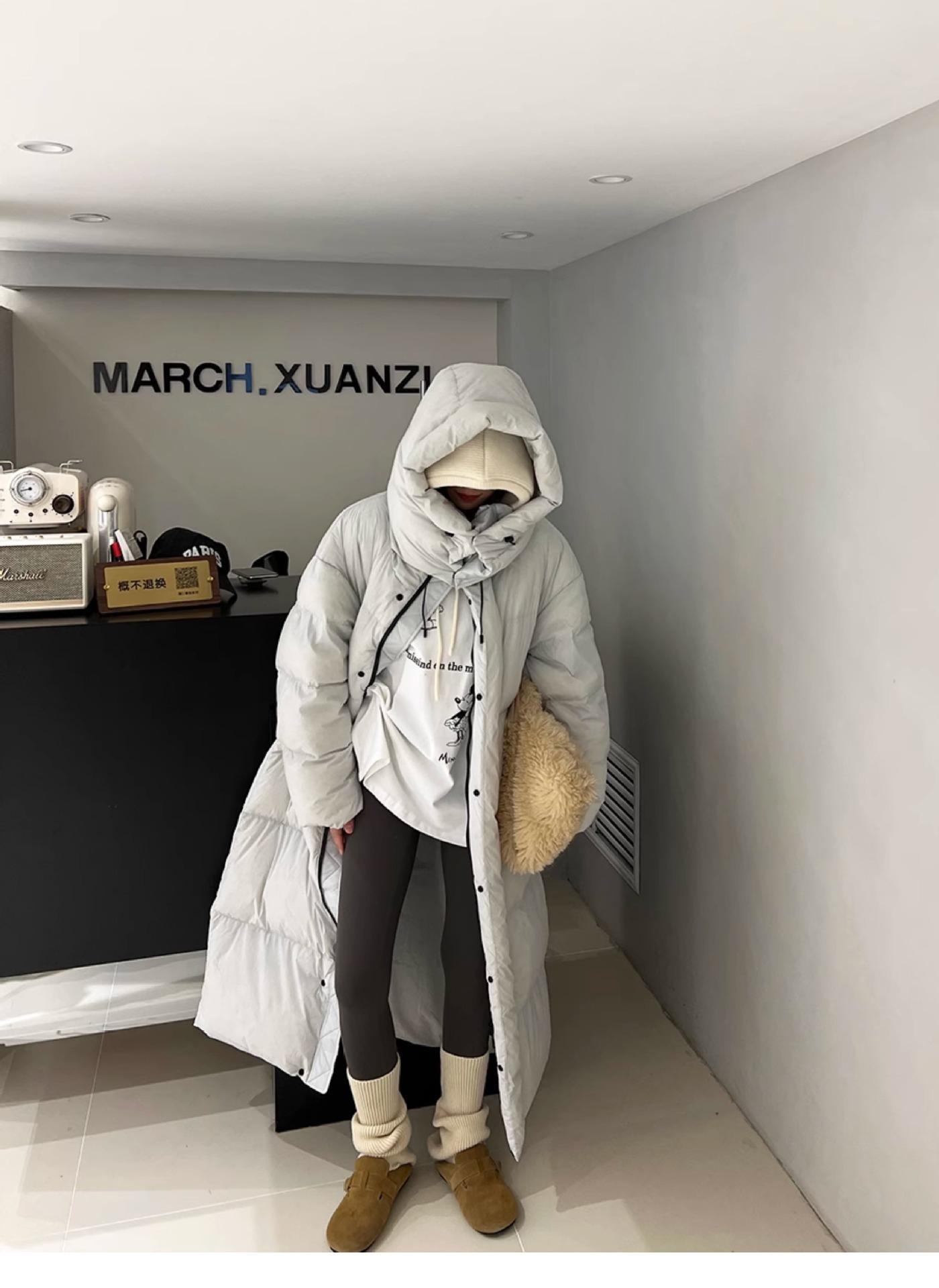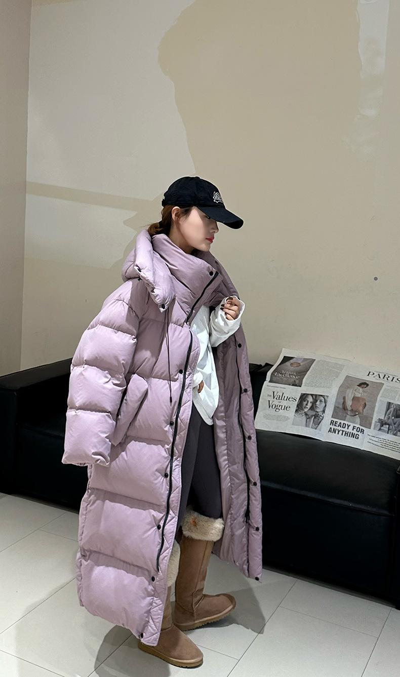 Chaqueta Larga Gruesa de Plumas de Moda para Mujer, Abrigo Cálido con Capucha de Invierno de Alta Gama Nueva Versión Coreana, Acolchado Grande, Talla Extra