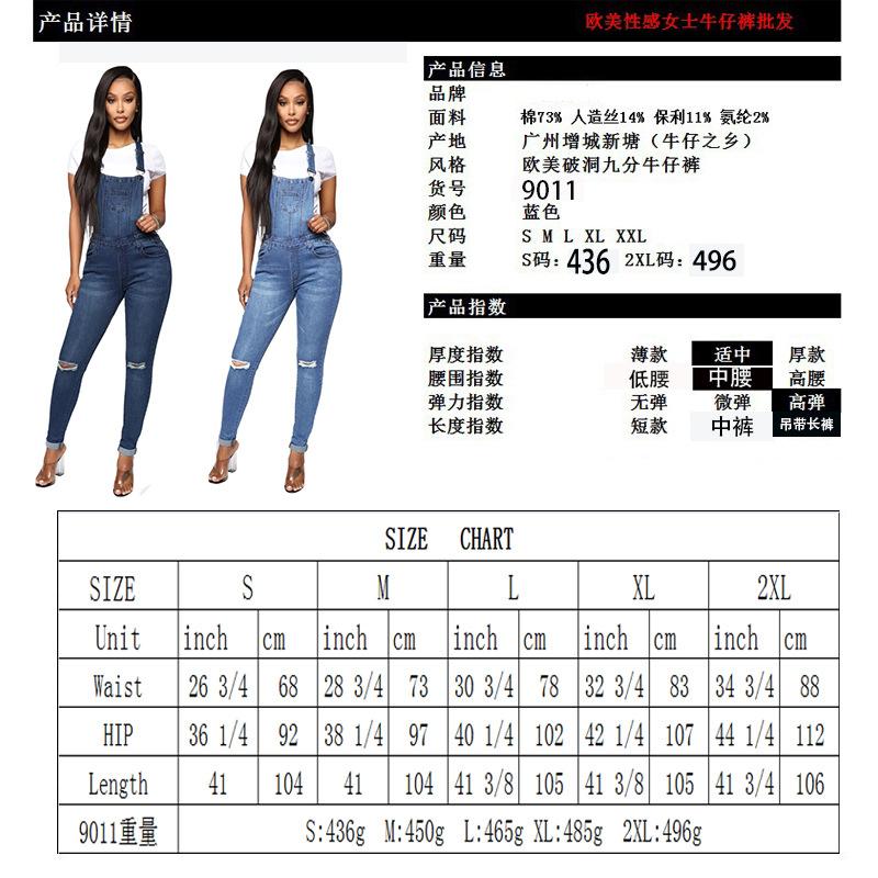 Jeans 2022 Transfronterizo Amazon Aliexpress Spot Europeo y Americano Rotos Moda Trendy Lavado Peto para Mujer