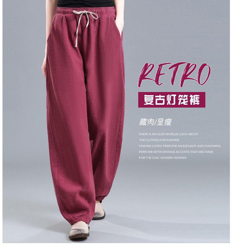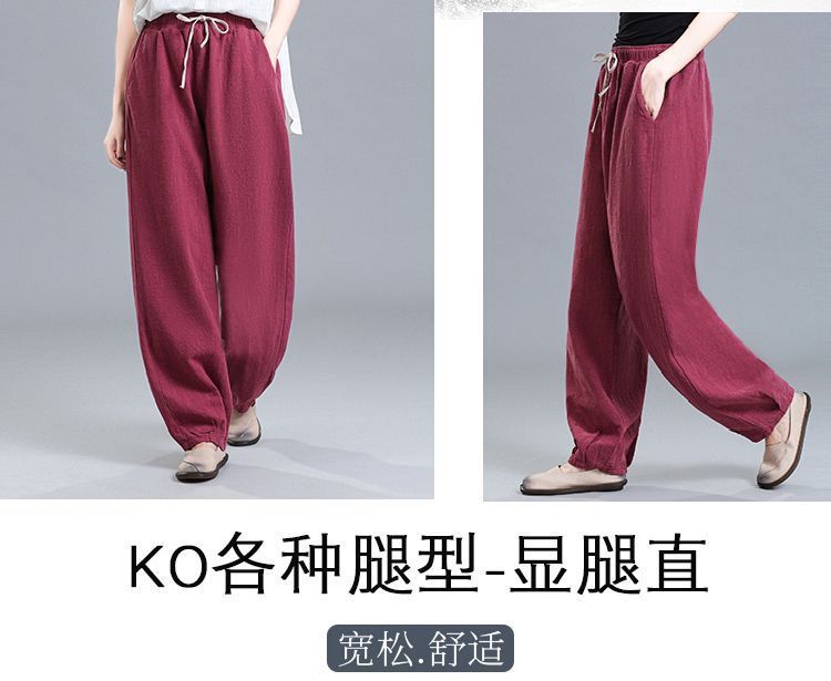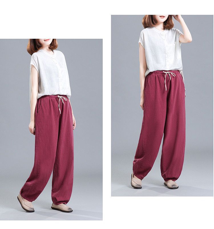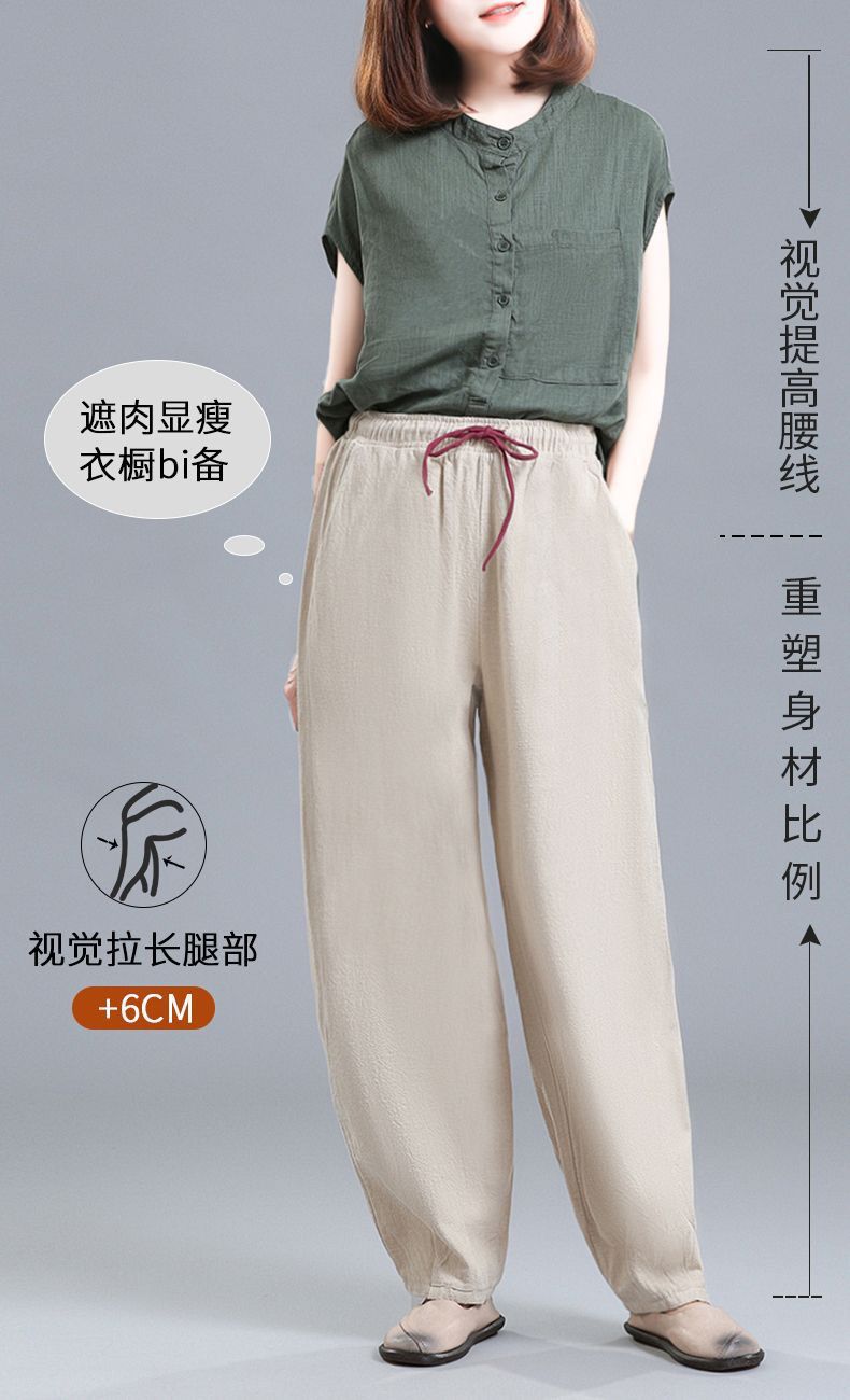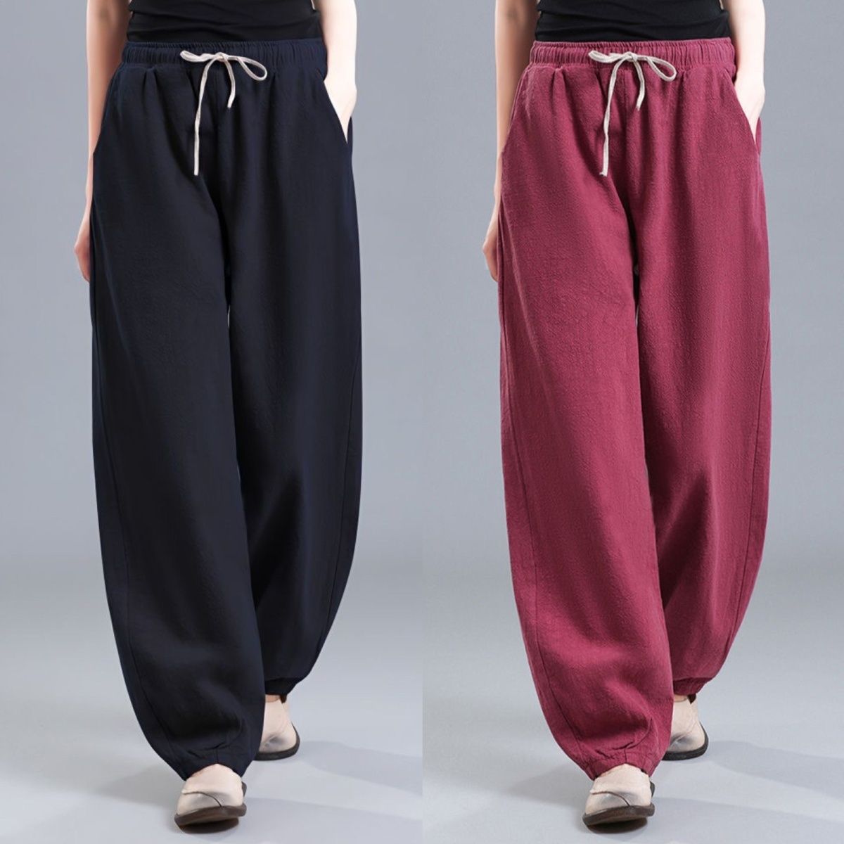Bloomers Drapeados de Algodón y Lino para Mujer Primavera y Verano 2025 Nuevo Pantalón Harem de Cintura Alta Pantalón Casual Suelto Retro Pantalón Zanahoria para Mujer