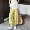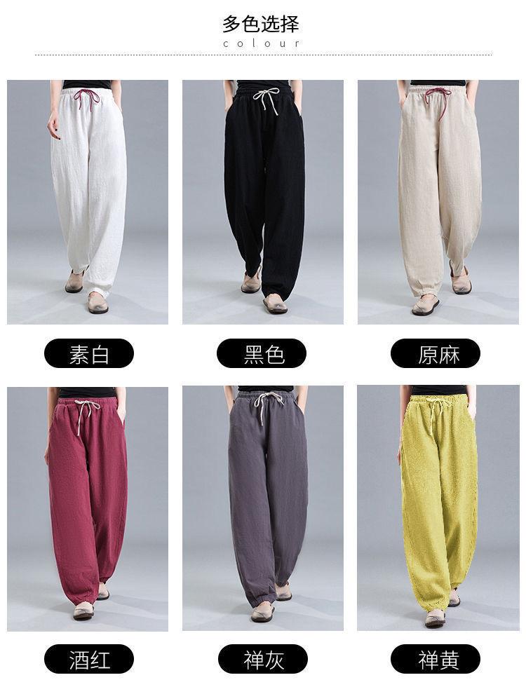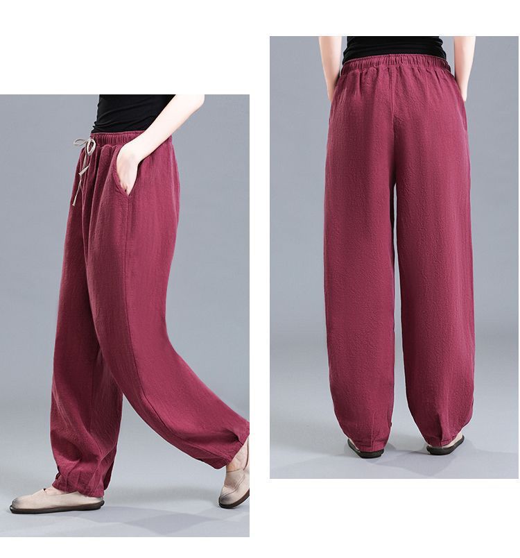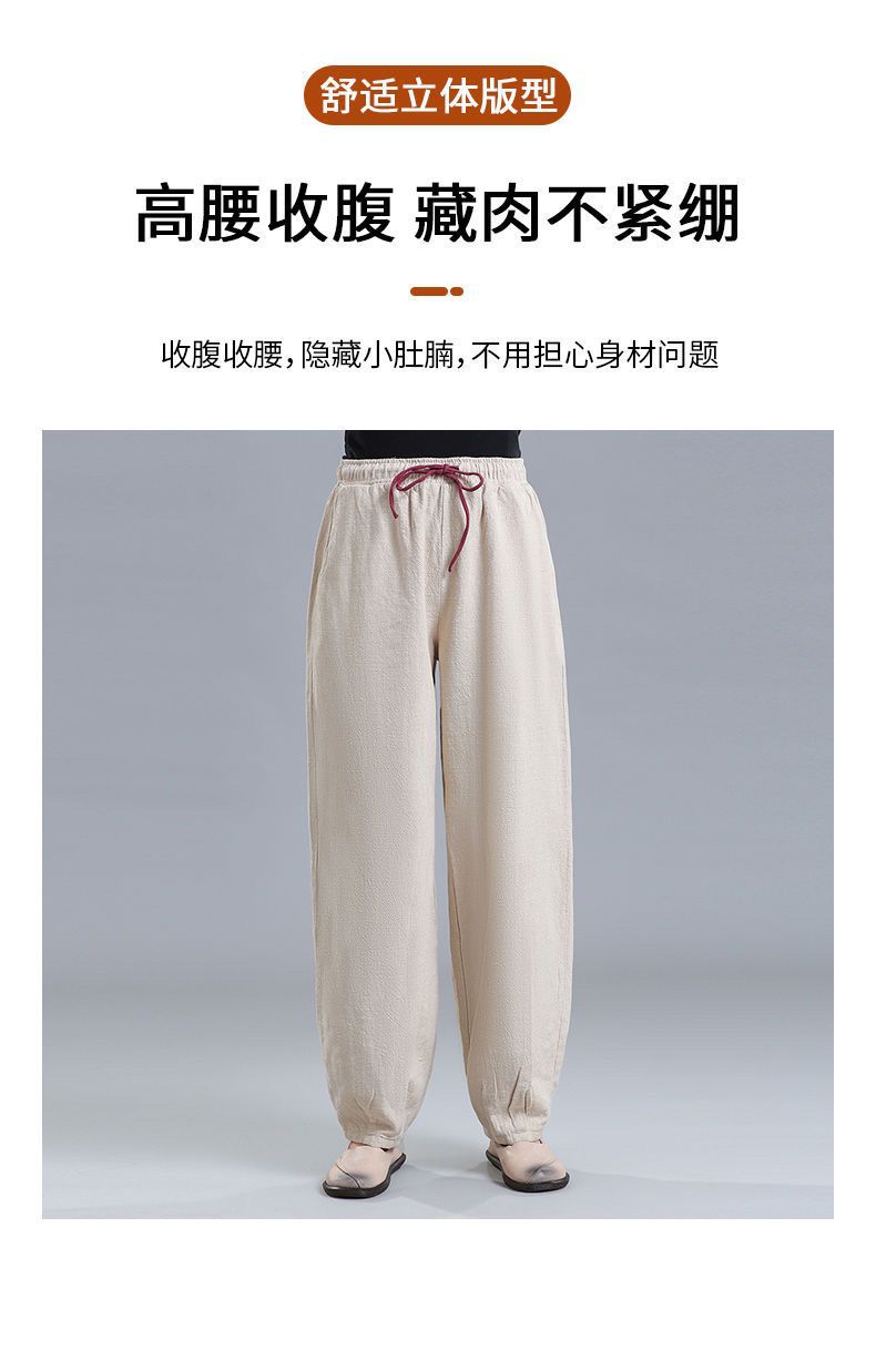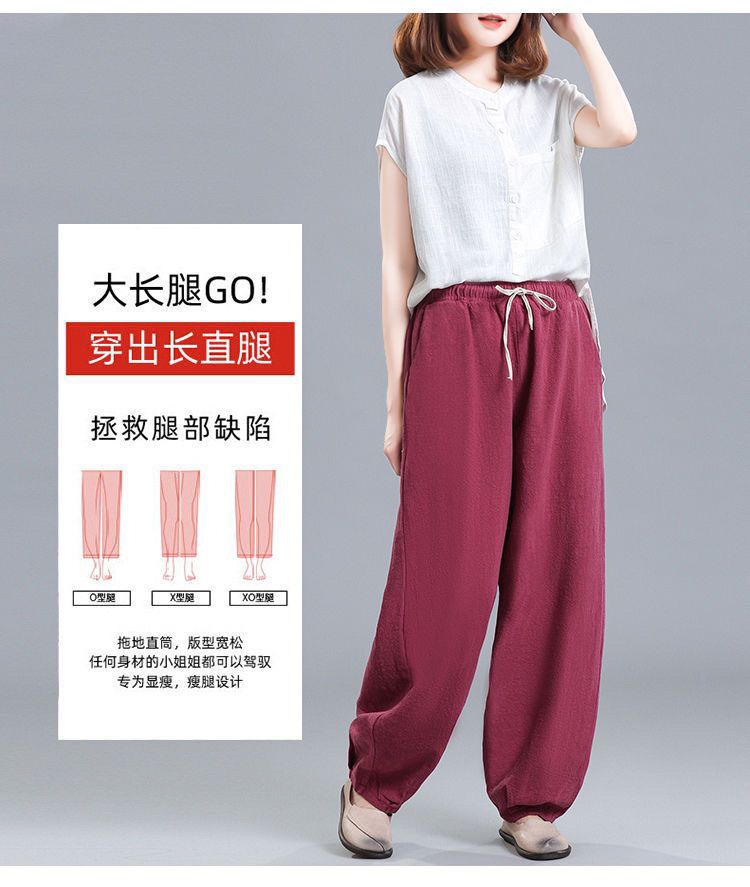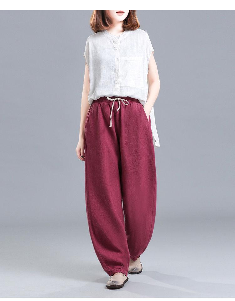 Bloomers Drapeados de Algodón y Lino para Mujer Primavera y Verano 2025 Nuevo Pantalón Harem de Cintura Alta Pantalón Casual Suelto Retro Pantalón Zanahoria para Mujer