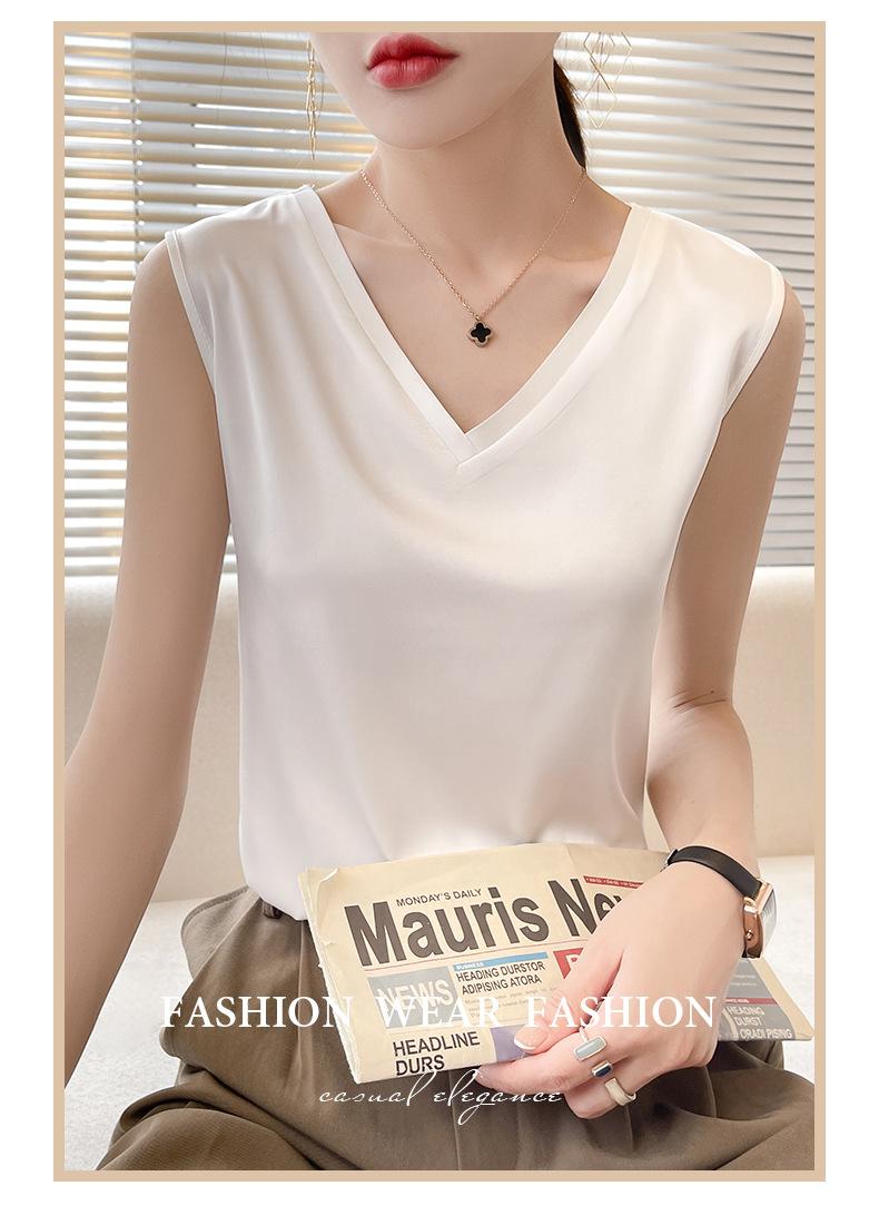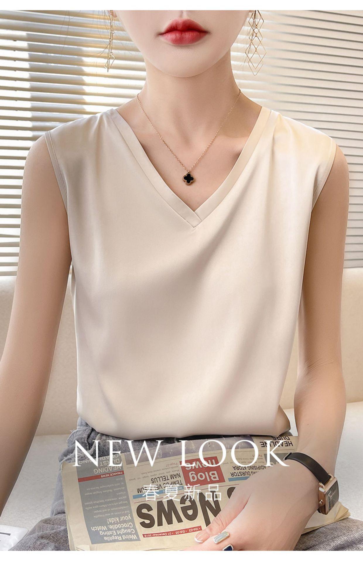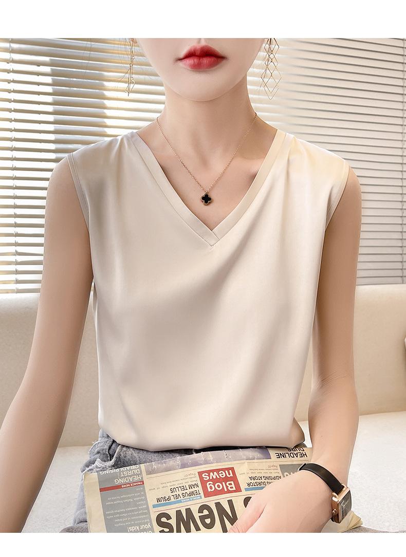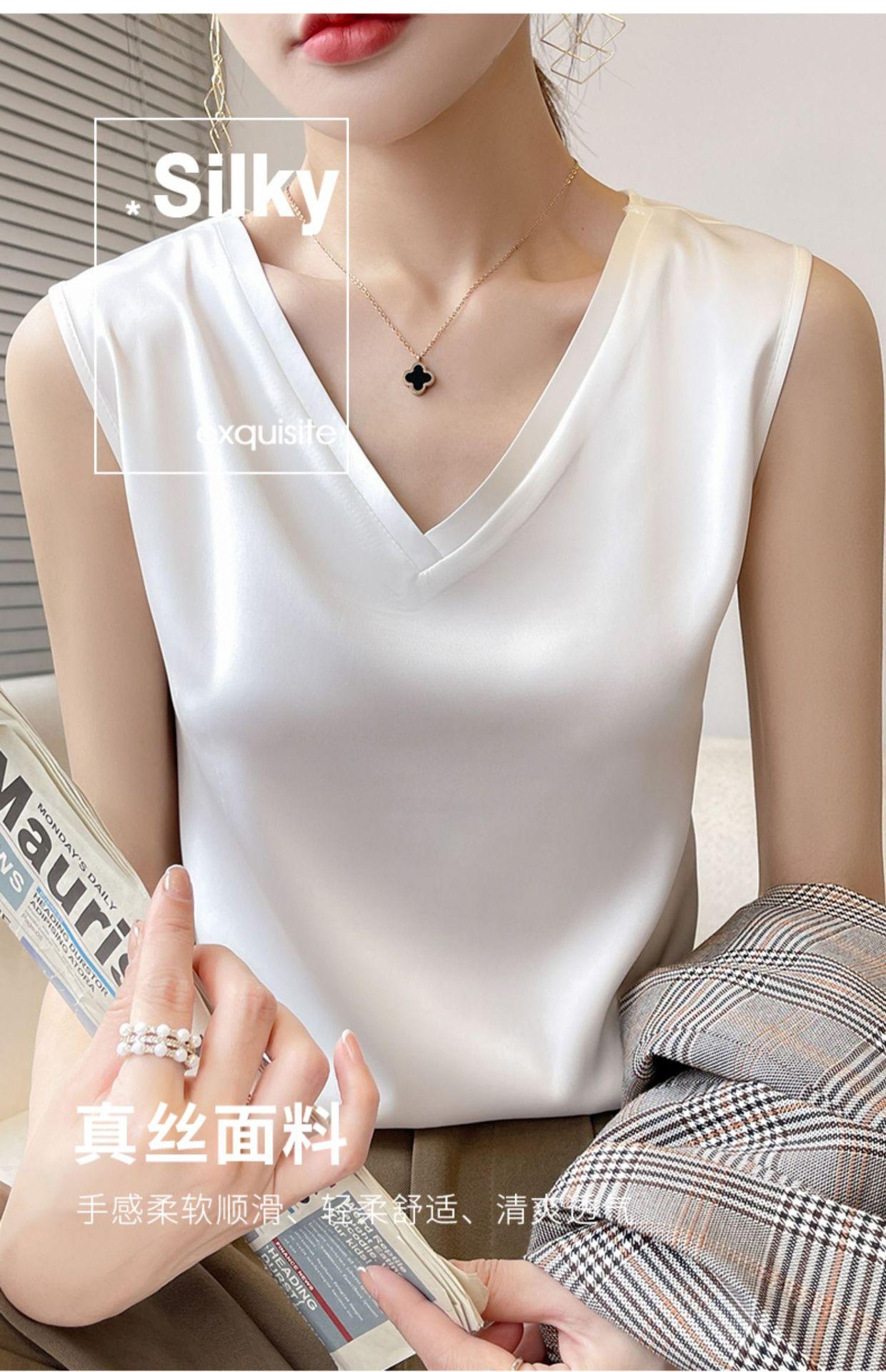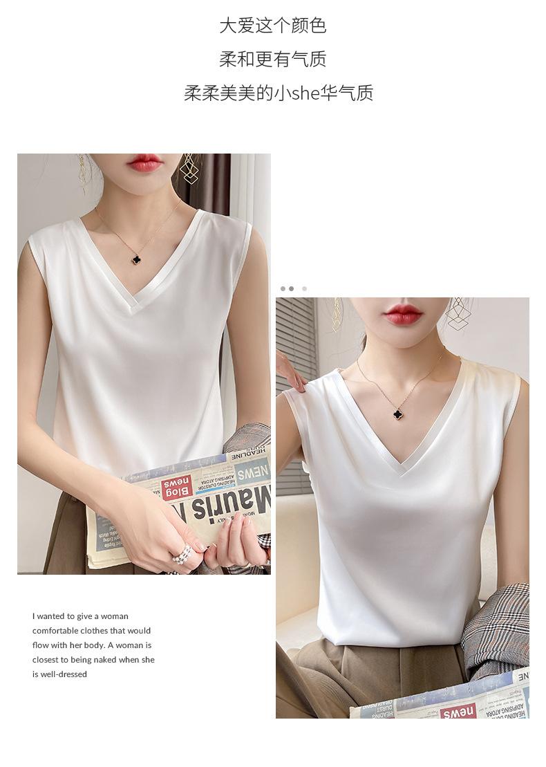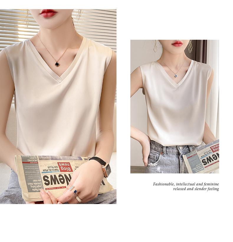 Transfronterizo 2025 Nuevo Chaleco de Seda de Hielo de Primavera y Verano para Mujer con Cuello en V, Tirantes, Top sin Mangas, Ropa Interior, Camiseta Básica Exterior, Ropa de Mujer