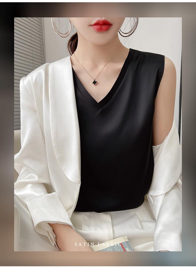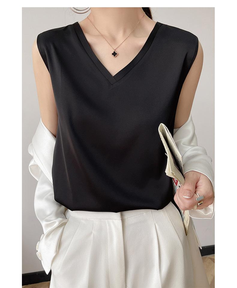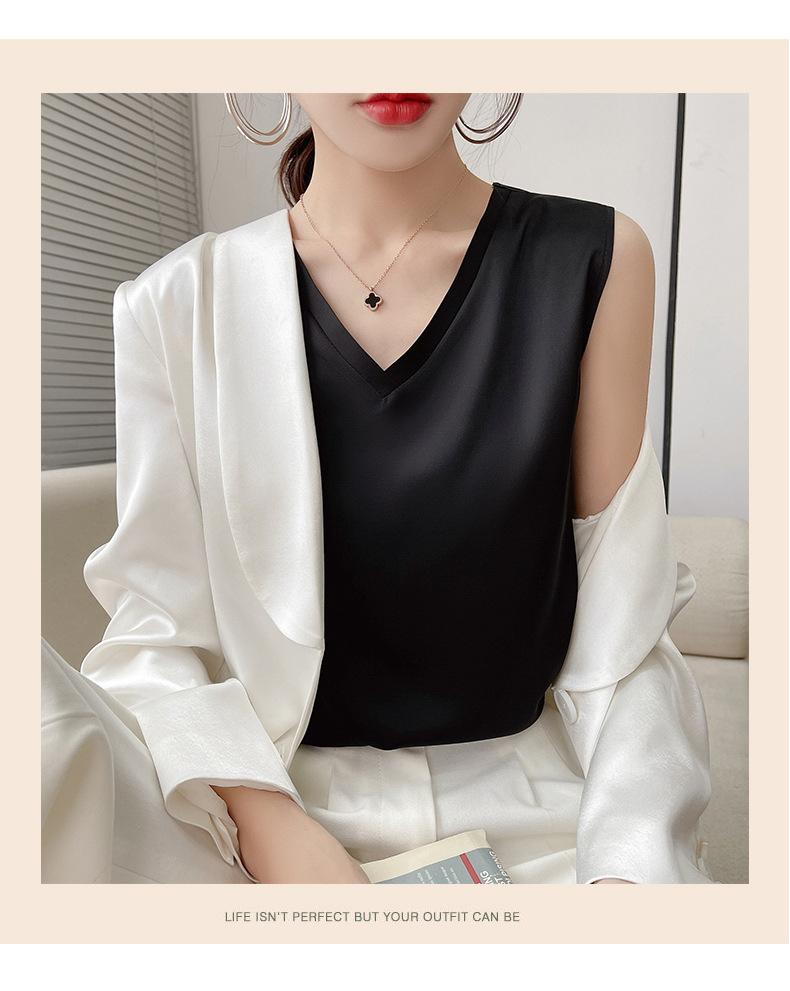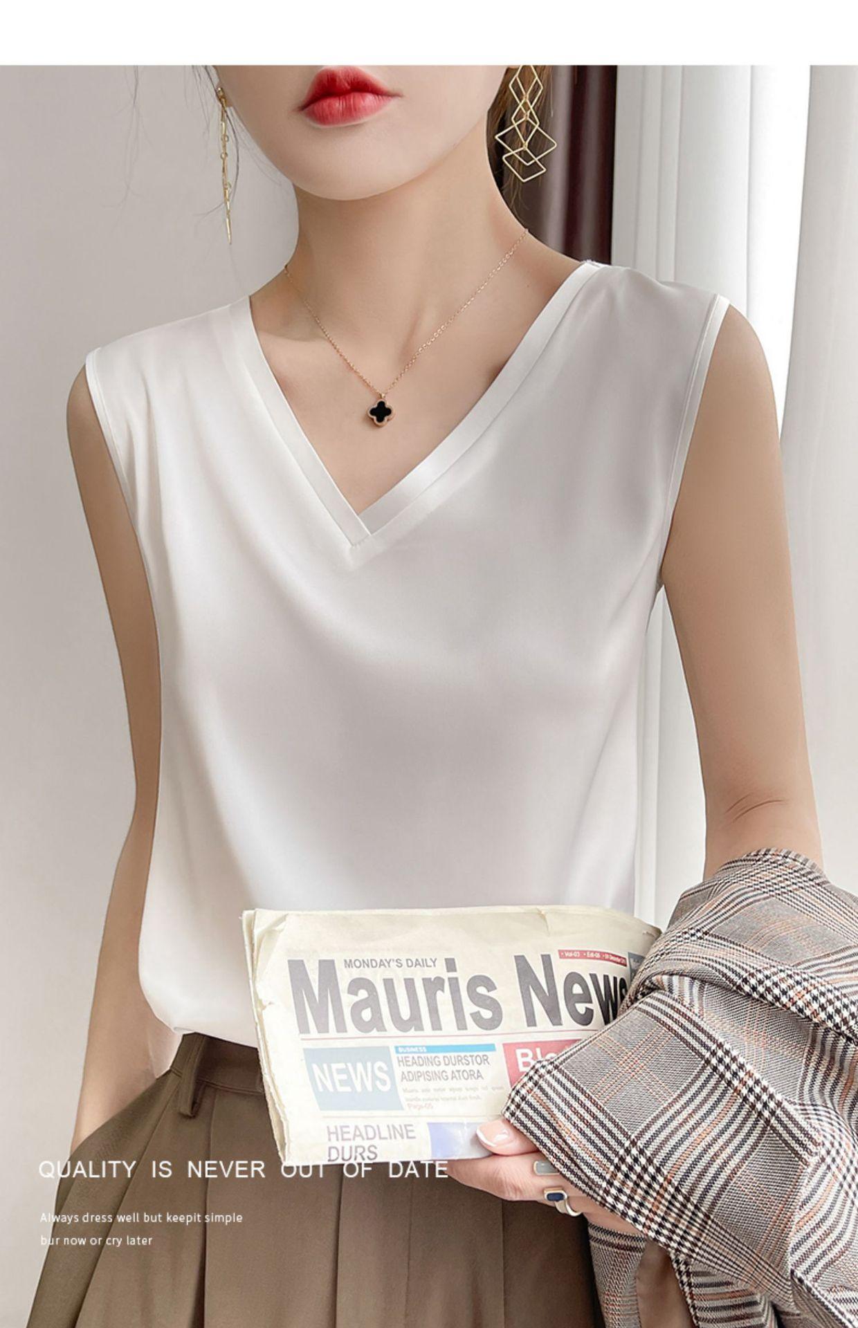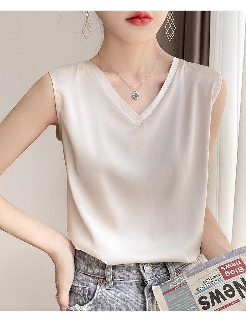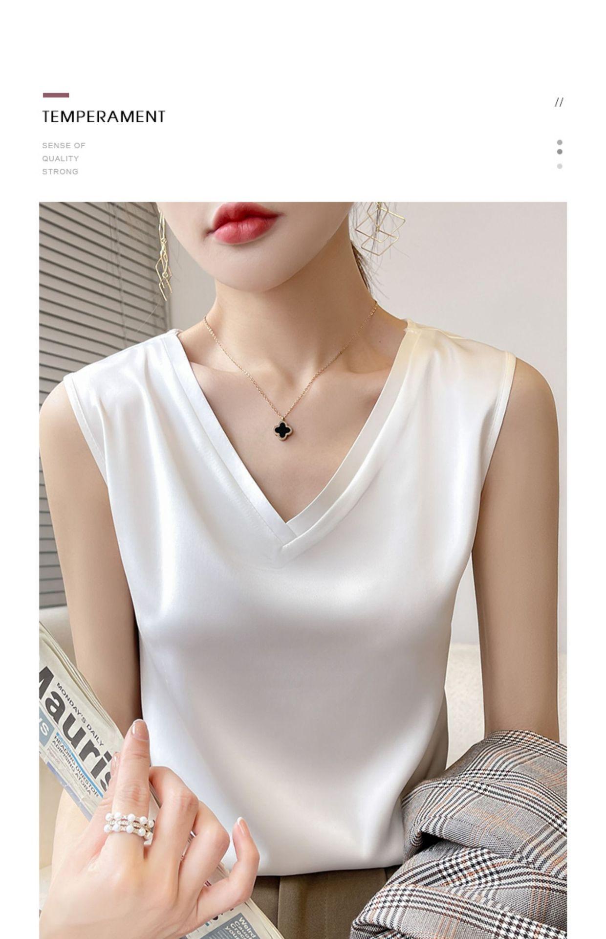 Transfronterizo 2025 Nuevo Chaleco de Seda de Hielo de Primavera y Verano para Mujer con Cuello en V, Tirantes, Top sin Mangas, Ropa Interior, Camiseta Básica Exterior, Ropa de Mujer