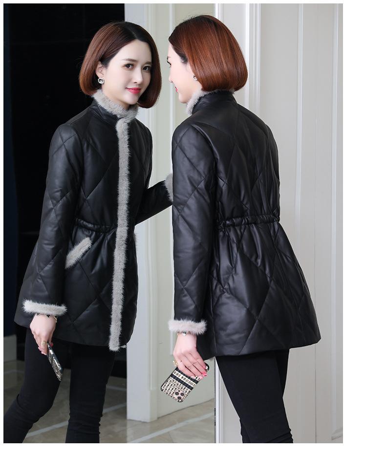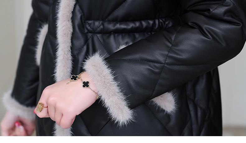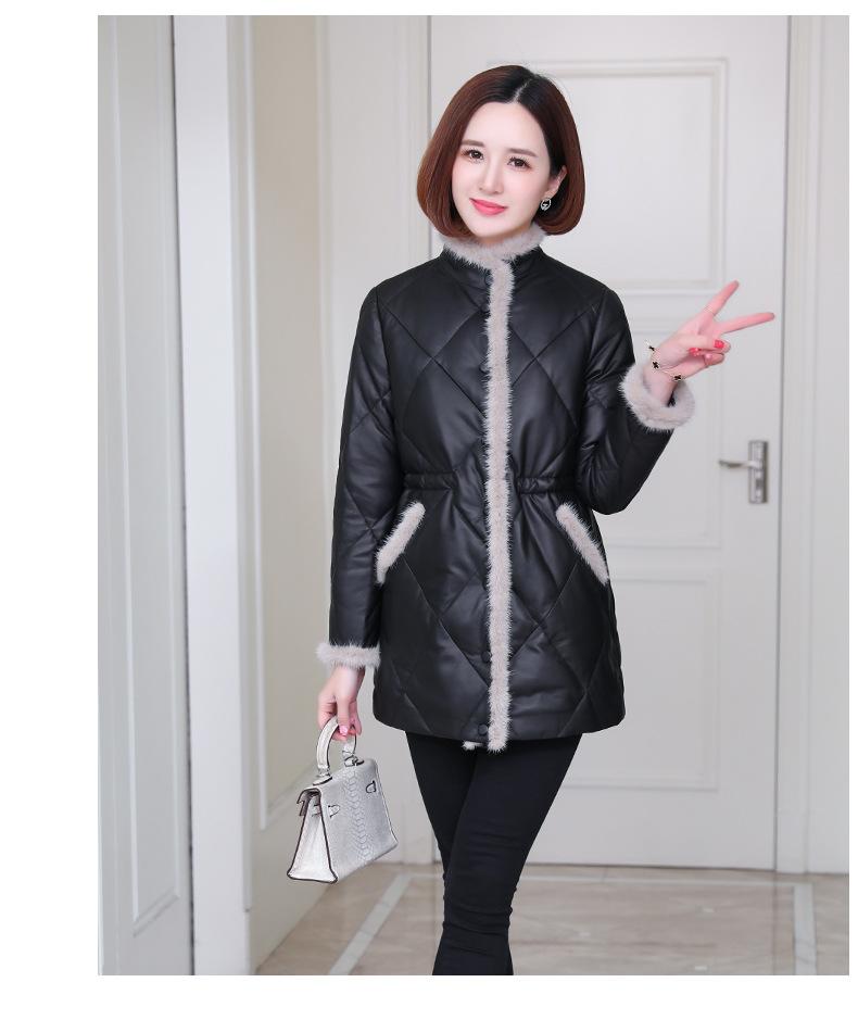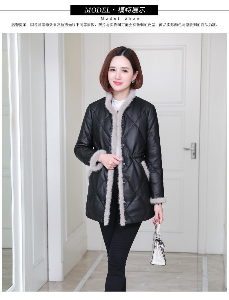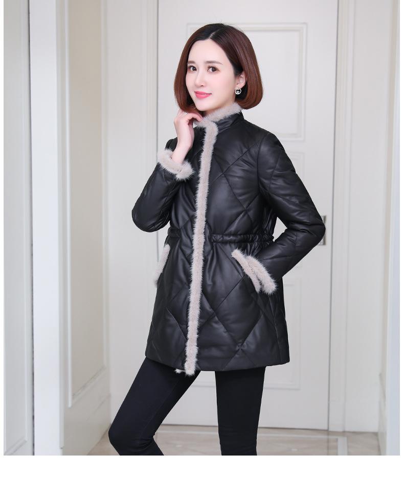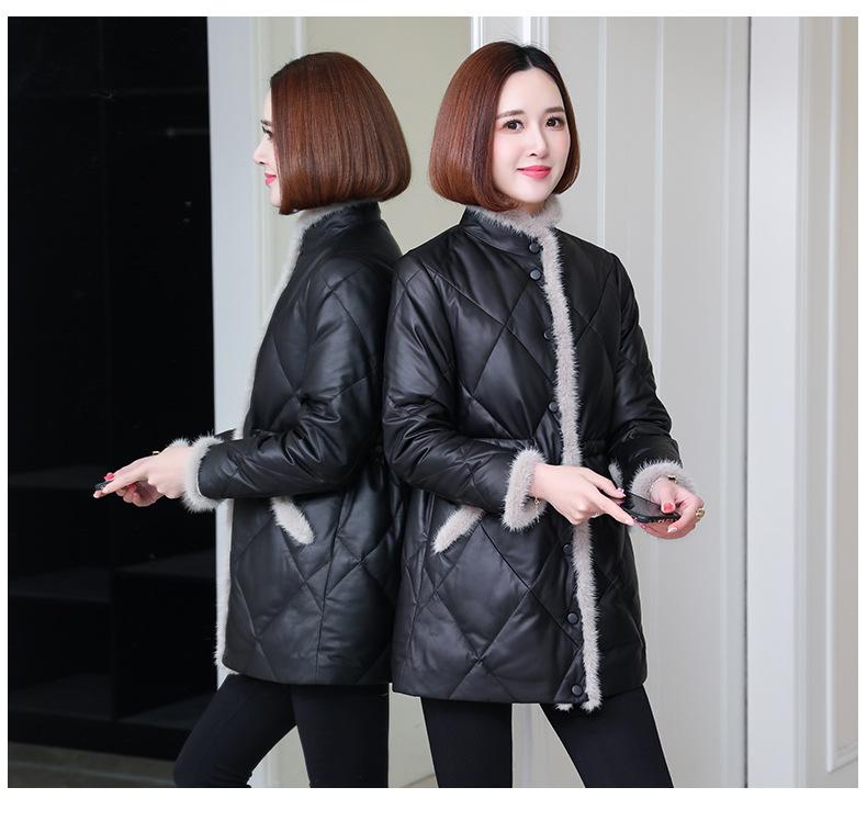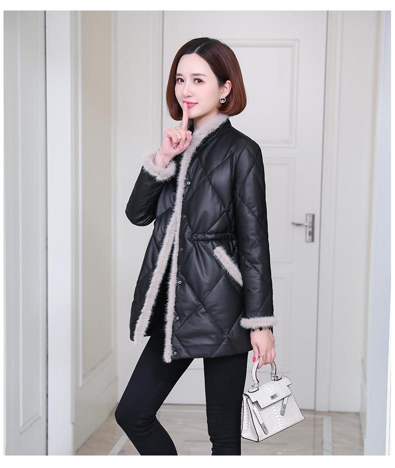 Chaqueta de plumón de cuero Haining de piel de oveja para mujer, abrigo de piel de visón suelto de invierno de longitud media de nueva moda