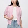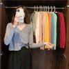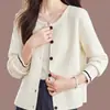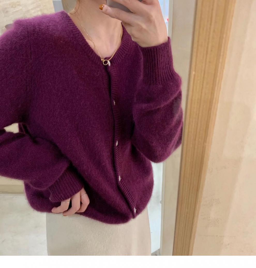 Suéter corto de punto morado con cuello redondo para mujer, abrigo holgado, primavera y otoño, 2023